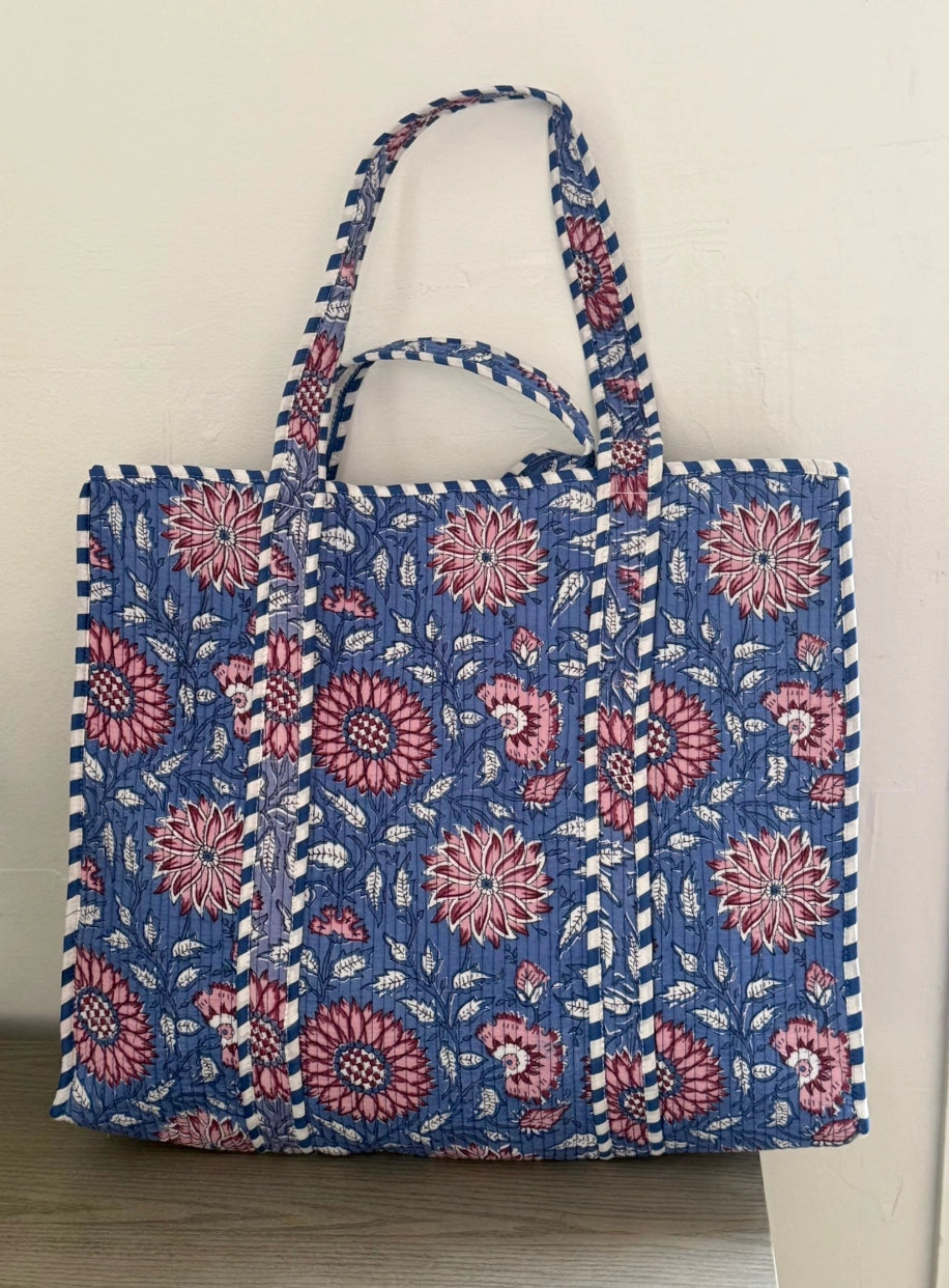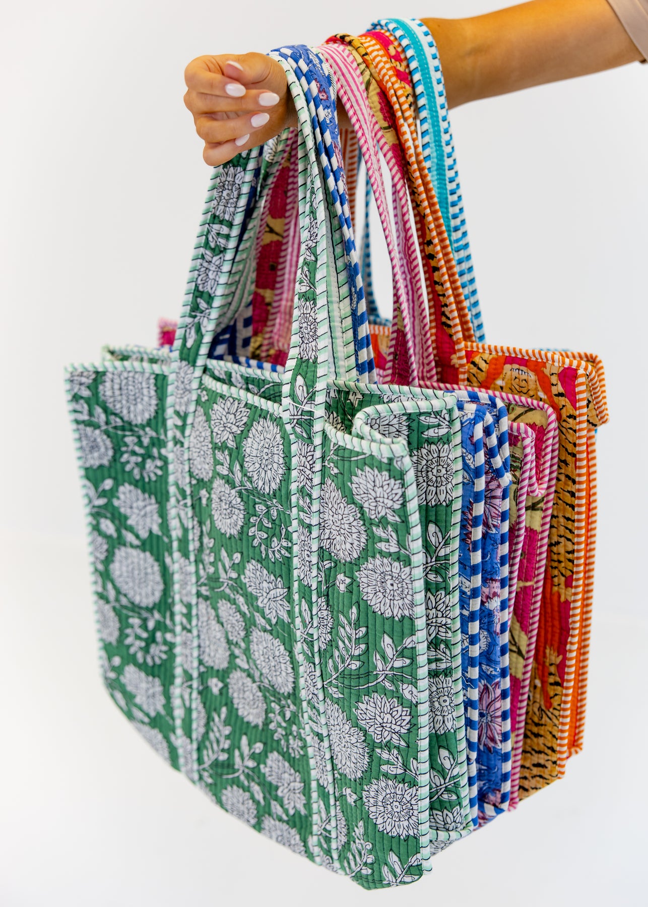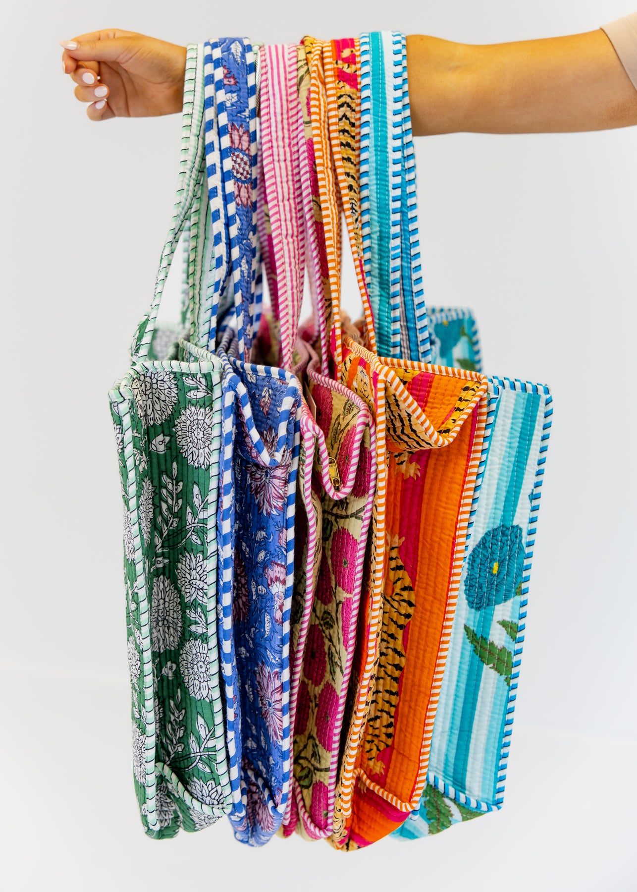 Elevate your everyday style with this Block Printed Tote Bag. Expertly crafted with a unique quilted design, it combines durability and distinctive artistry to keep your essentials secure and organized. Perfect for shopping, work, or casual outings, this spacious tote makes a bold statement while offering practical comfort. Add a touch of handcrafted charm to your wardrobe today.