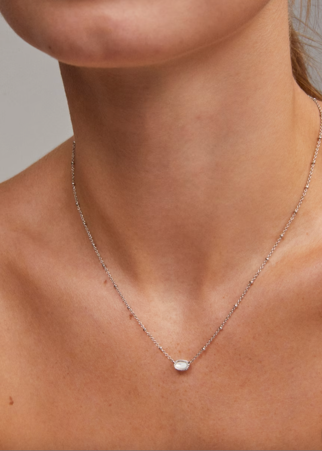 Delicate meets dazzling with this Mini Elisa Rhodium Satellite Short Pendant Necklace. Rhodium plating gives it that coveted silver-bright shine that catches the light beautifully, while the petite satellite design adds a touch of celestial charm. Perfect for layering or wearing solo, this short pendant sits just right at the collarbone for everyday elegance with a hint of cosmic flair. A little sparkle goes a long way.