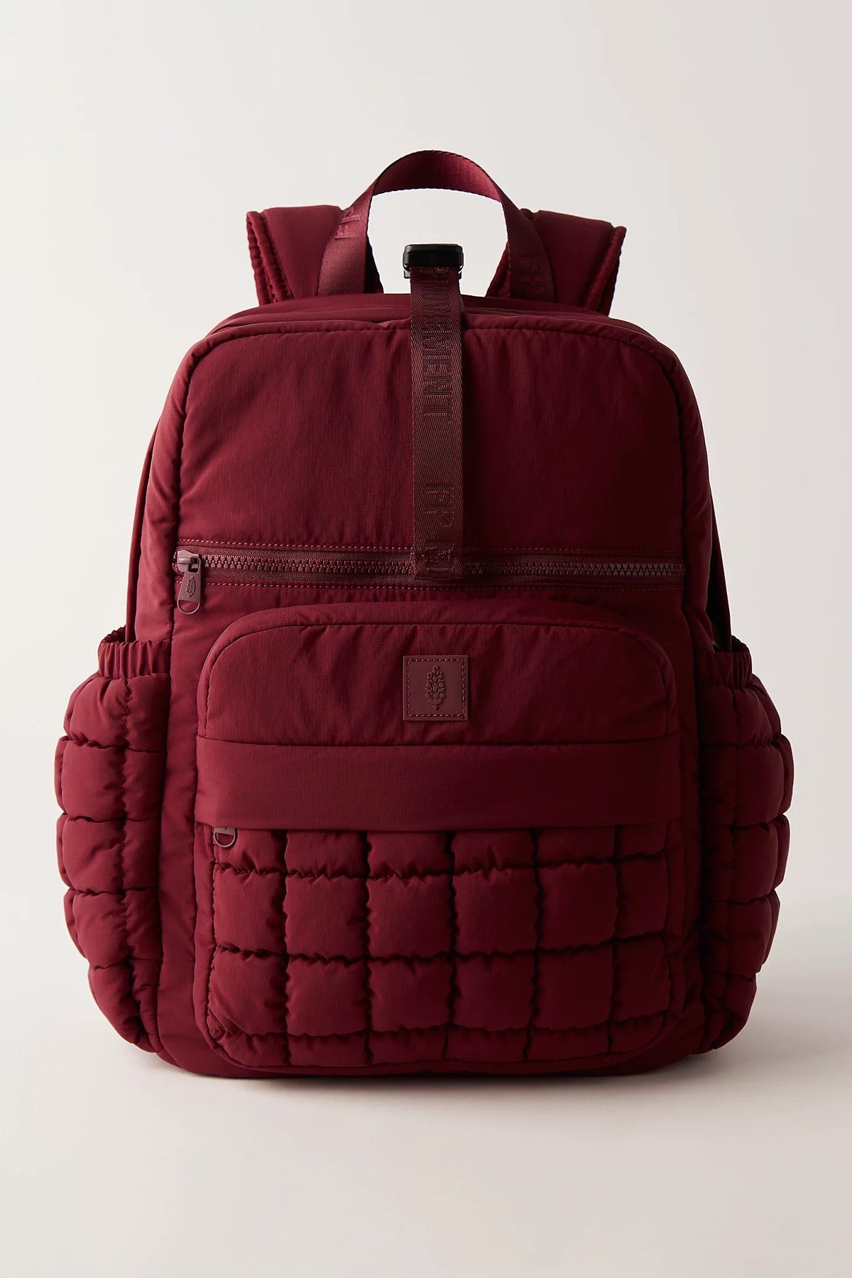 Textured, functional, and built for everyday carry. This modern backpack features a quilted design with a spacious main compartment, front zip pocket, and elastic side pockets for easy access. Padded shoulder straps offer comfort on the go, while the stitched detailing and emblem patch add a subtle touch of style. Whether for school, travel, or daily errands, it’s a sleek essential with standout structure.