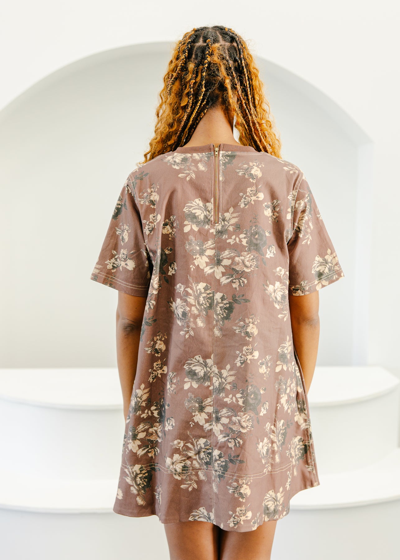 Regular price $ 58.00This floral washed mini dress is a versatile piece with an understated edge. The relaxed shift silhouette features a round neckline, short sleeves, and exposed seam detailing that adds a subtle touch of structure. Its washed finish gives the floral print a soft, lived-in look, blending feminine design with casual ease.