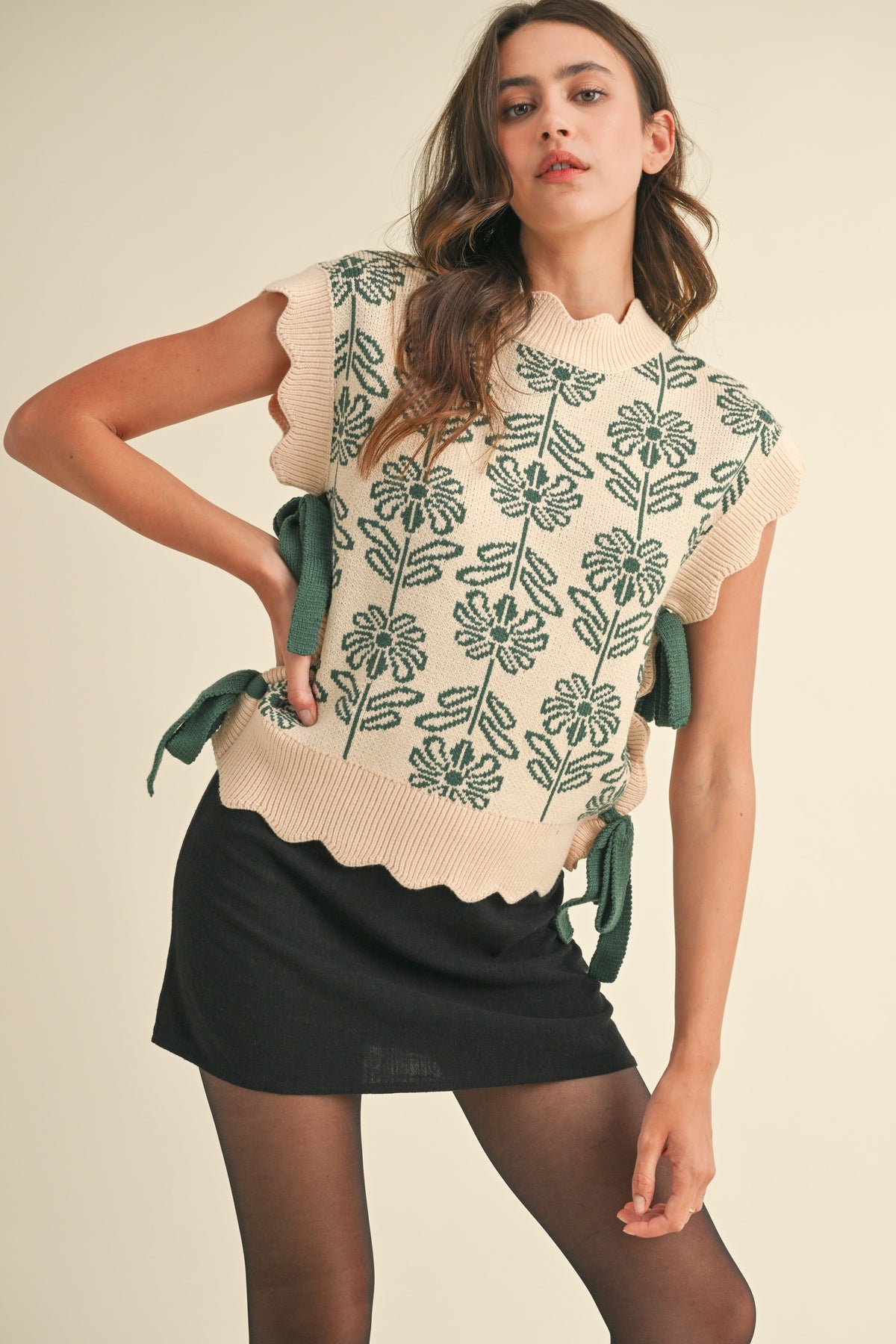 Effortlessly chic, the Vivian Scallop Top combines modern style with a touch of whimsy. The scalloped hem and bow detail add a playful element to this floral sleeveless top. Stay stylish and comfortable all day long in this must-have piece.