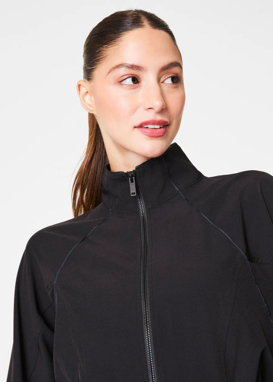 Designed for active lifestyles, the On The Move Cinched Back Jacket combines functionality and style effortlessly. Its sweat-wicking fabric with 4-way stretch and anti-static finish keeps you comfortable and unrestricted during warmups, weekend outings, or daily wear. Lightweight and breathable, it features a front zipper and adjustable drawstring for a personalized fit. Offering UPF 50+ sun protection, this jacket guards your skin while ensuring you stay cool and confident wherever your day takes you.