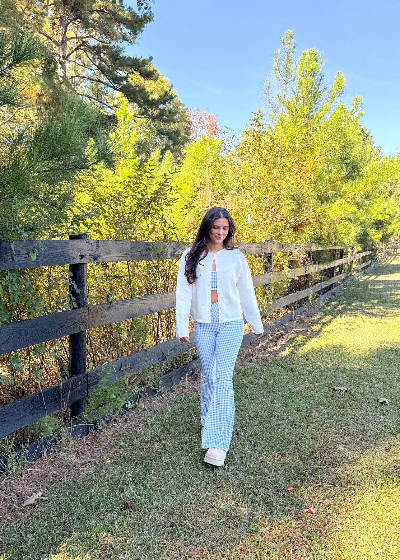 Model is wearing a size small. Paired with our Giselle Flare Pants.