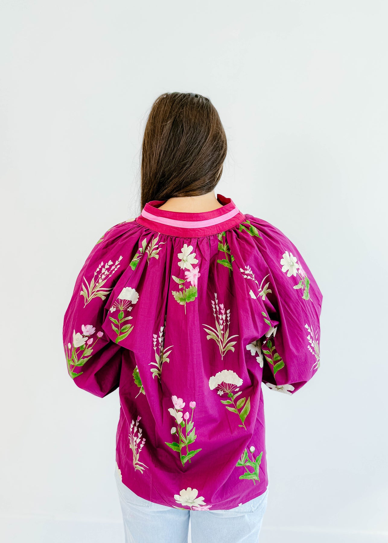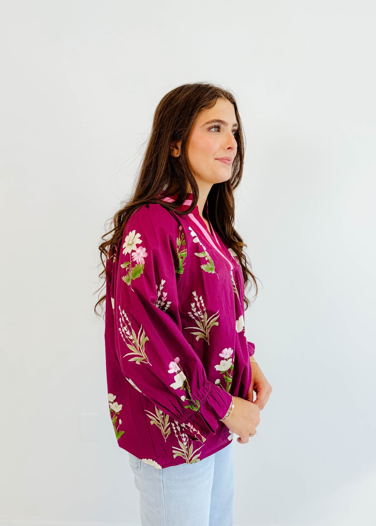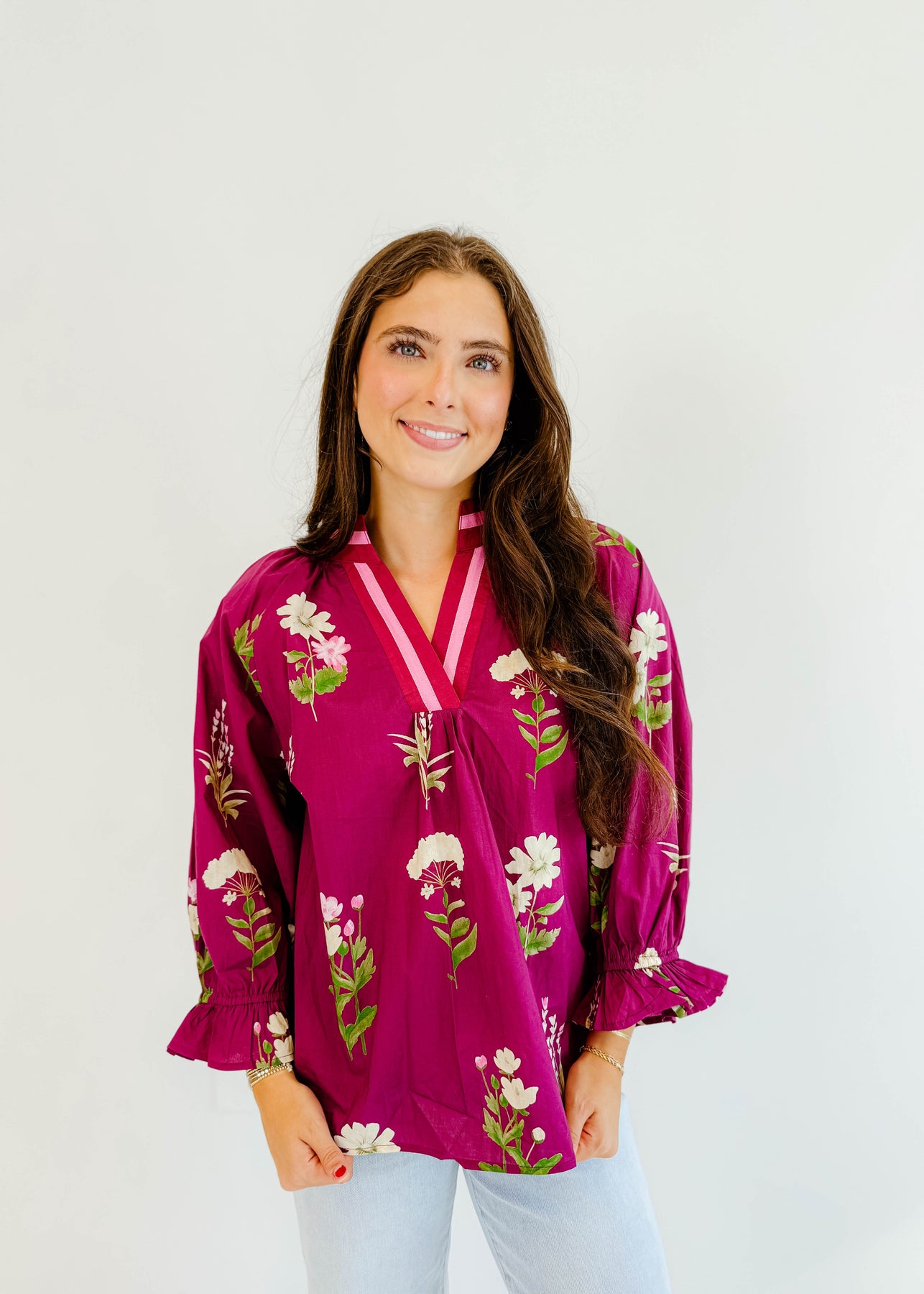 Daphne Floral Print Blouse features an exclusive print with intricate embroidery accents, giving it a unique touch that stands out. The relaxed fit and gathered sleeves create effortless movement, while the V-notch neckline adds subtle sophistication. Pair it with jeans, trousers, or skirts for a versatile look that works from day to night.