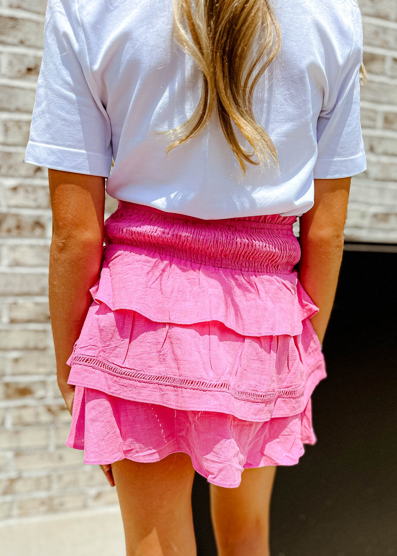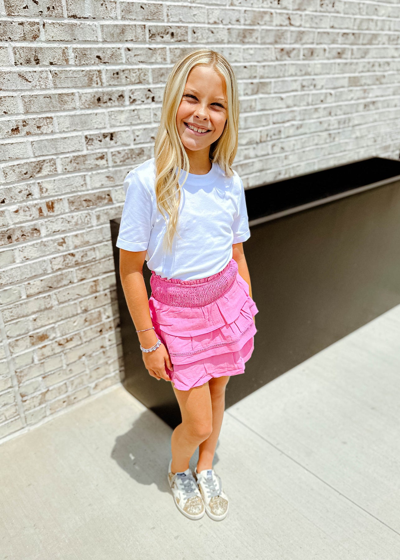 Dress it up with a blouse and flats for a chic look, or keep it casual with a t-shirt and sneakers. Your tween will love the versatility and flair of this smocked waist layered mini skirt.