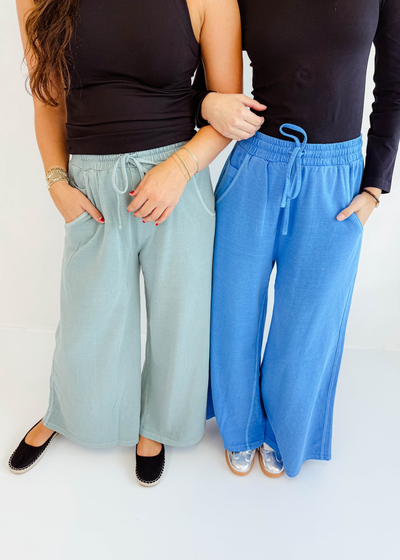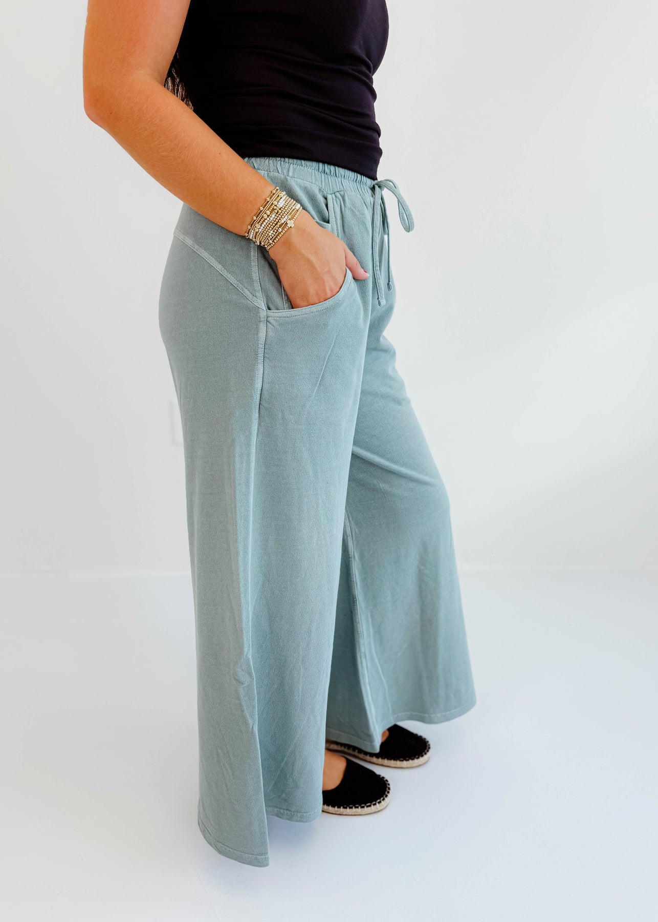 These wide-leg knit pants are the perfect mix of comfort and laid-back style. Designed with a soft elastic waistband and adjustable drawstring, they offer a relaxed fit that moves with you. The side pockets add a functional touch, while the flowy silhouette makes them ideal for casual days, lounging, or travel. Pair them with a tank, tee, or lightweight sweater for an easy, go-anywhere look.