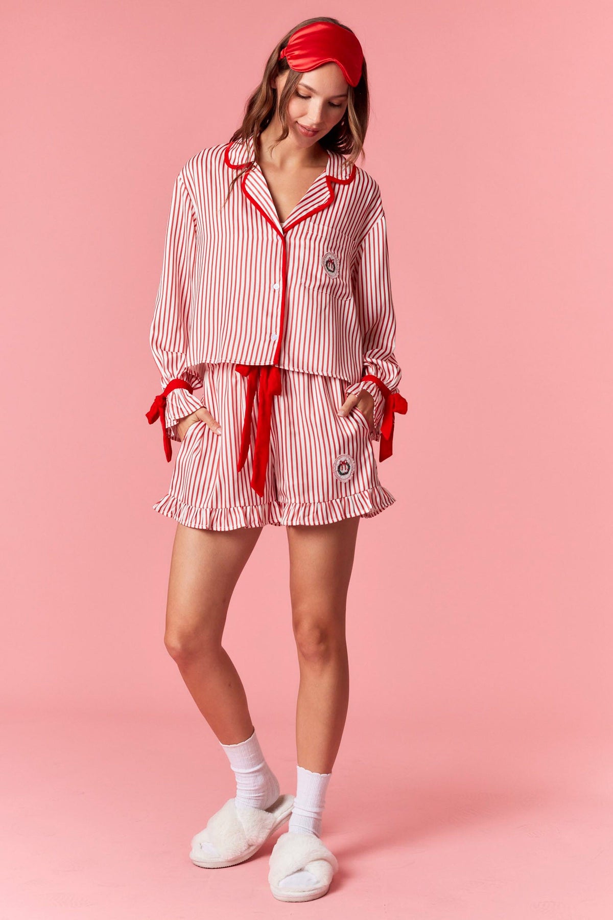 Classic stripes meet a touch of luxury in the Velvet Trim Lounge Set. This two-piece ensemble blends cozy comfort with refined detail, featuring a soft striped fabric finished with velvet piping along the collar and cuffs. Designed with a relaxed fit that still feels put-together, it’s ideal for winding down or starting slow mornings in style. Simple, timeless, and quietly elevated — your new favorite at-home essential.