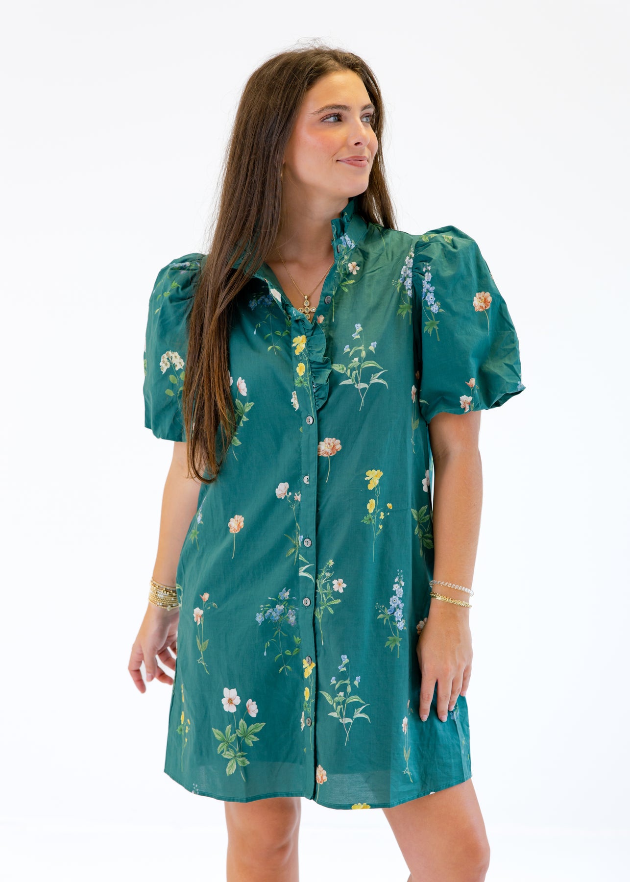 The Alora Puff Sleeves Mini Dress captures effortless charm with its delicate floral print and romantic details. Designed with playful puff sleeves and a ruffled neckline, this button-down dress offers a flattering silhouette that's perfect for any occasion. Its lightweight fabric and breezy fit make it ideal for warm days, while the mini length adds a touch of flirty sophistication. Pair it with sandals for a casual day out or heels to elevate your look.
