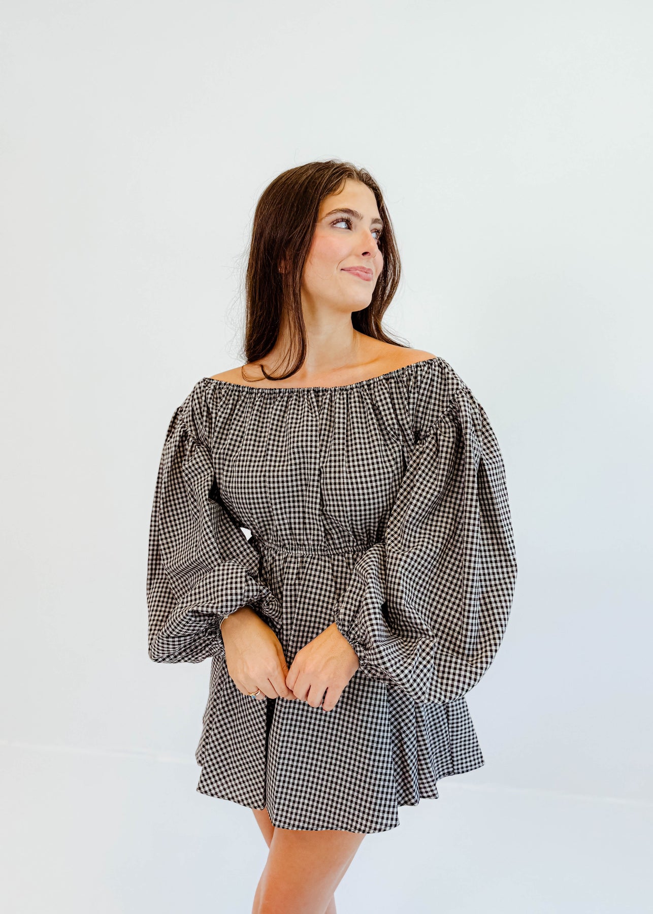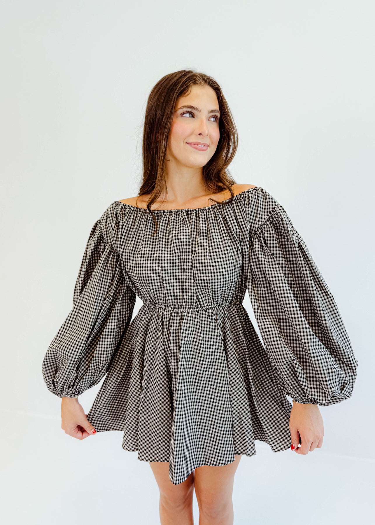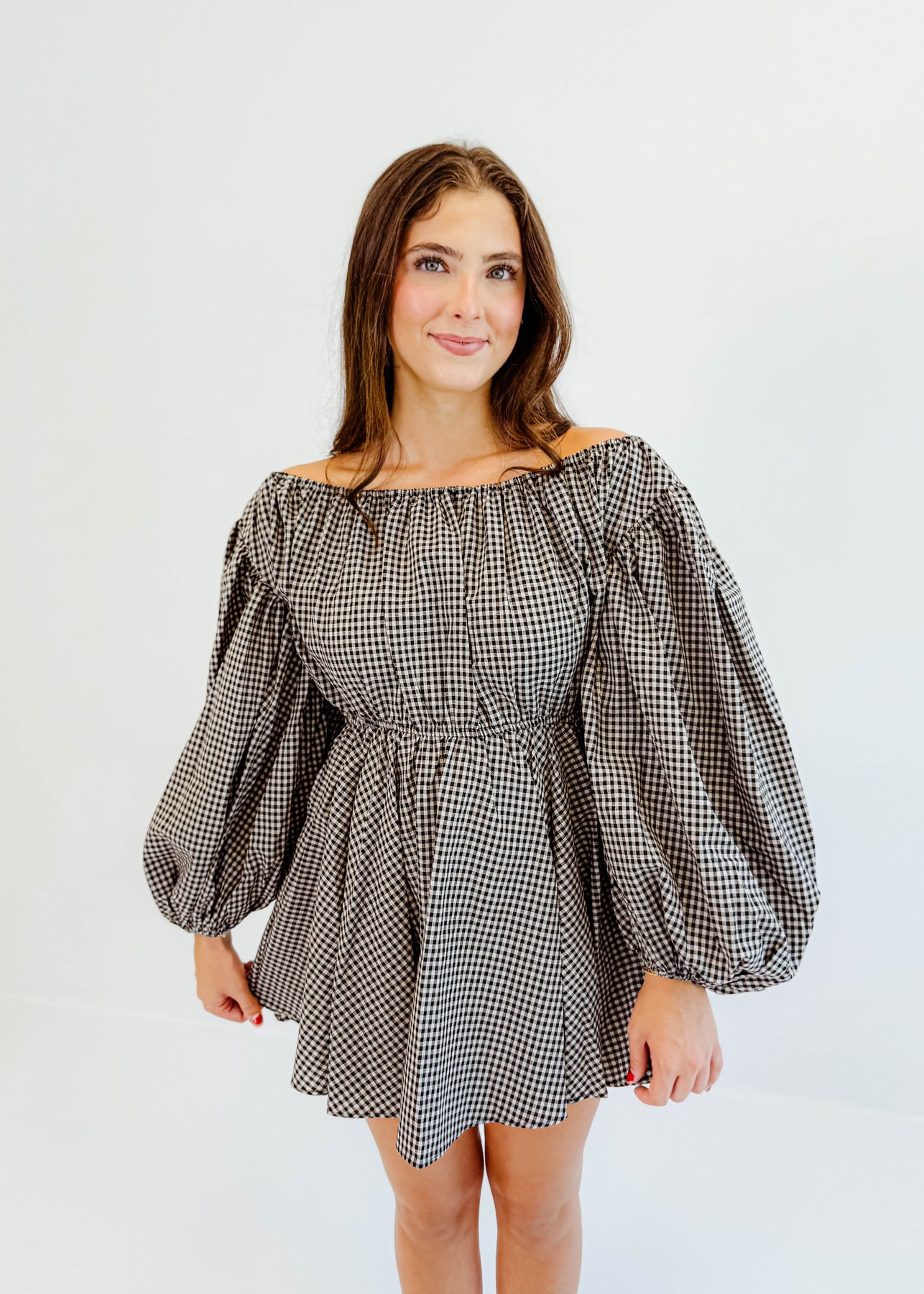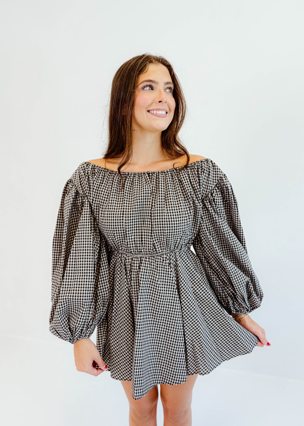 The Bianca Gingham Off-Shoulder Dress is all about playful sophistication with a touch of romance. Its off-the-shoulder neckline highlights your collarbone, while the billowy long sleeves bring soft drama to the look. A cinched waist creates a flattering shape, flowing into a flared skirt that moves beautifully with every step. The timeless gingham pattern makes Isla easy to style for brunch, date night, or weekend getaways — just add your favorite accessories and you’re ready to go.