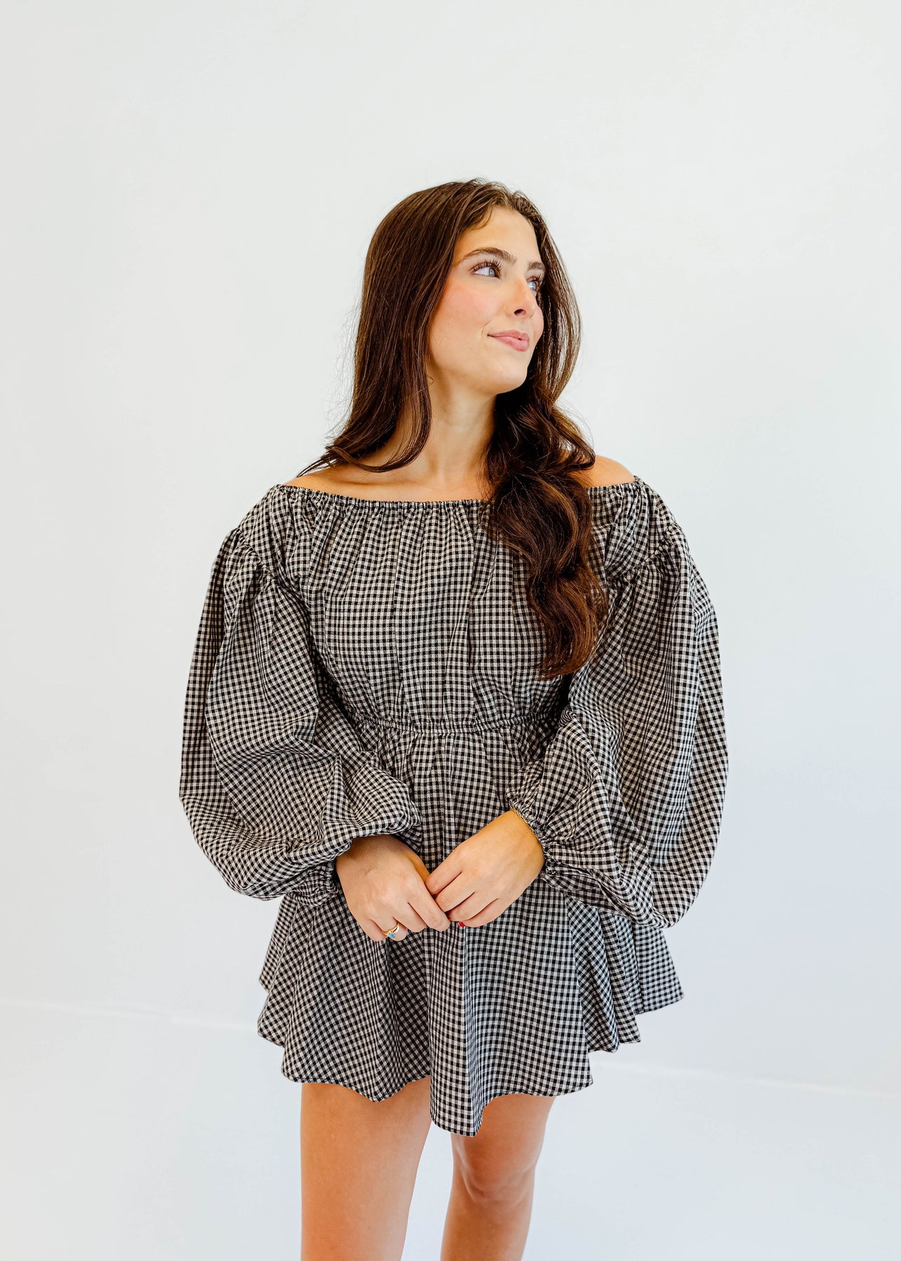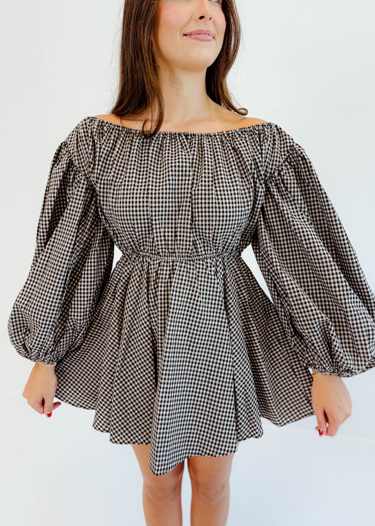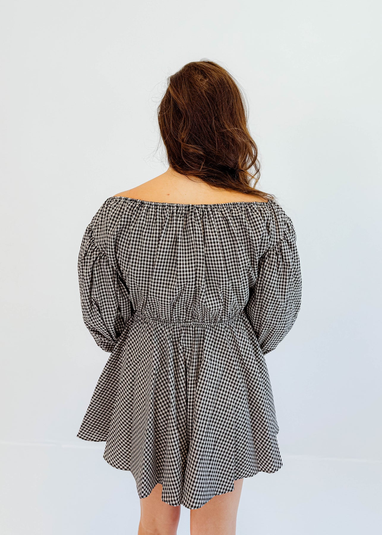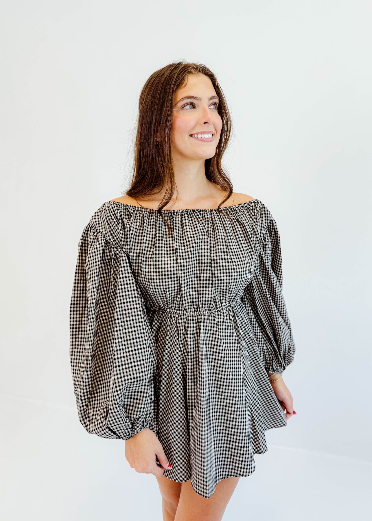 The Bianca Gingham Off-Shoulder Dress is all about playful sophistication with a touch of romance. Its off-the-shoulder neckline highlights your collarbone, while the billowy long sleeves bring soft drama to the look. A cinched waist creates a flattering shape, flowing into a flared skirt that moves beautifully with every step. The timeless gingham pattern makes Isla easy to style for brunch, date night, or weekend getaways — just add your favorite accessories and you’re ready to go.