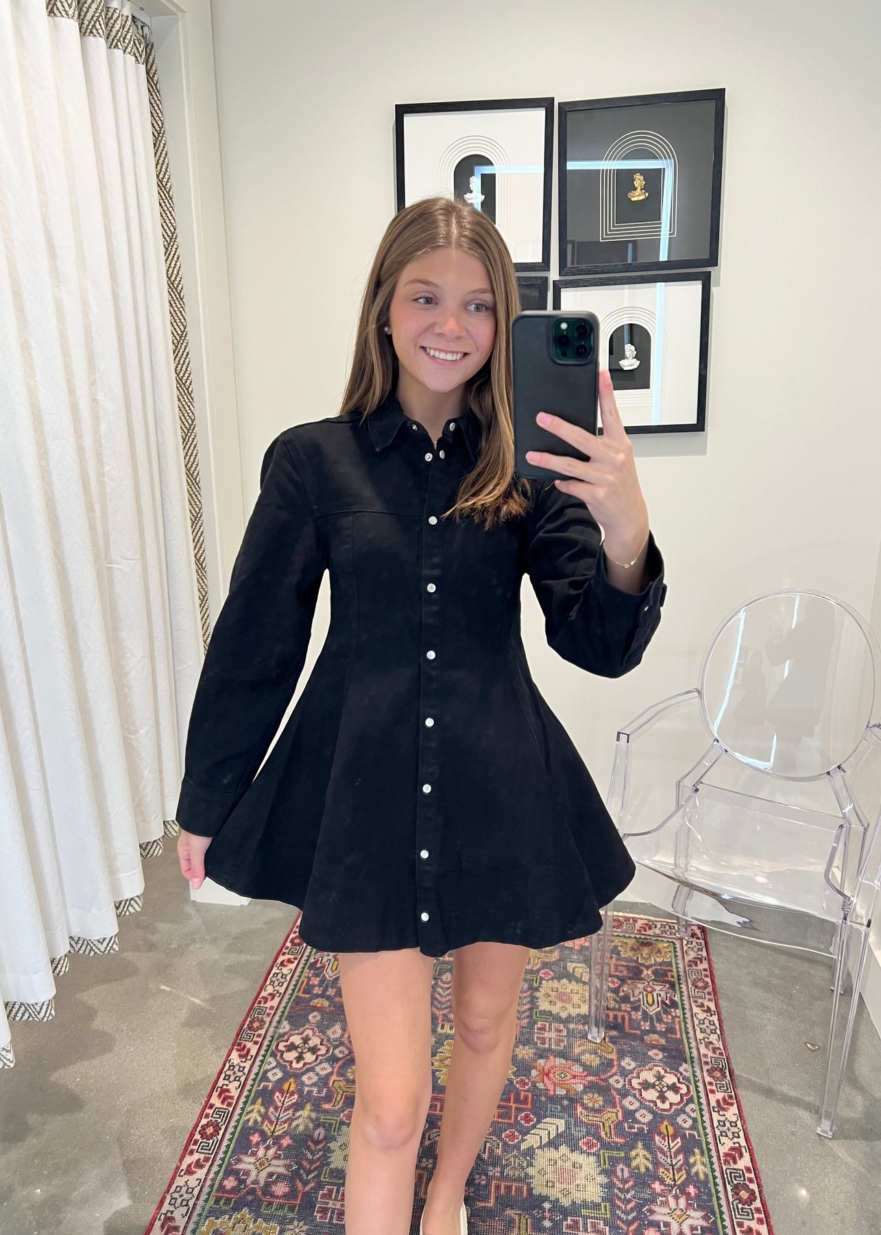The Clara Button-Front Mini Dress is the versatile staple your wardrobe has been waiting for. Crafted from a structured cotton blend, this dress features long sleeves, a pointed collar, and a flattering A-line silhouette that creates a laid-back yet polished vibe. The snap button front allows for easy wear and styling options, making it perfect to dress up with boots or down with sneakers. Its deep cocoa hue makes it a timeless choice for transitioning between seasons.