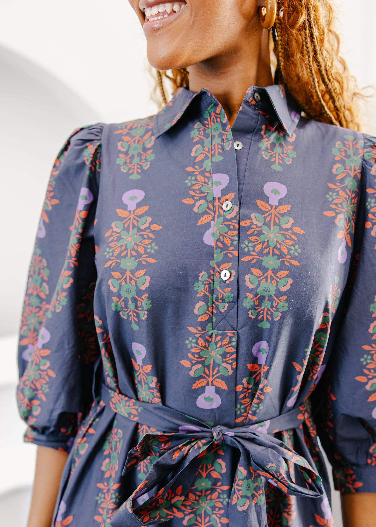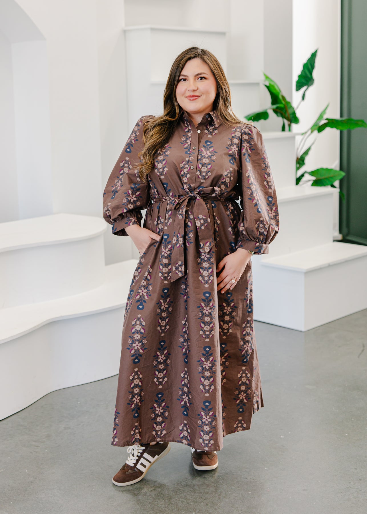 The Collared Belted Midi Dress brings together polish and playfulness in one effortless piece. Featuring a collared neckline, button-down front, and a removable tie belt, it flatters your waist while keeping the look relaxed and refined. The puff sleeves add soft volume, and the flowing midi skirt moves beautifully with every step.
