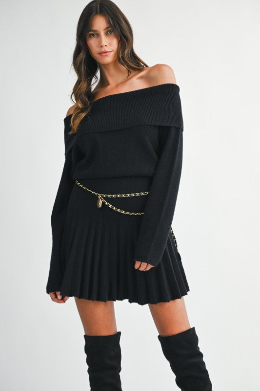 This knit off-shoulder mini dress brings an effortless mix of cozy texture and flirty style. The soft knit fabric hugs comfortably while the off-shoulder neckline adds a touch of romance. Easy to dress up with heels or keep casual with boots, it’s a versatile piece that moves from day to night with ease. A simple, chic staple for your cool-weather wardrobe.