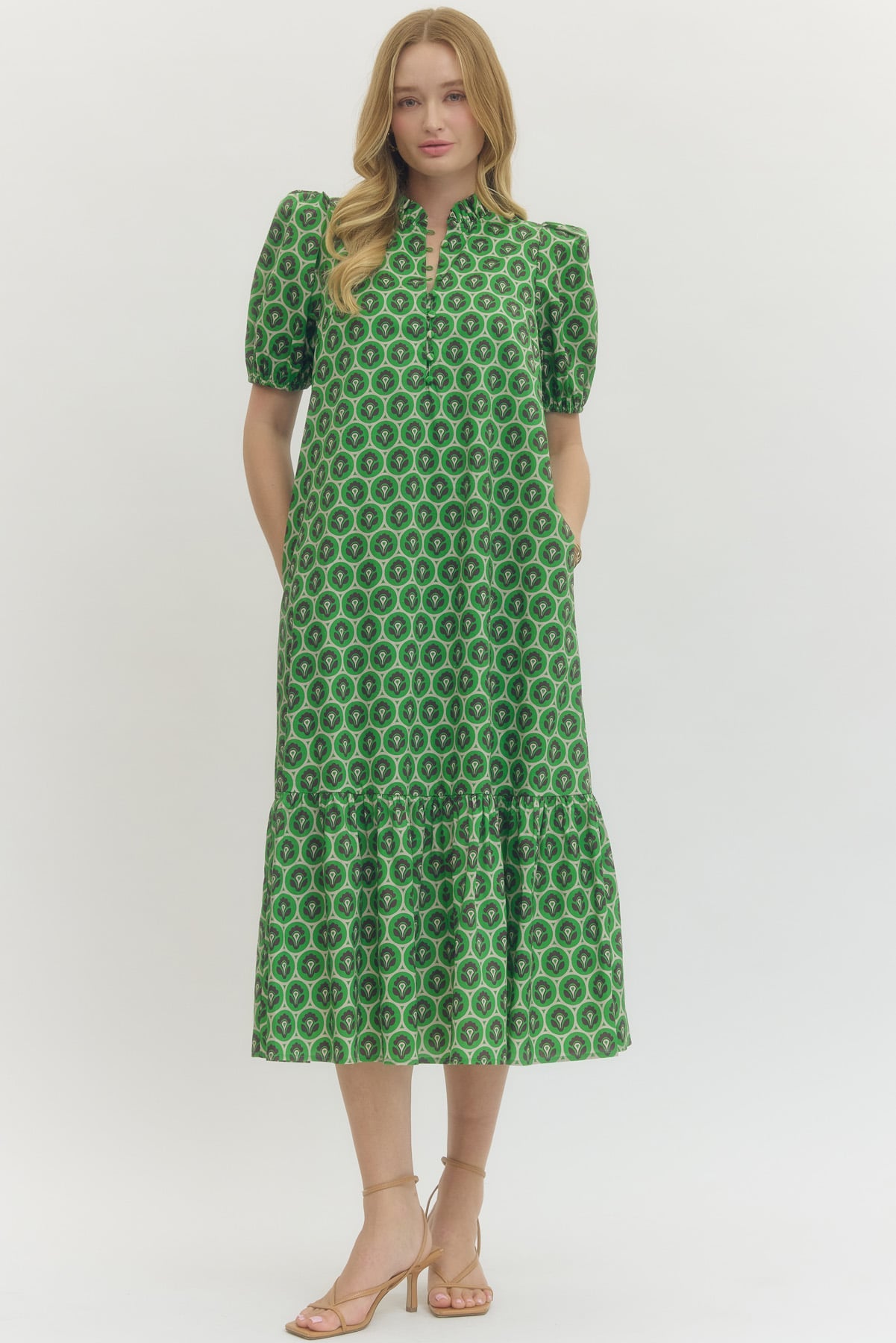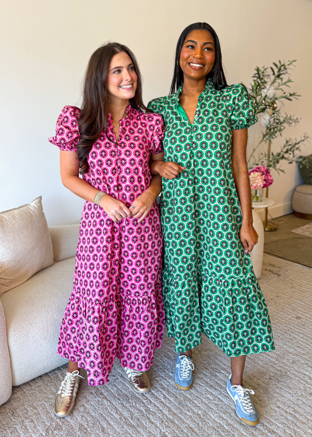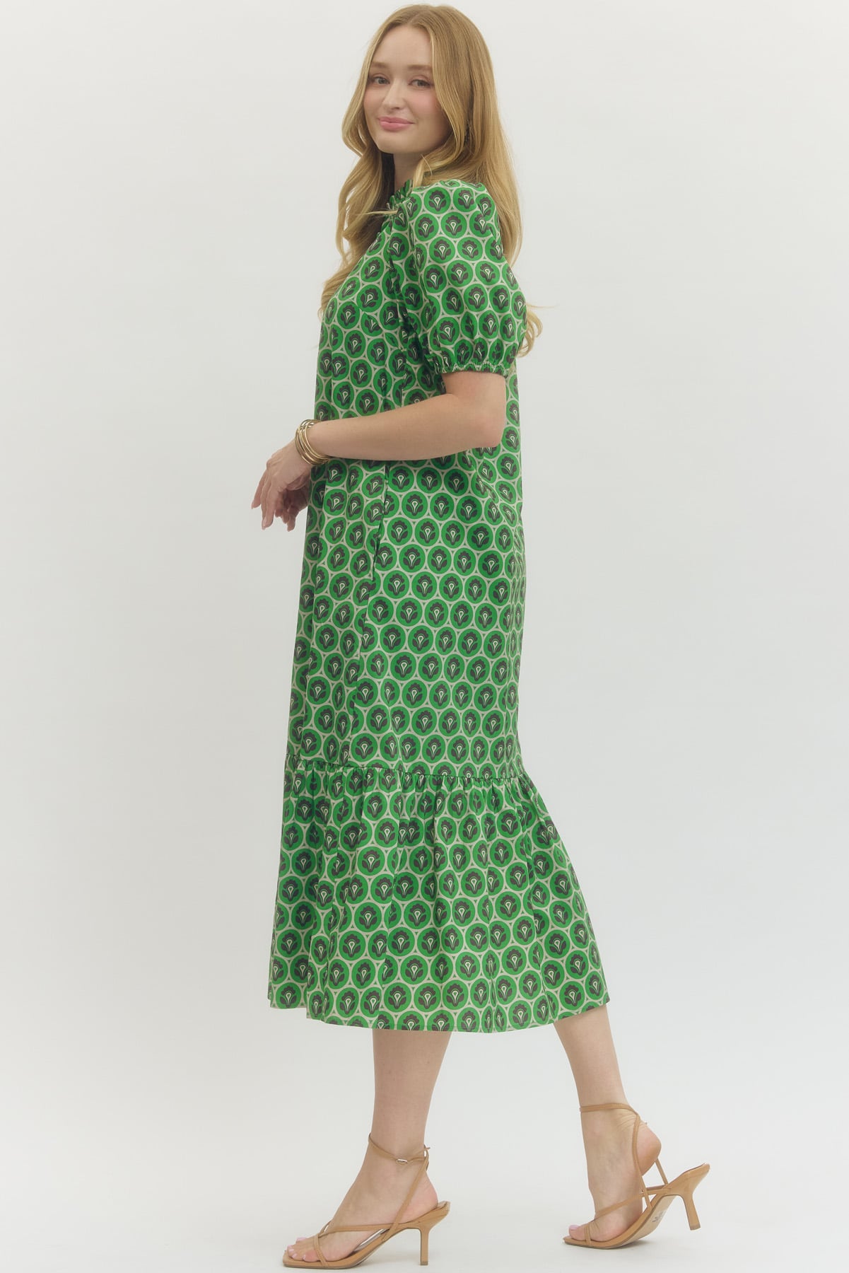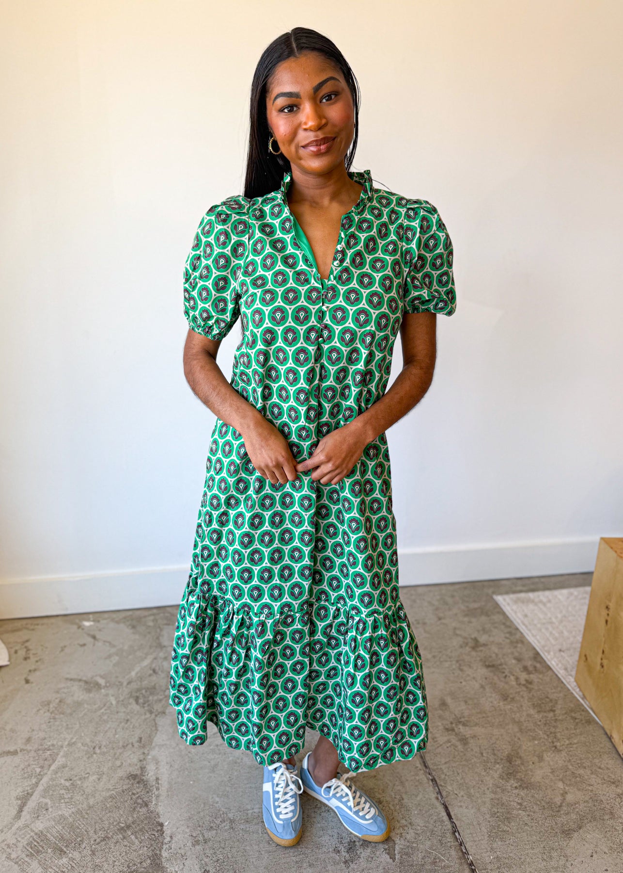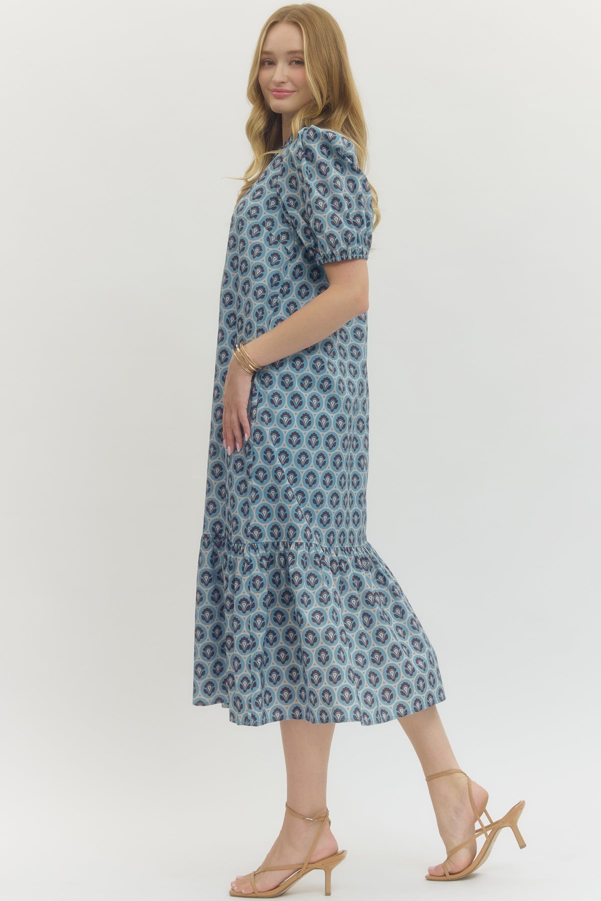 Our best selling body is back in block floral print - perfect for the grandmillennial in you! This midi dress features a relaxed silhouette with short puff sleeves that add subtle volume to the overall look. Designed with an allover print and an easy, flowy shape, it offers comfortable movement while still feeling styled. The simple neckline and timeless length make it easy to wear for everyday plans or more put together moments. Pair it with flats, sandals, or heels for a versatile outfit that transitions effortlessly from day to night.