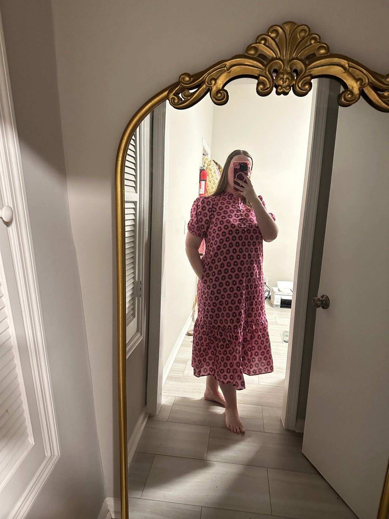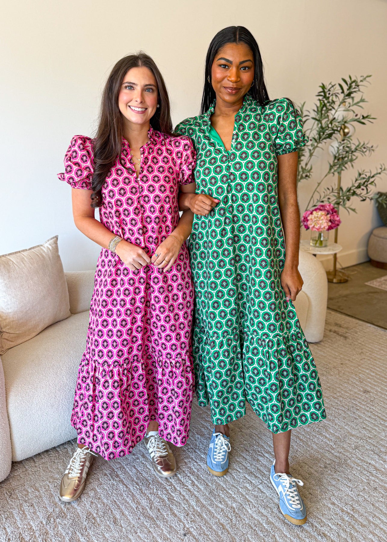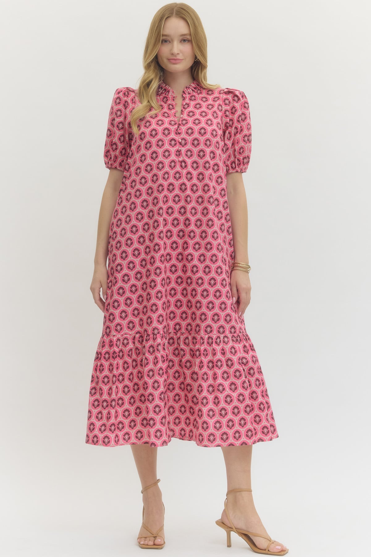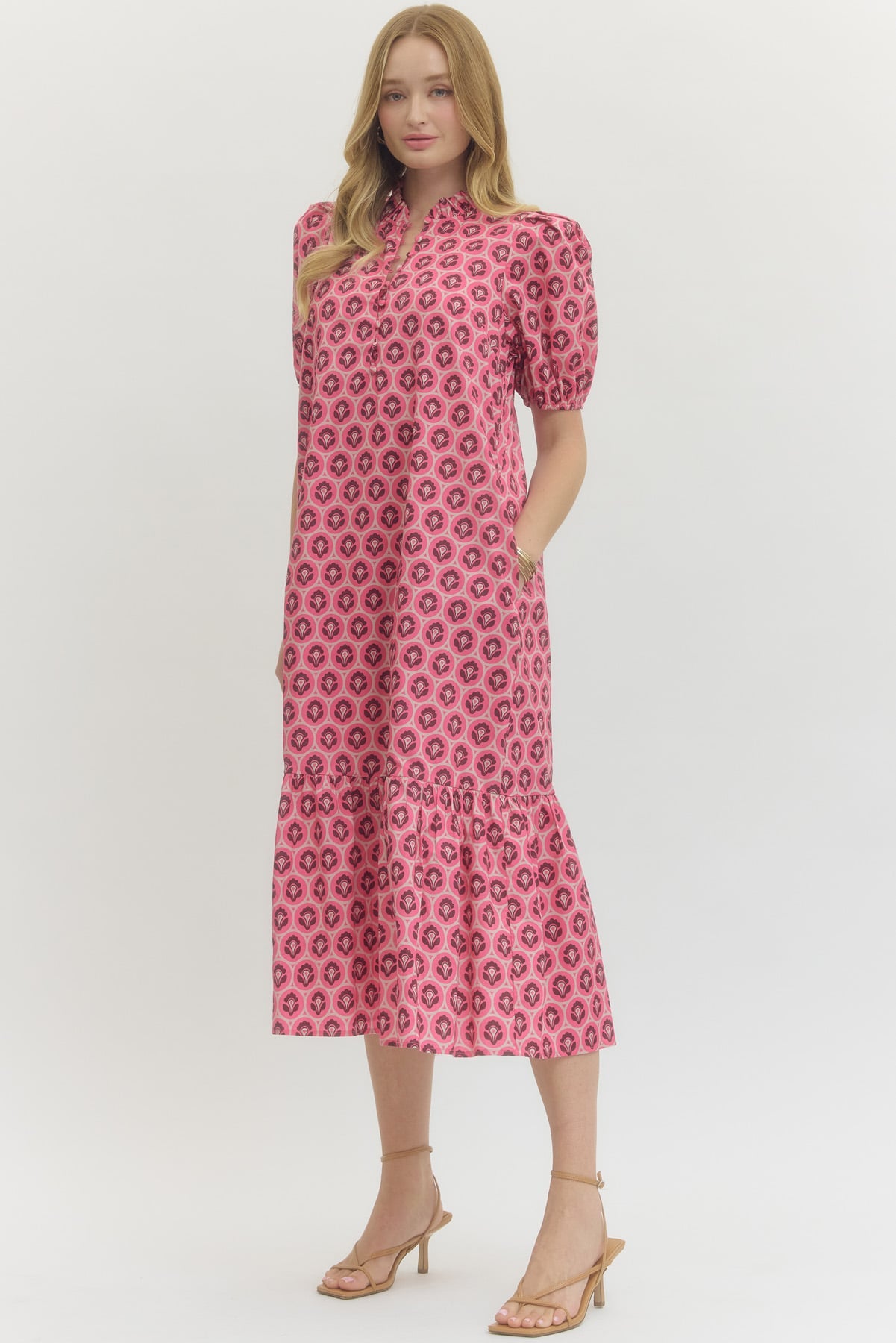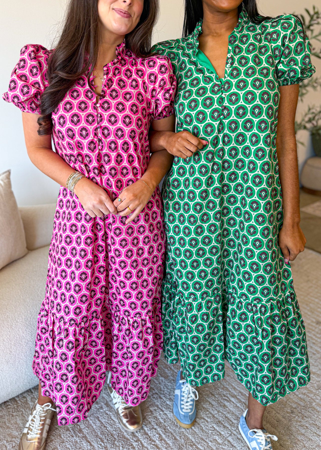 Our best selling body is back in block floral print - perfect for the grandmillennial in you! This midi dress features a relaxed silhouette with short puff sleeves that add subtle volume to the overall look. Designed with an allover print and an easy, flowy shape, it offers comfortable movement while still feeling styled. The simple neckline and timeless length make it easy to wear for everyday plans or more put together moments. Pair it with flats, sandals, or heels for a versatile outfit that transitions effortlessly from day to night.