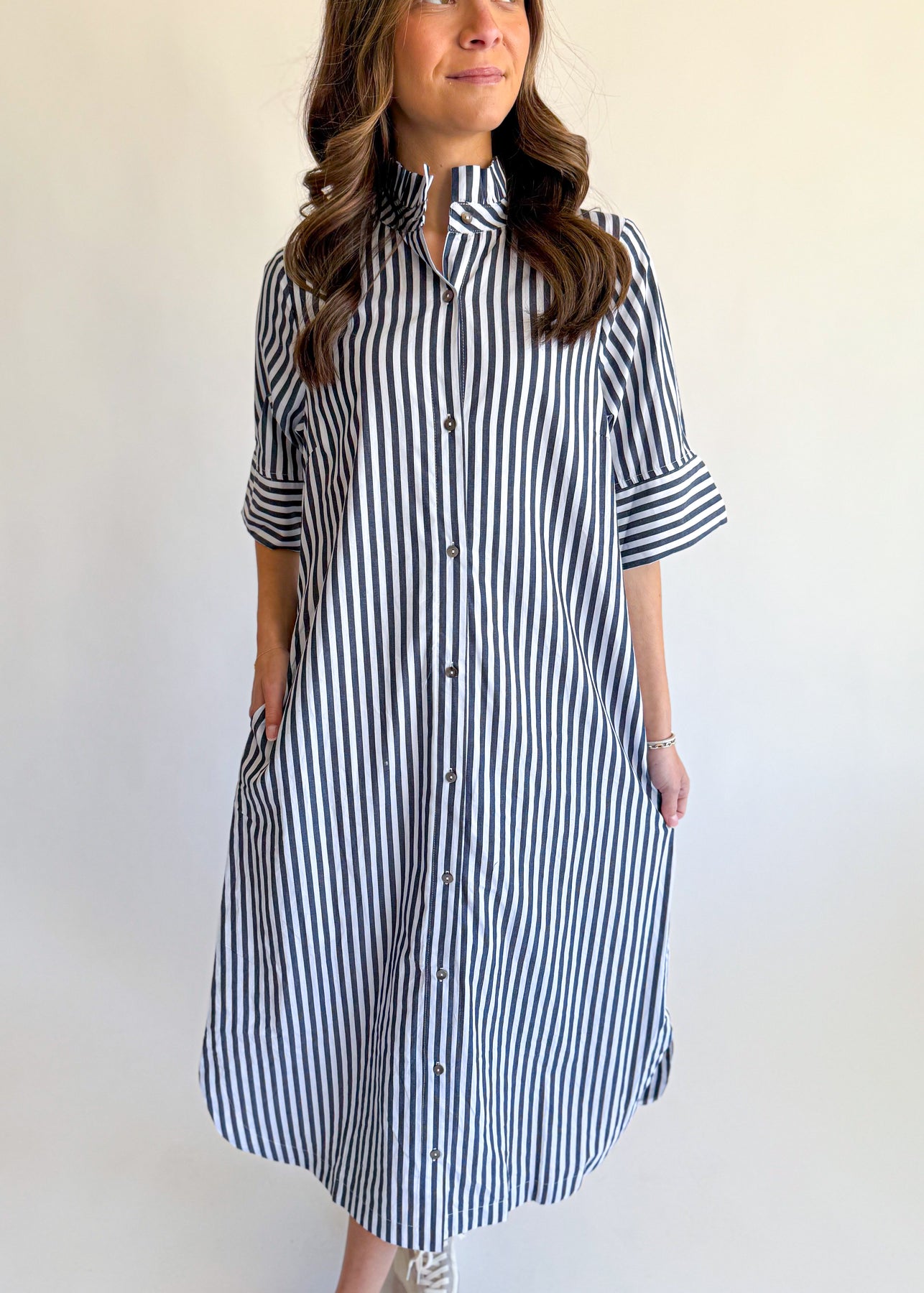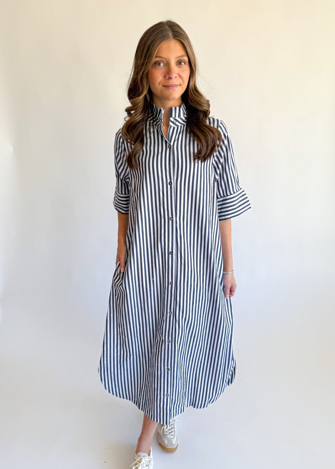 This midi dress features a relaxed silhouette with short sleeves and an easy, everyday feel. Designed with an allover print and a clean neckline, it offers a comfortable fit that moves effortlessly throughout the day. The longer length keeps the look versatile, making it easy to style for casual outings or more polished plans. Pair it with sandals, flats, or heels for a simple outfit that feels put together without trying too hard.