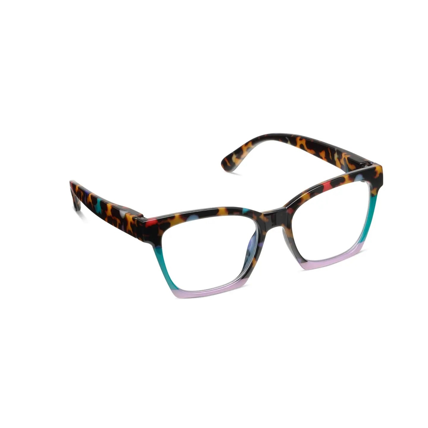 Introducing Birdie Glasses from Peepers! These bold square frames feature a stylish colorblock tortoise design, making them a must-have accessory for any fashion-forward individual. Perfect for reading or everyday wear, these eyeglasses will add a touch of elegance and character to any outfit. See clearly and look great with Birdie Glasses!
