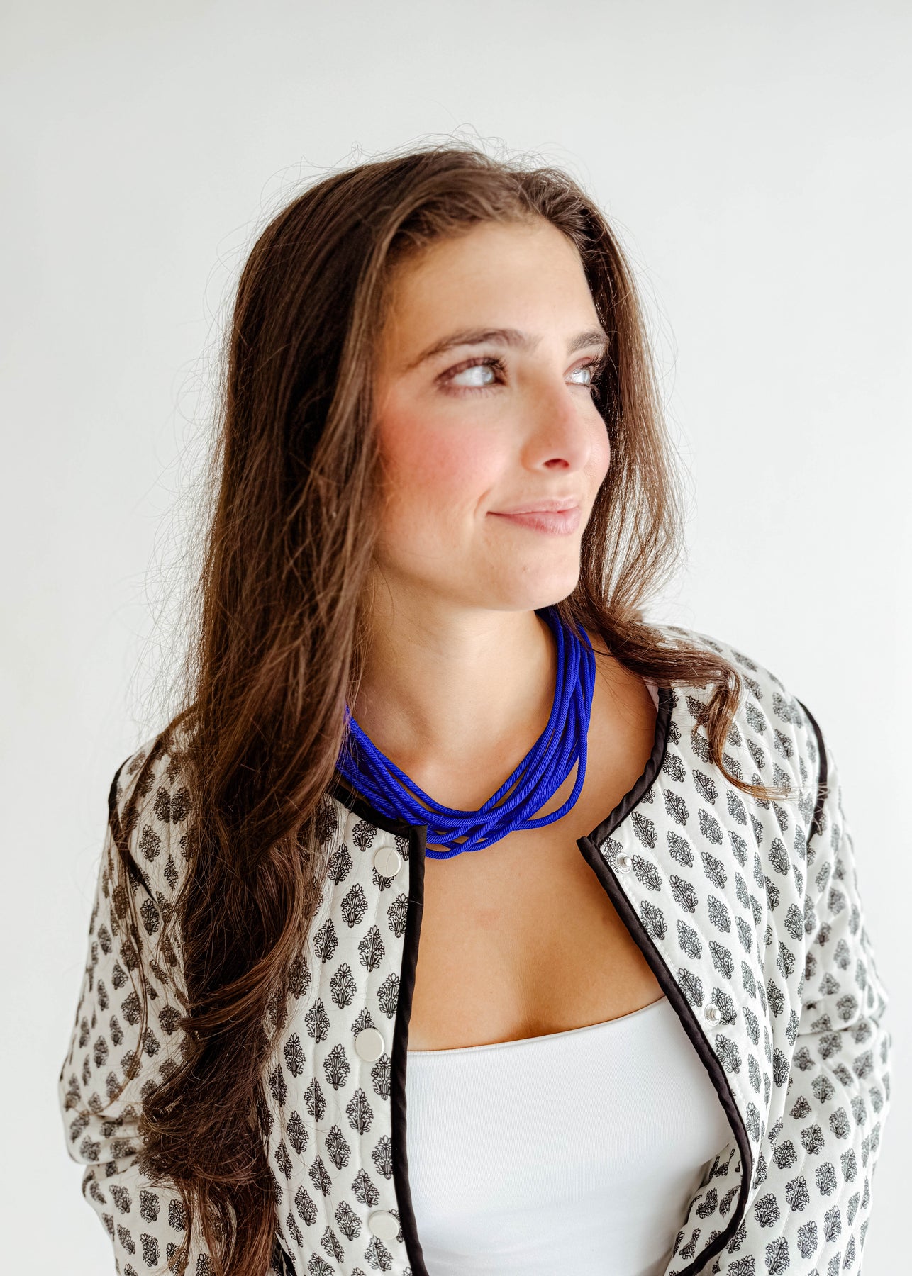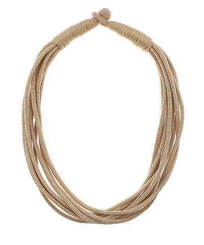 The design features eight distinct layers of soft, cotton-slub rope strands that cascade together to create striking depth and texture. Each strand has been carefully twisted and layered, giving the necklace a dimensional quality that moves beautifully with you. The rope-inspired design offers a natural yet polished look, making it a standout piece that still feels effortless. From its construction to its finishing details, every element was thoughtfully considered to bring you a necklace that is both versatile and fashion-forward.