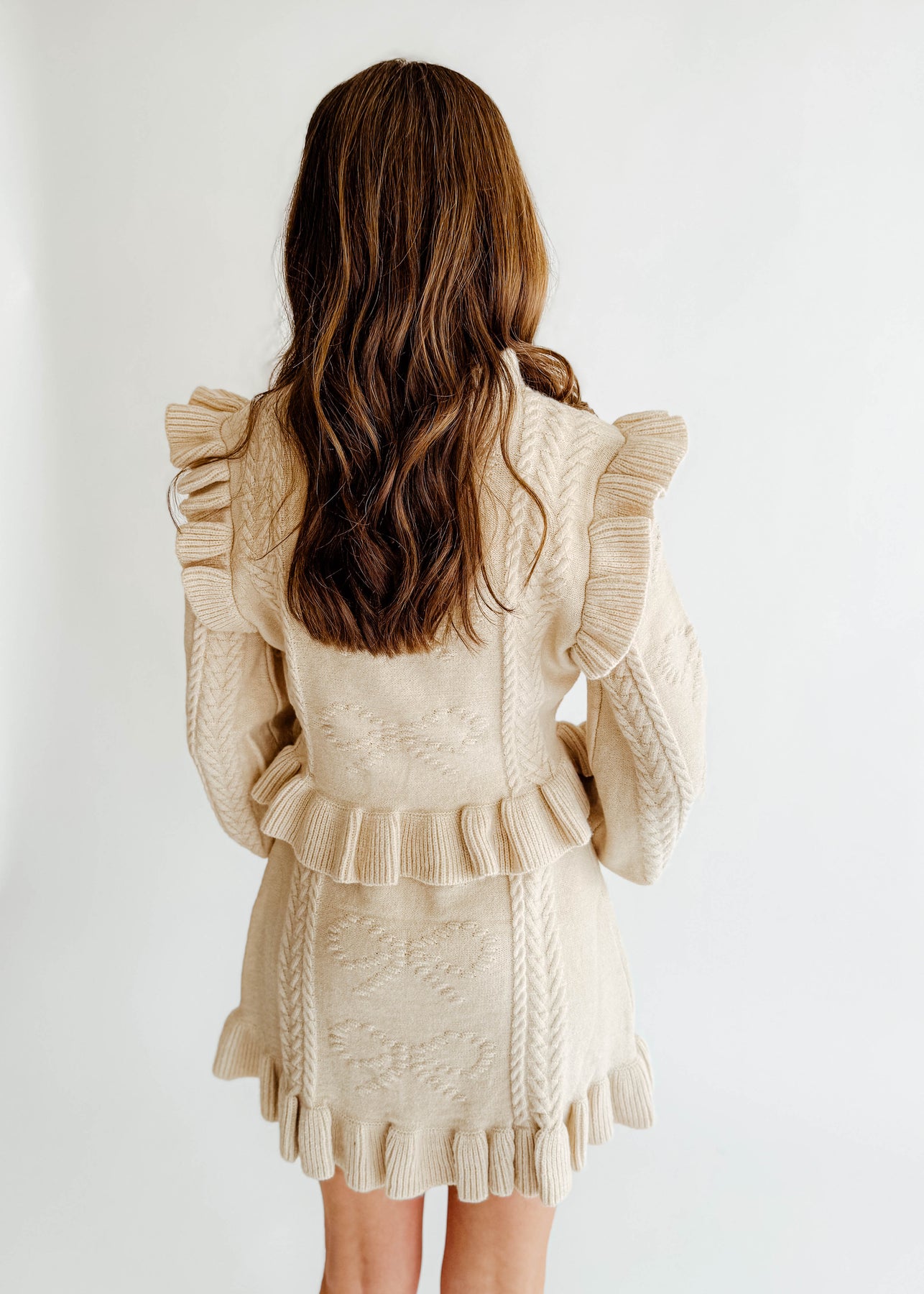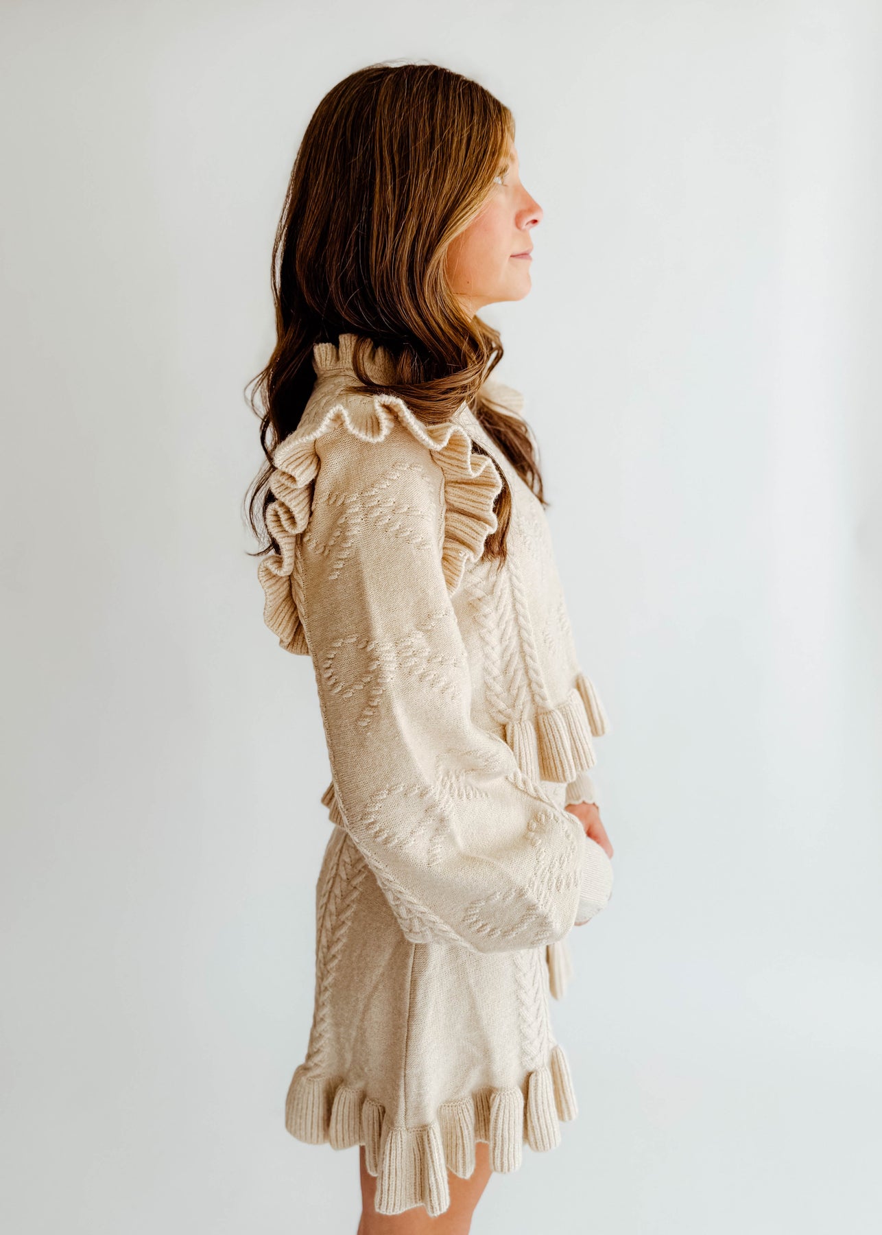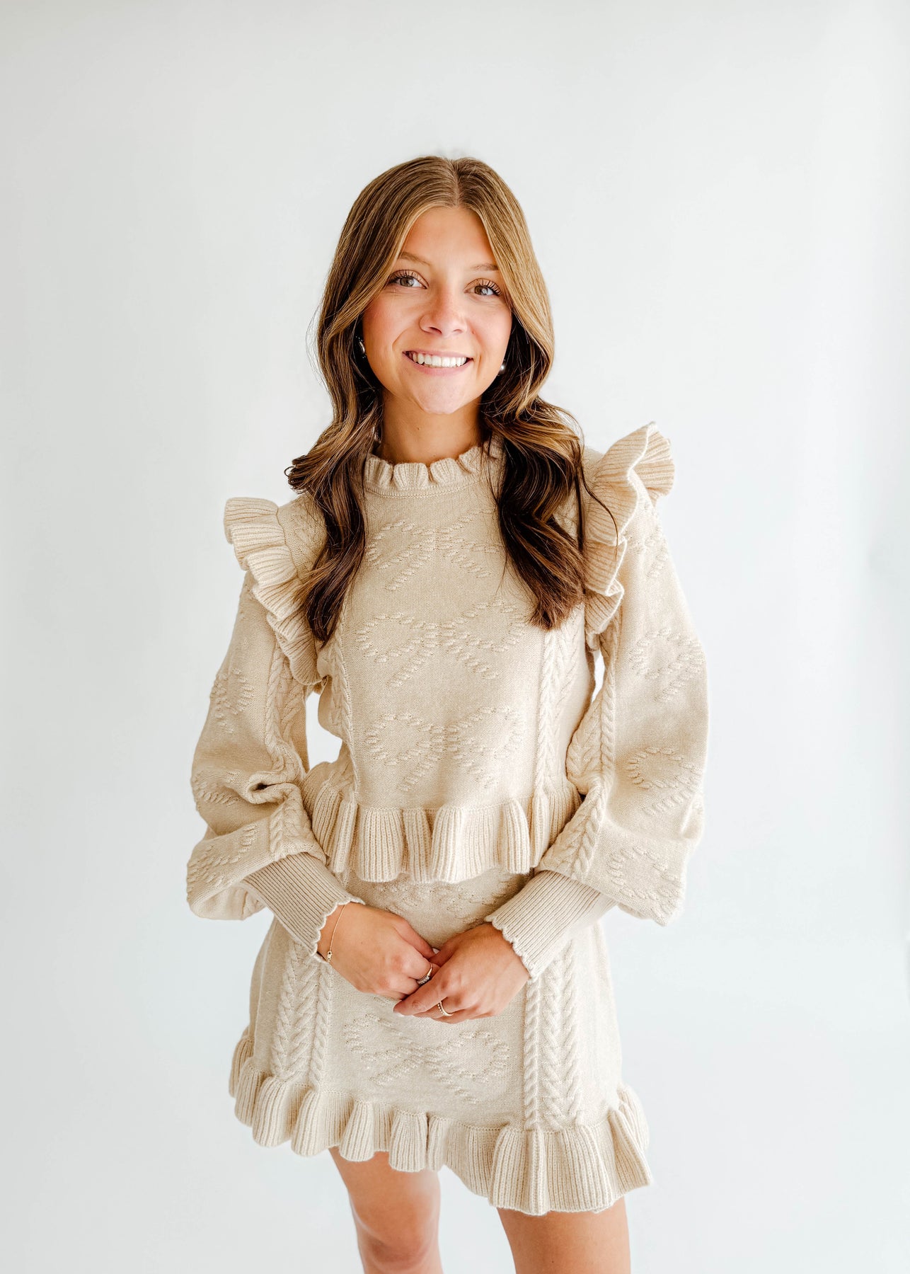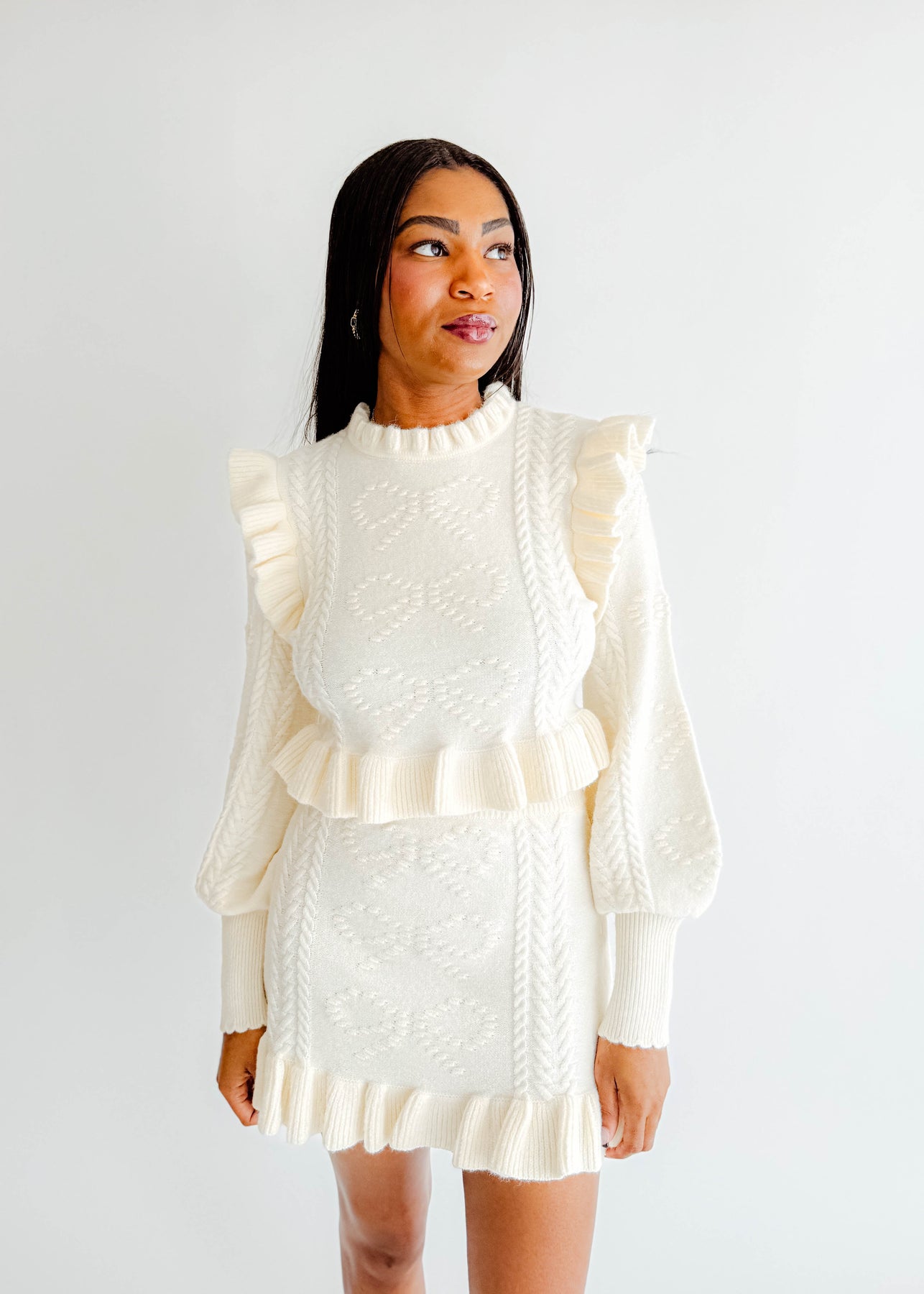 Upgrade your wardrobe with our Nola Knit Top and Skirt Set! Stay stylish and comfortable with long sleeves, smocked and bubble sleeves on the top, and an elastic waist on the skirt. The frill hem on both pieces adds a touch of femininity to this must-have set.