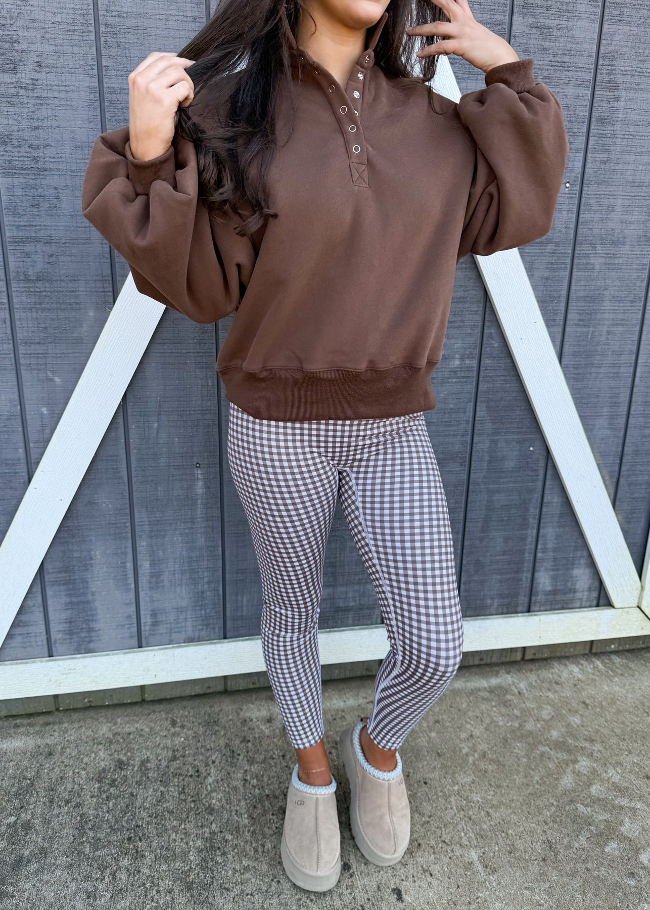 Step up your legging game with our Gingham Performance High Rise Leggings! The gingham print adds a touch of style to your workout wardrobe while the high-rise cut provides a flattering, seamless look. Our quick-drying fabric with four-way stretch technology keeps you comfortable and cool during even the most intense workouts. Don't sacrifice fashion for performance, get the best of both worlds with our weightless breathable brushed soft leggings.