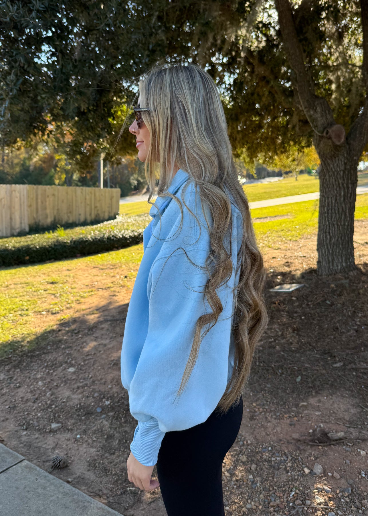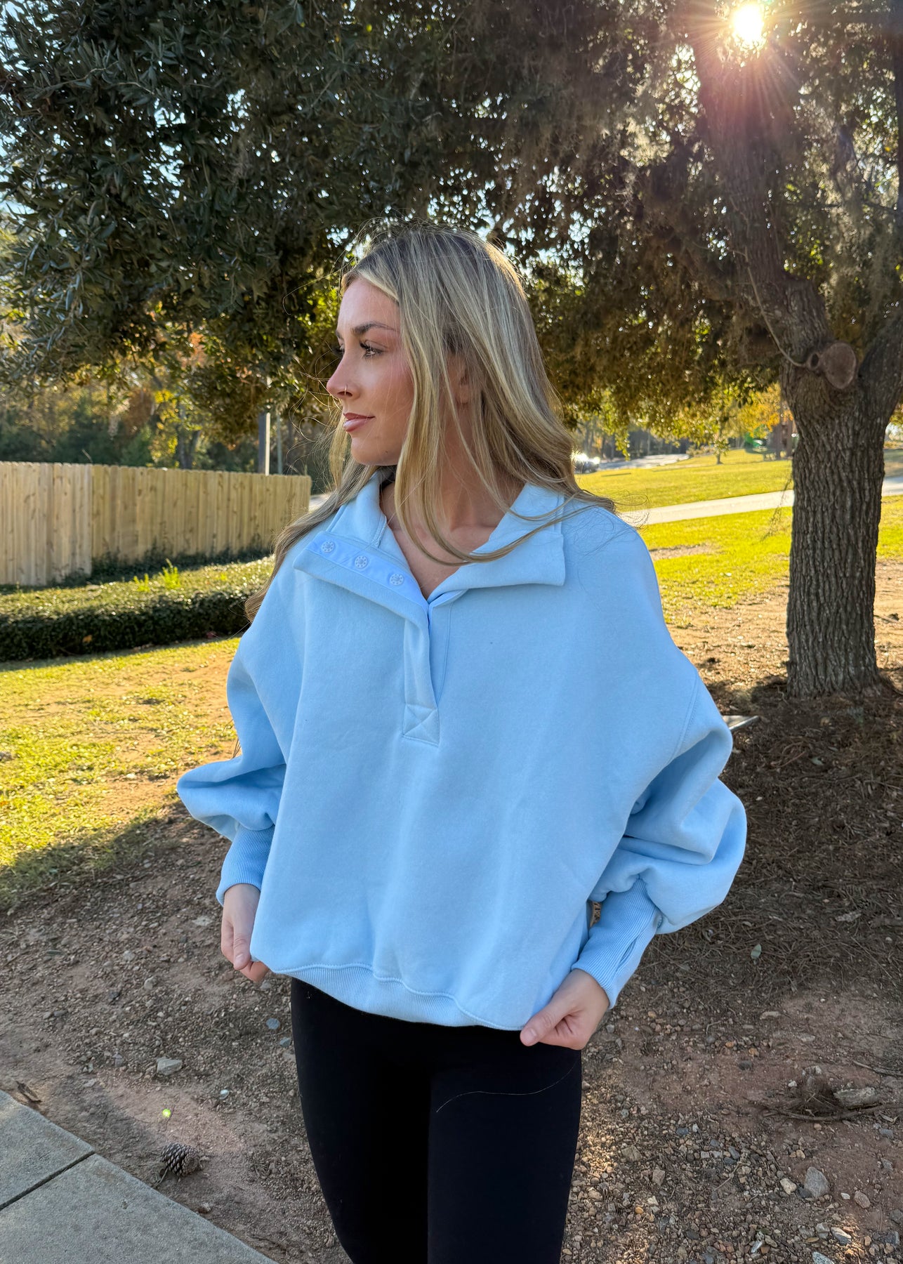 Cool, comfy, and effortlessly laid-back—the Snap Collar Relaxed Pullover is made for cozy days with a hint of style. Featuring a relaxed fit, soft fleece fabric, and a snap-button collar, it’s the perfect mix of casual and put-together. The ribbed cuffs and hem give it that slightly oversized, lived-in feel you’ll want to wear every day.