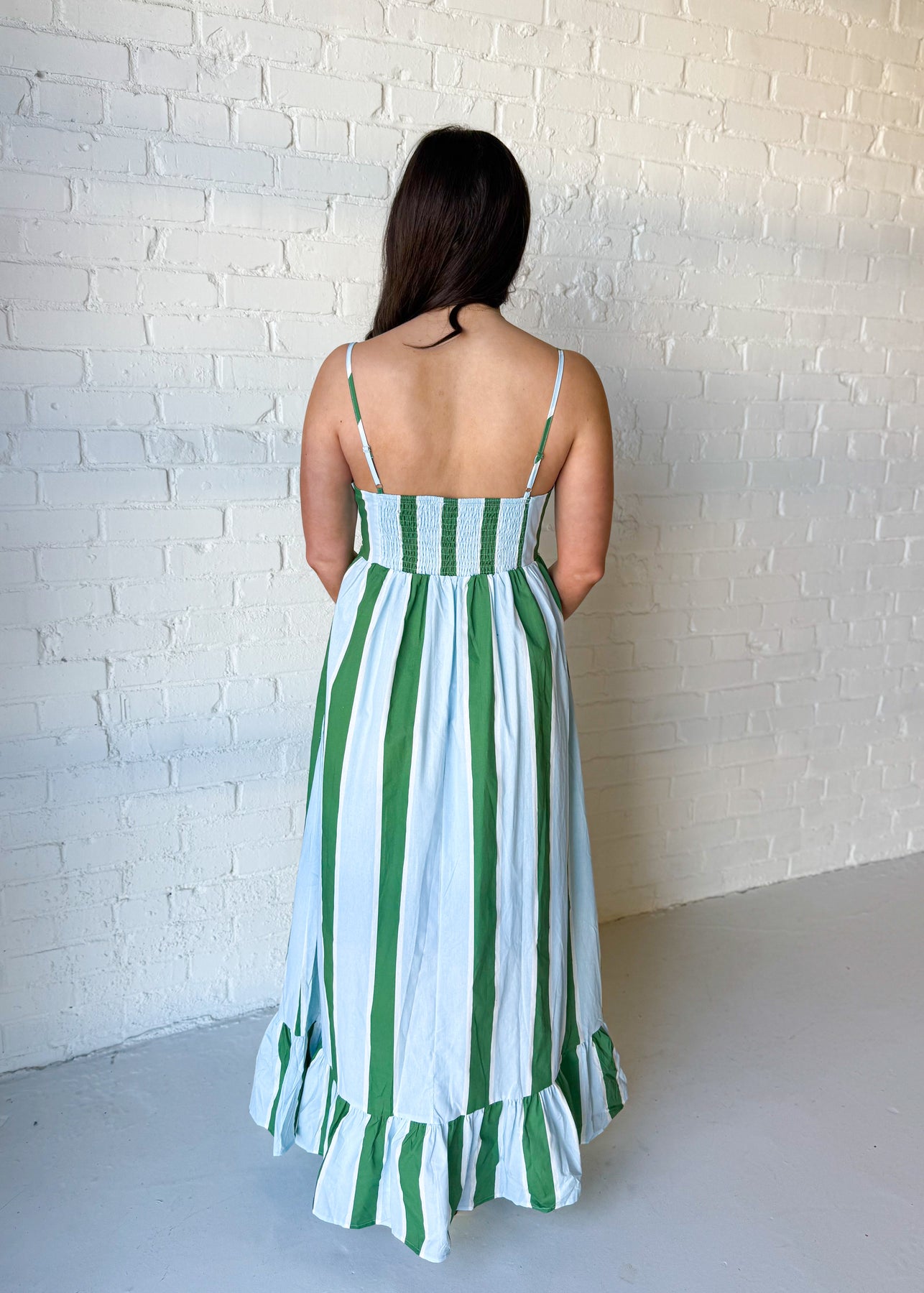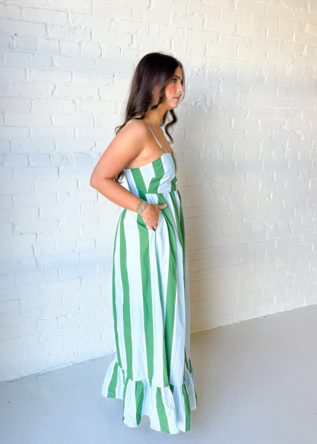 Effortlessly chic meets comfort in this striped maxi dress that's ready for anything. The smocked back detail adds a touch of texture and visual interest, while practical side pockets keep your essentials close. Perfect for casual outings or dressed-up occasions, this versatile piece transitions seamlessly from day to night. The flowing silhouette flatters every frame, making it a wardrobe staple you'll reach for again and again.