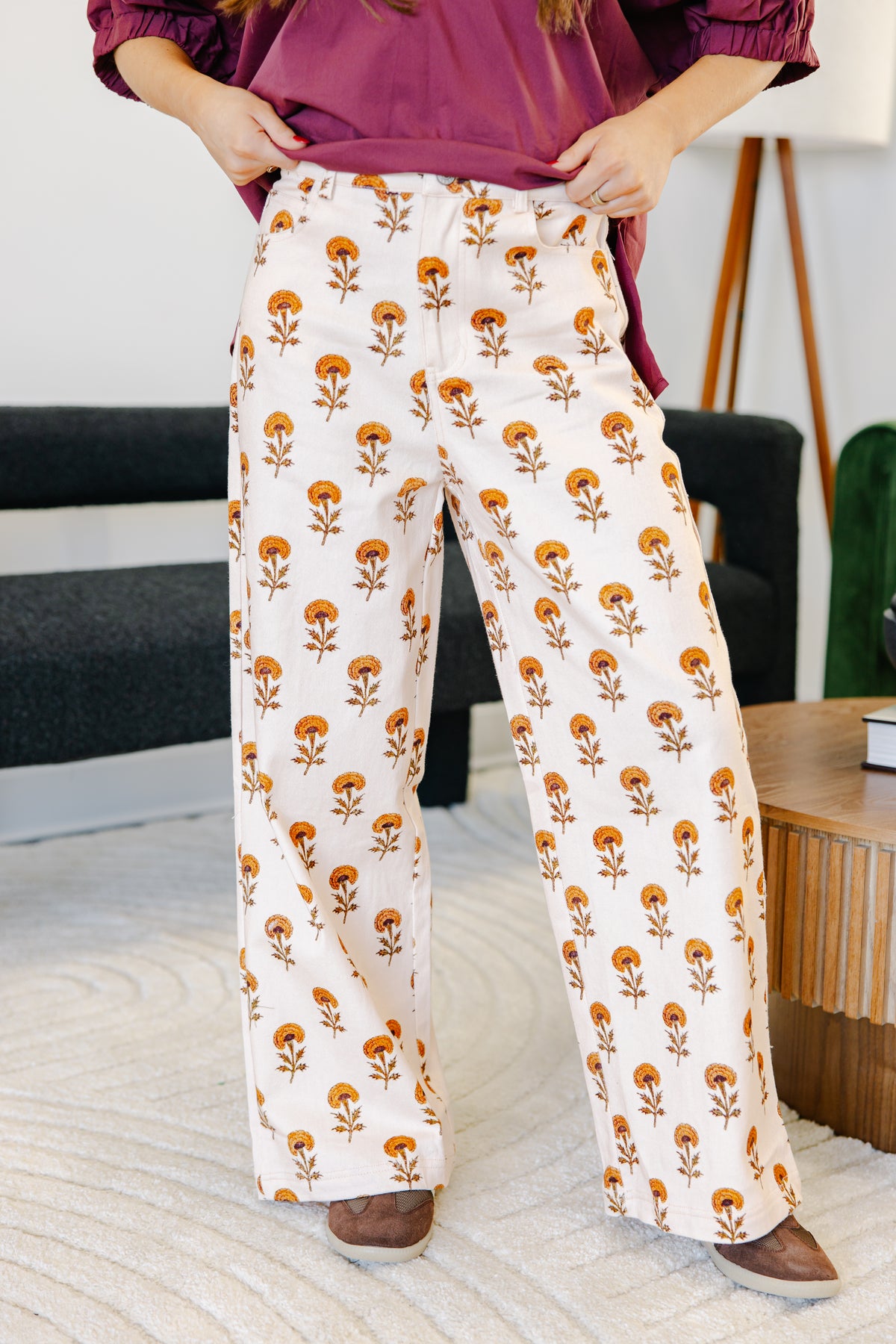 Designed for days when you want comfort with personality, these wide leg pants feature a vintage-inspired floral pattern and a structured silhouette that flatters without feeling fussy. The mid-rise fit and cropped length keep it casual, while the soft yet durable fabric makes them perfect for everyday wear.