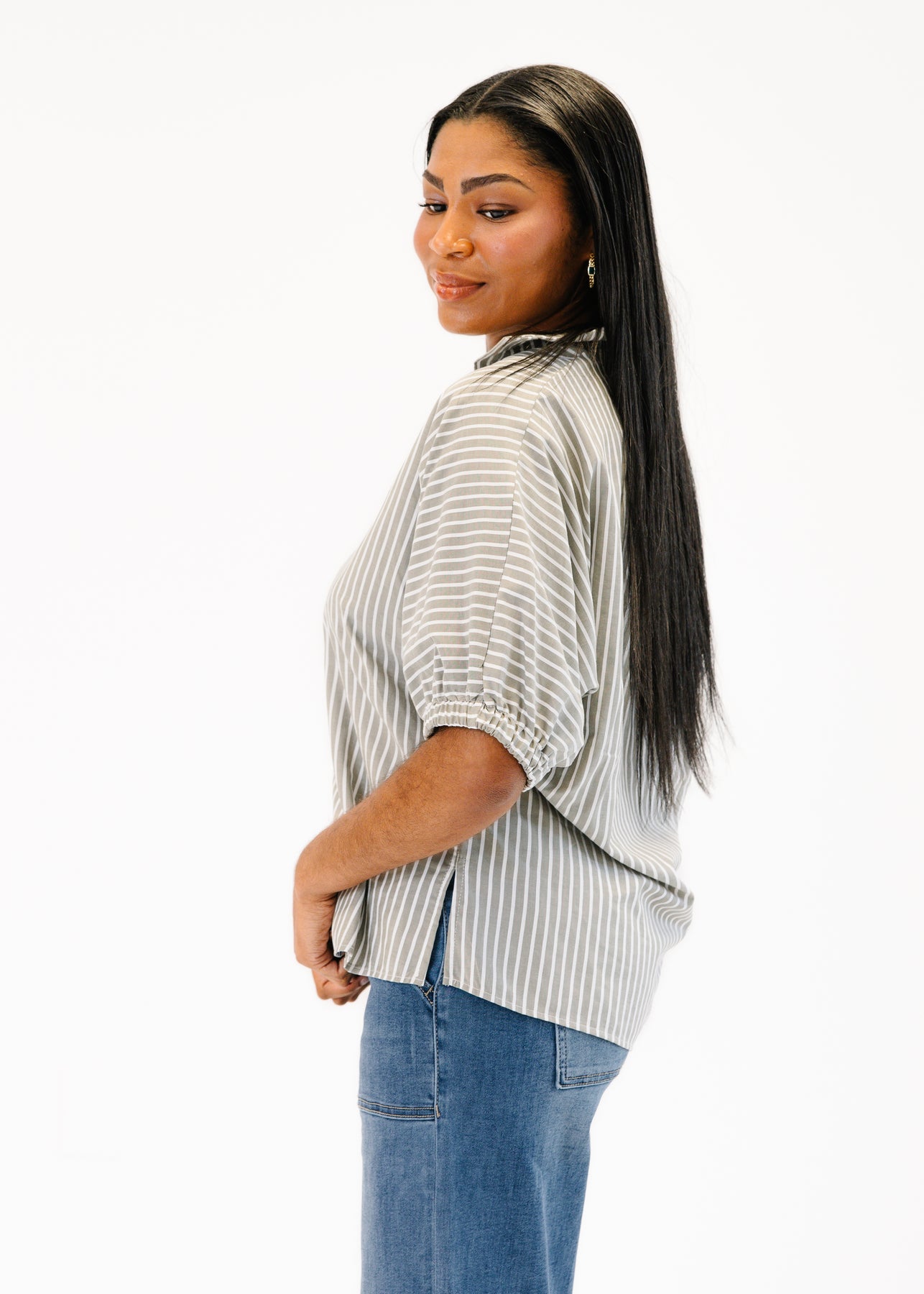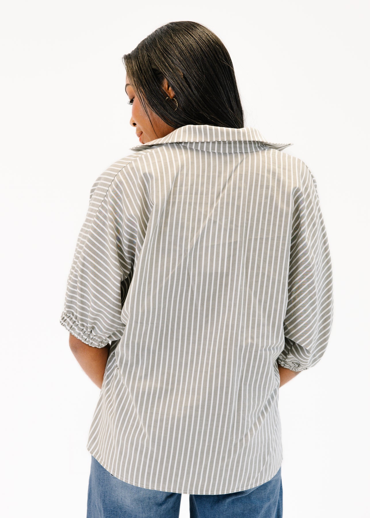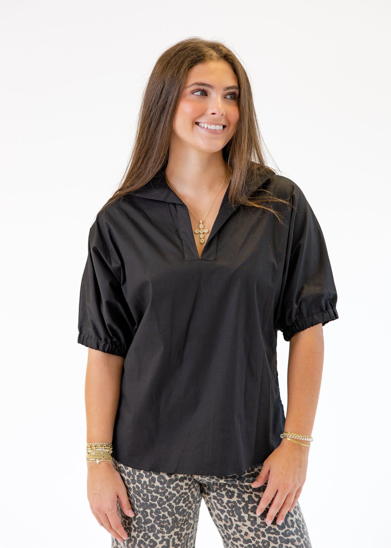 Bring effortless sophistication to your wardrobe with the Sloan Collared Puff Sleeve Top. Designed with a structured collar and voluminous puff sleeves, this piece blends polished style with a relaxed fit for all-day comfort. The half-placket neckline and tailored silhouette make it a versatile staple — perfect for pairing with jeans for a casual outing or trousers for a chic office look.