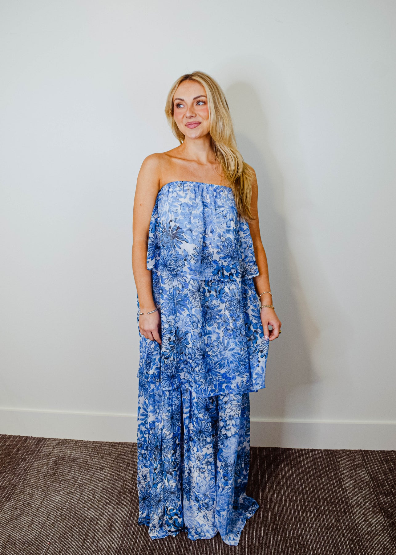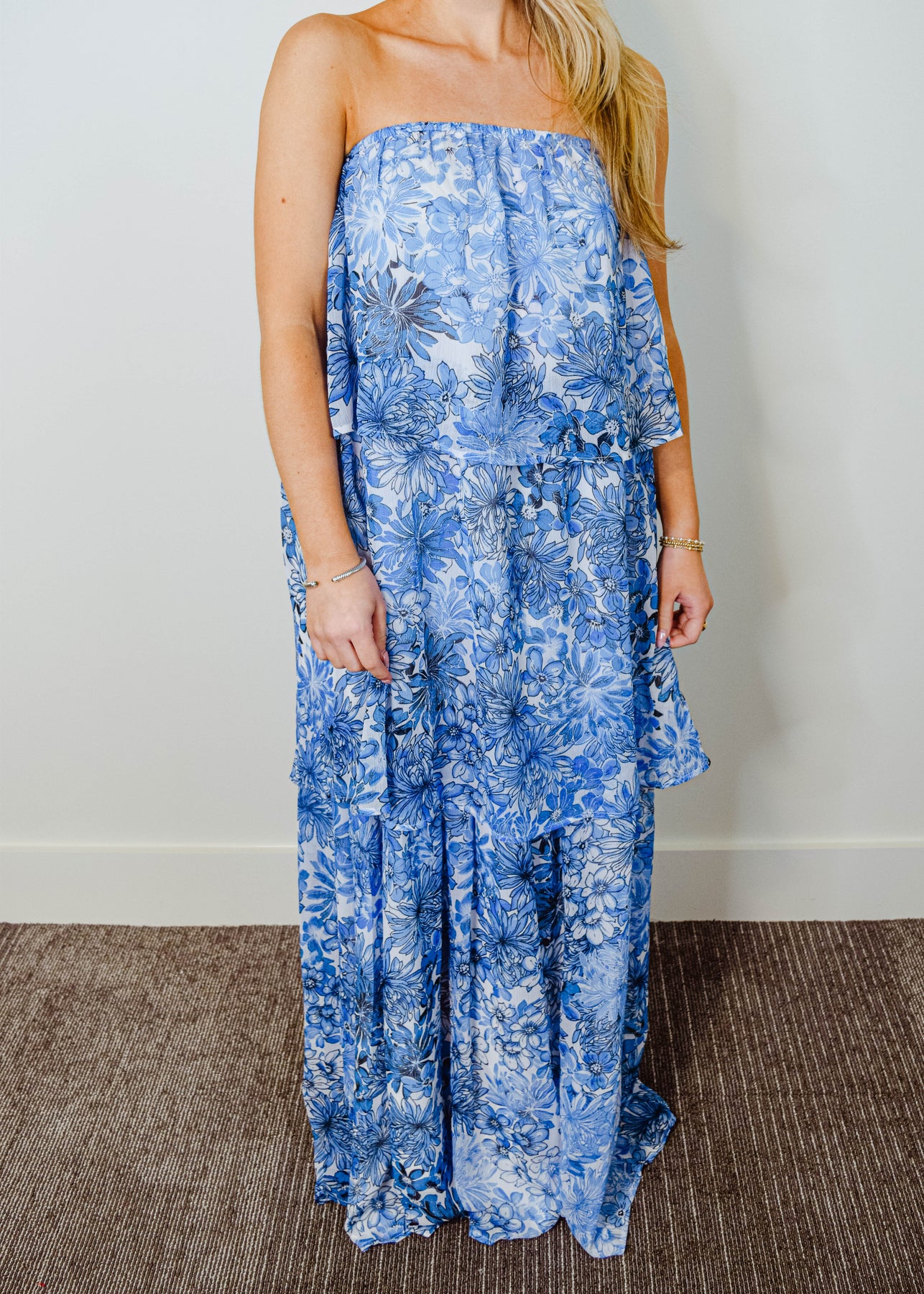 Tierra captures the essence of laid-back glamour with its breezy strapless silhouette and softly layered skirt. Drenched in a lush floral print, this maxi dress flows effortlessly with every step, giving it that sunkissed, carefree vibe. The strapless bodice offers a clean neckline perfect for showing off statement earrings or a glowing tan. Whether you're attending a garden soirée or escaping to the coast, Tierra brings romance and ease in every movement.