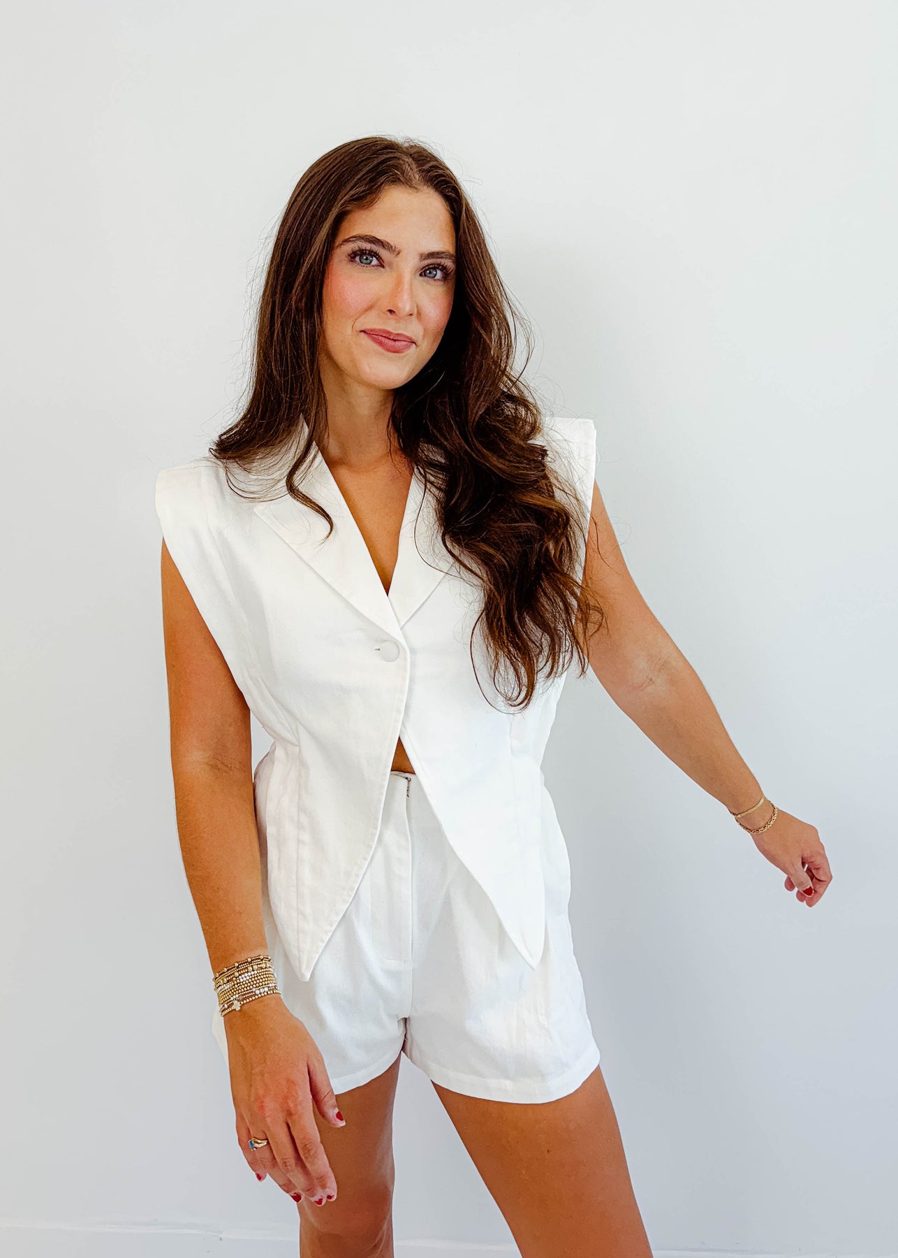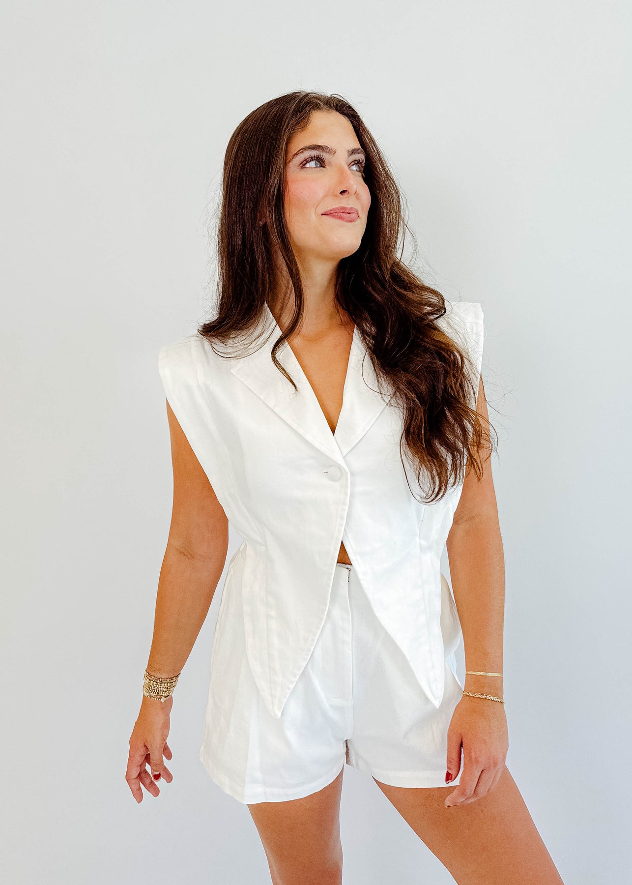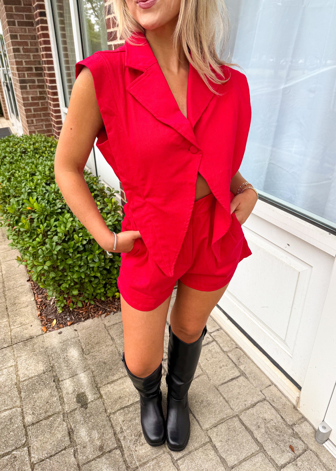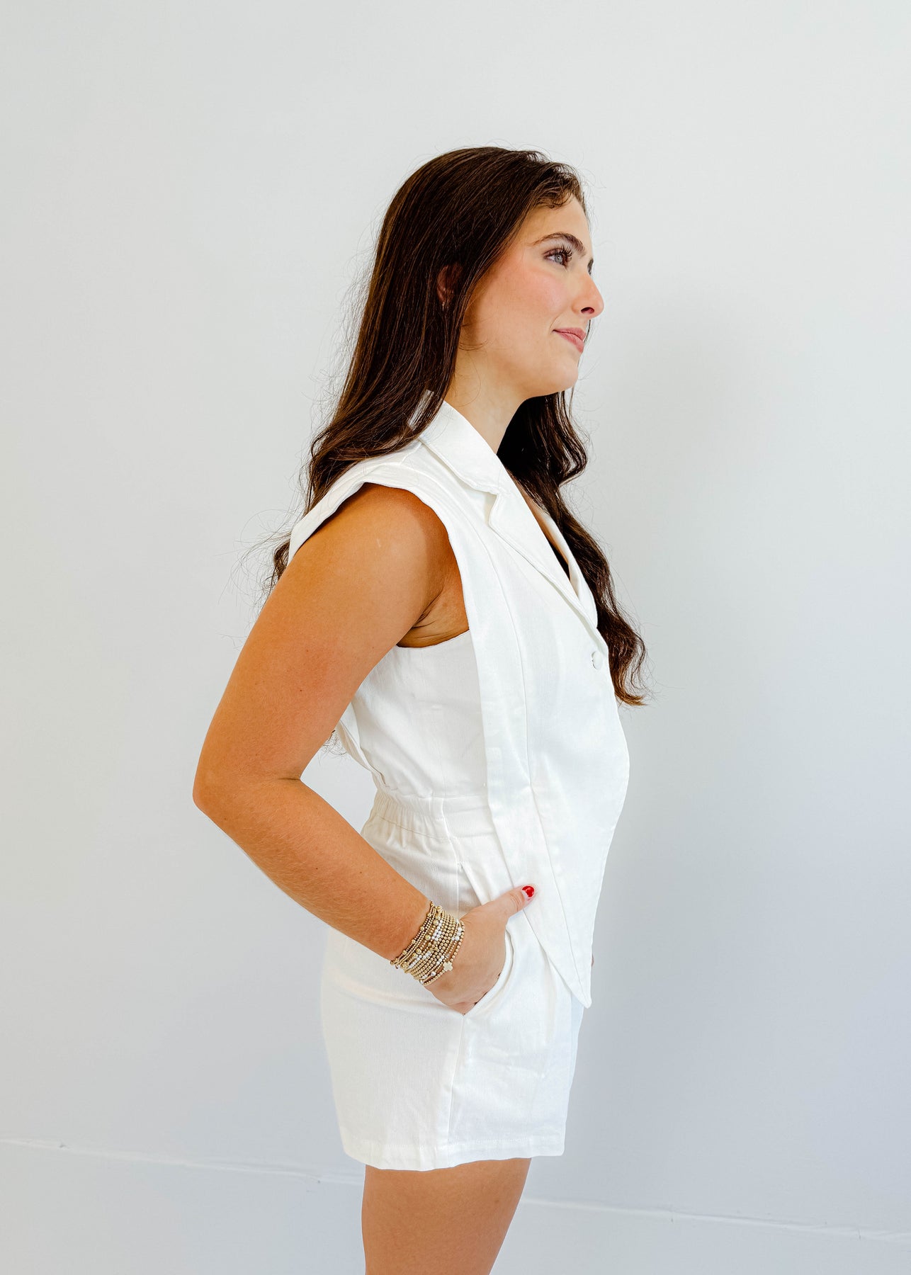 The Ariana Tailored Romper delivers a bold, structured look with its sharp lapel collar and clean, sleeveless design. Its tailored fit creates a polished silhouette, while the relaxed shorts offer ease and movement. Side pockets add functionality, making it as practical as it is stylish. Whether you’re headed to brunch or a night out, Ariana is a statement piece that turns heads with confidence and charm.