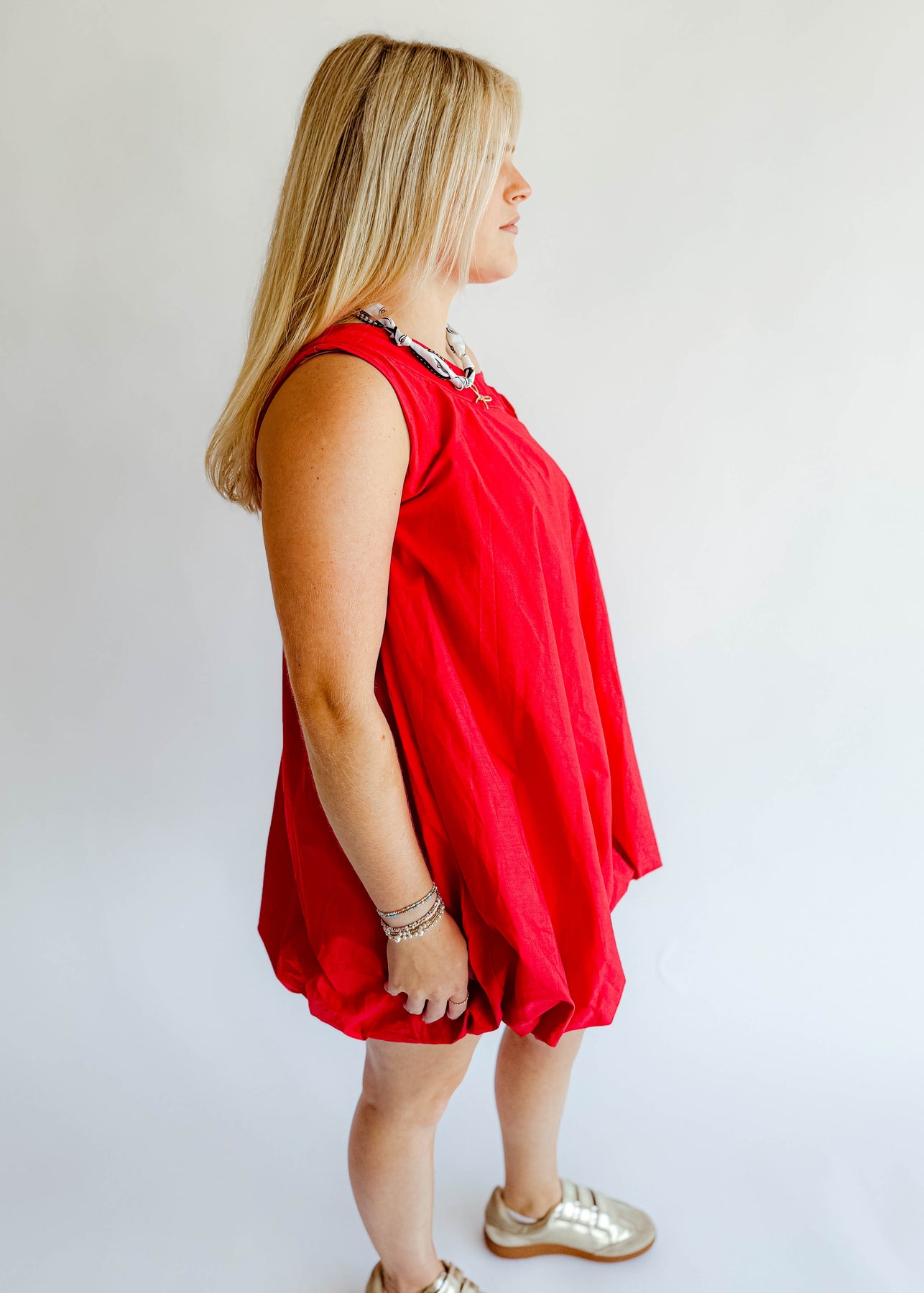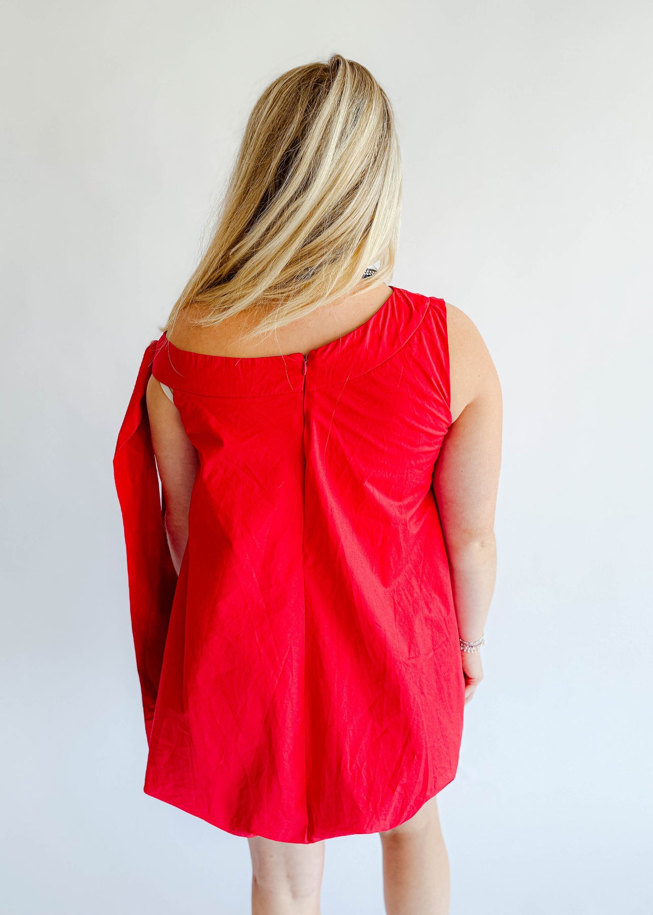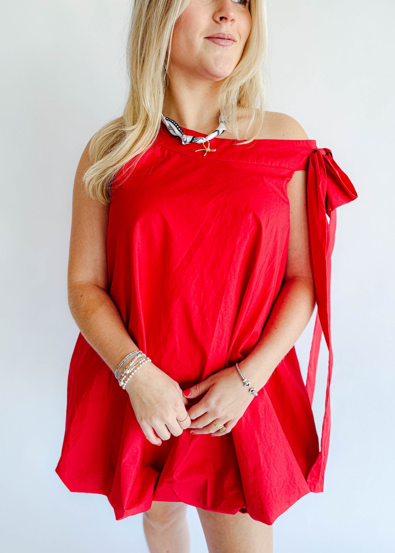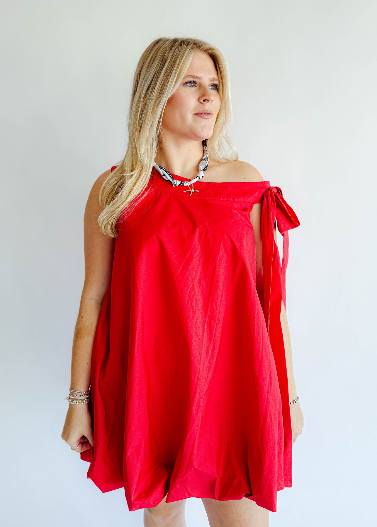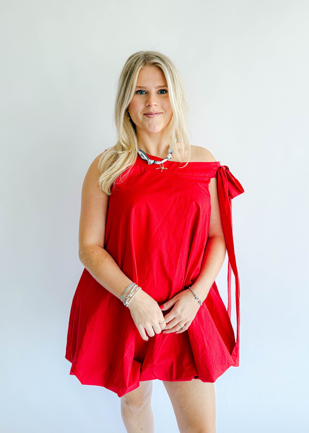 Make a bold entrance with the Ruby Bubble Dress, a playful and elegant piece designed to stand out. This dress features a dramatic one-shoulder silhouette with a voluminous, flowy shape that flatters every figure. The oversized bow detail at the shoulder adds a touch of feminine charm and whimsy, while the bubble hem creates a unique, modern finish.