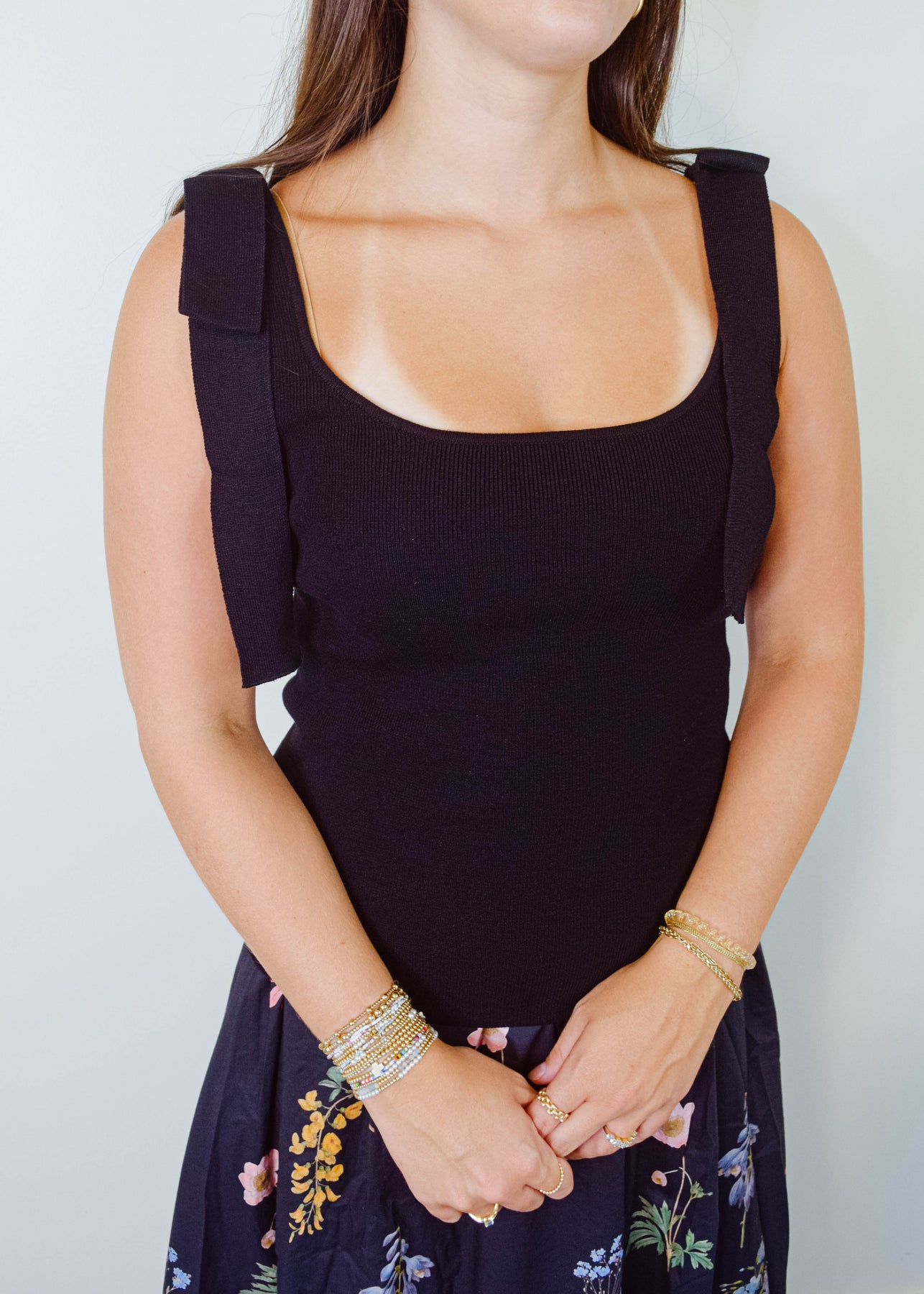 The Ashley Sleeveless Top is a timeless staple designed for effortless styling. Featuring delicate tie straps and a classic sleeveless cut, this top offers a flattering fit with a touch of charm. The solid color makes it easy to mix and match, whether you’re dressing it up with a skirt and heels or keeping it casual with denim and sandals. Lightweight and breathable, it’s perfect for warm days or layering under a jacket when the temperature cools.