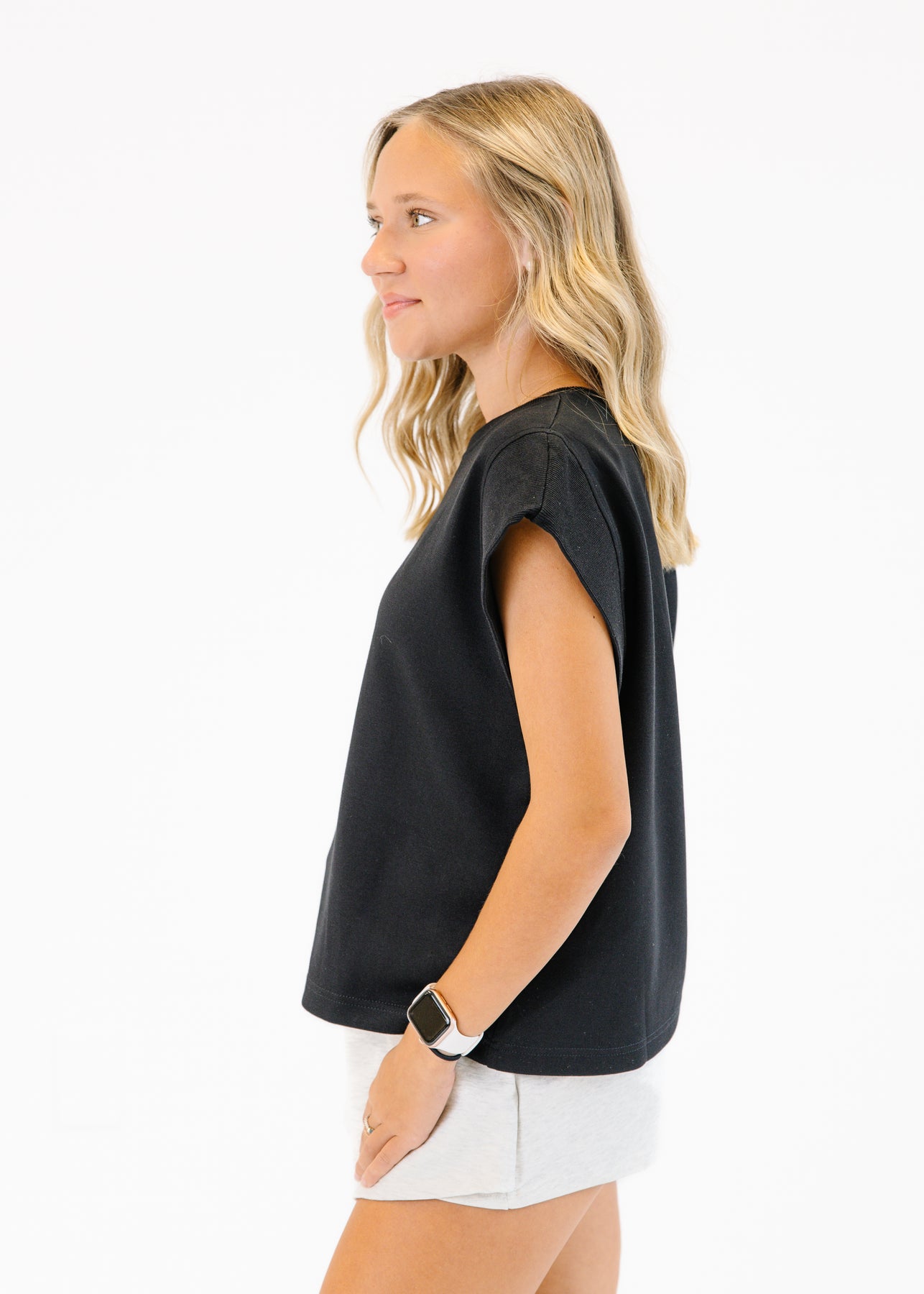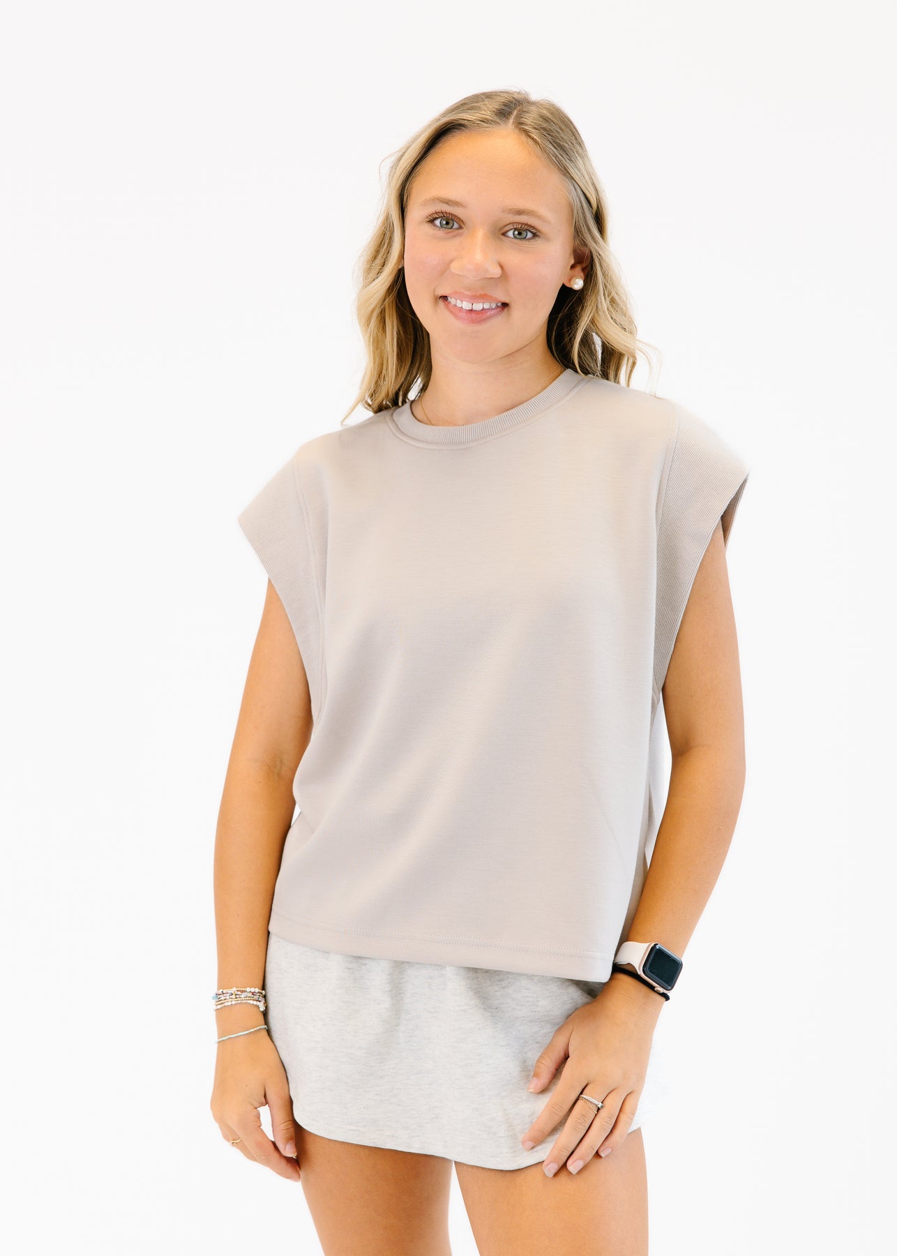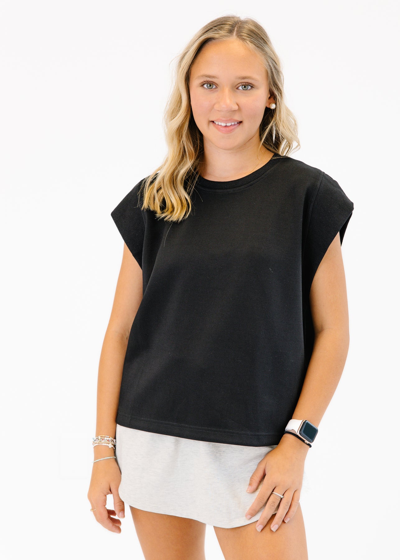 This sleeveless knit top is a wardrobe essential designed for everyday versatility. Featuring a classic crew neckline and soft capped sleeves, it offers a clean and modern silhouette that can be styled in endless ways. The relaxed fit drapes comfortably, making it perfect for layering under jackets or cardigans, while still polished enough to wear on its own.