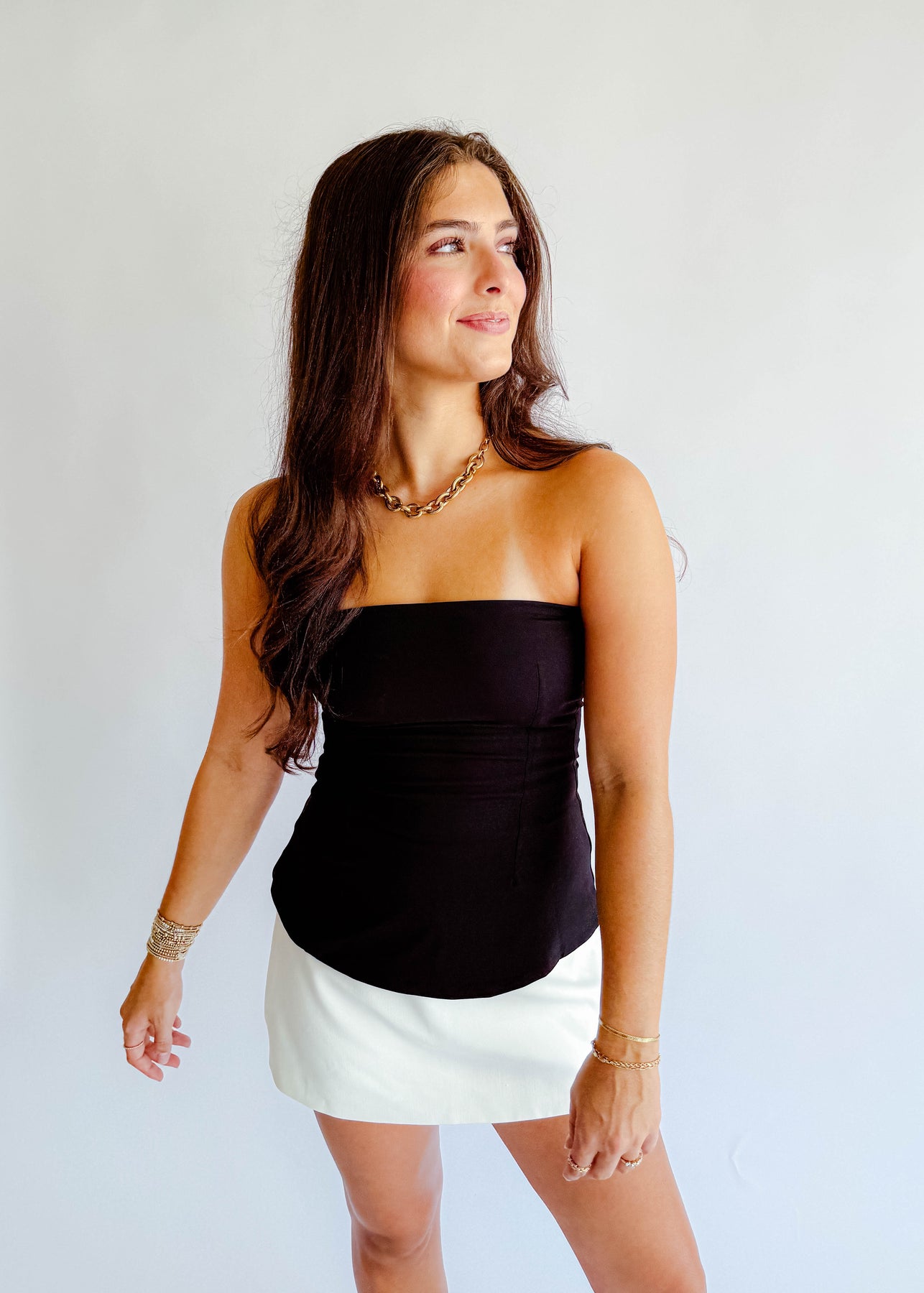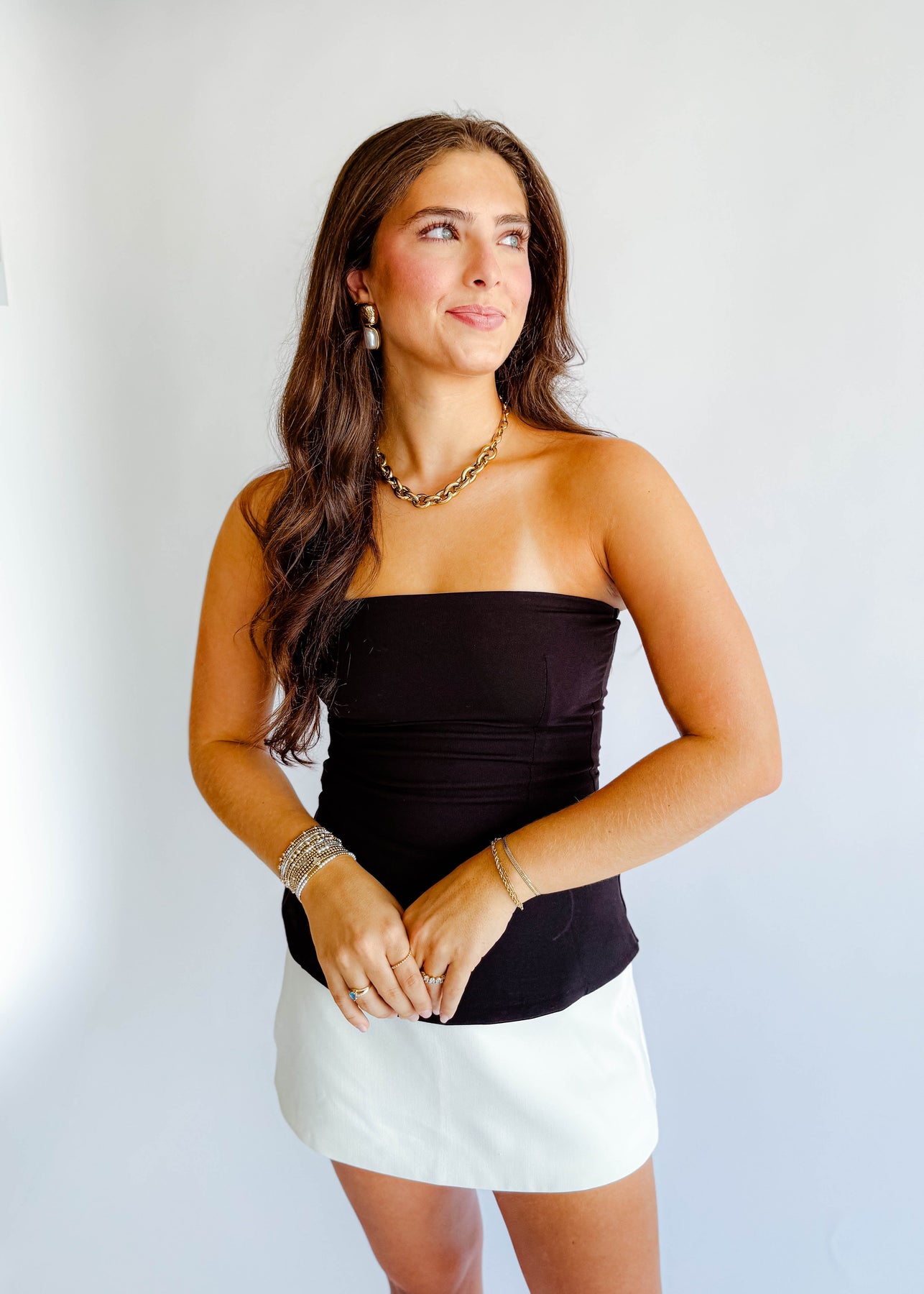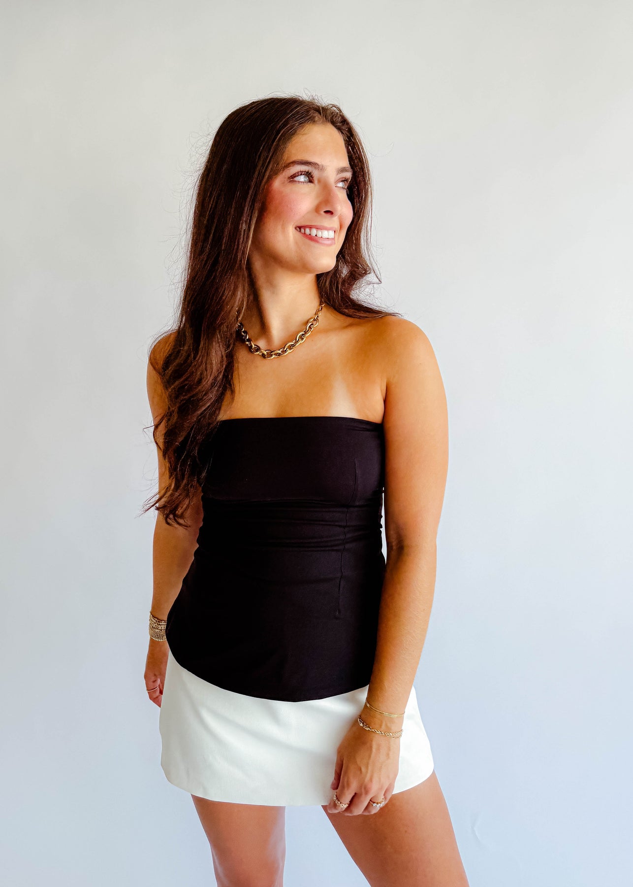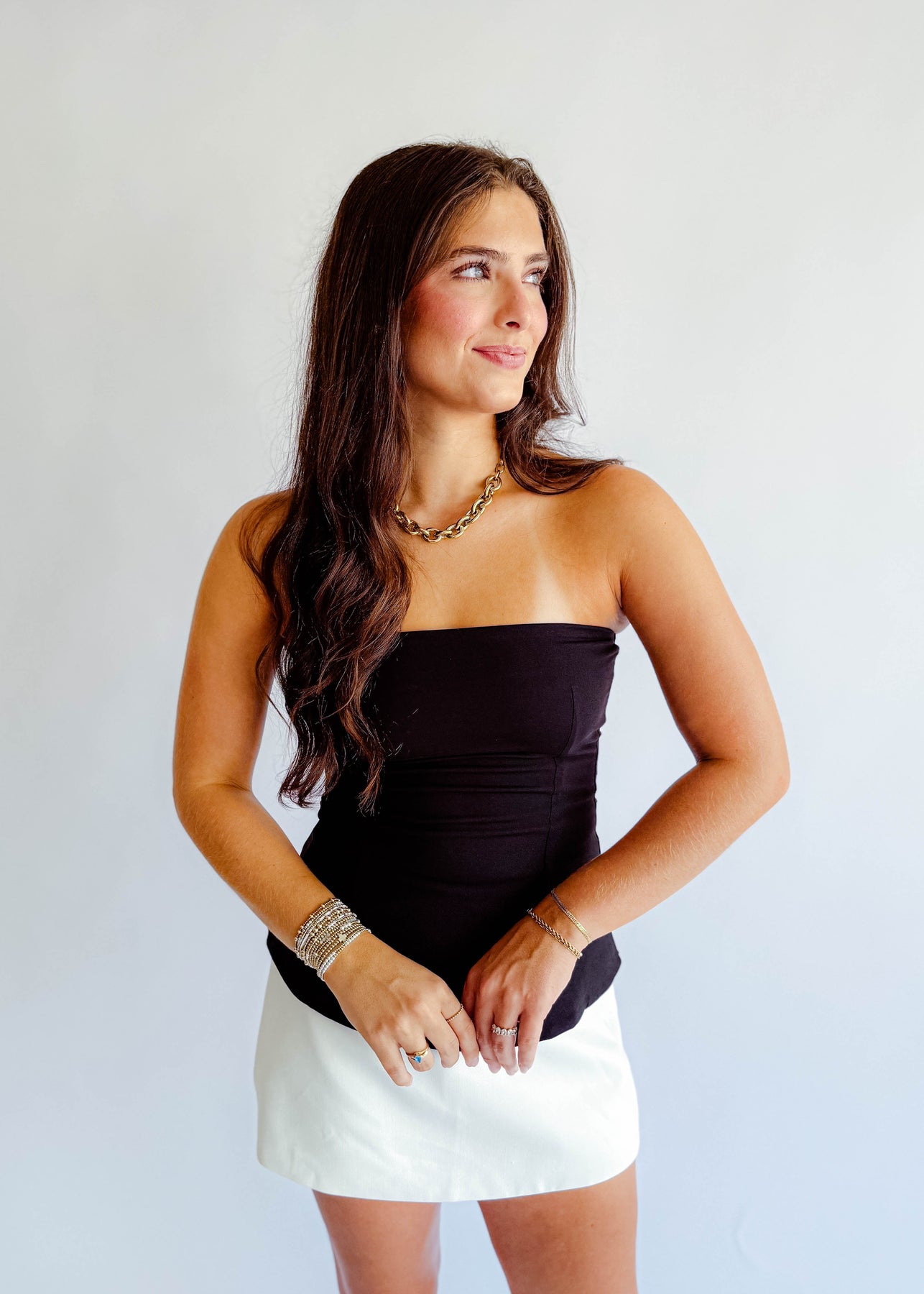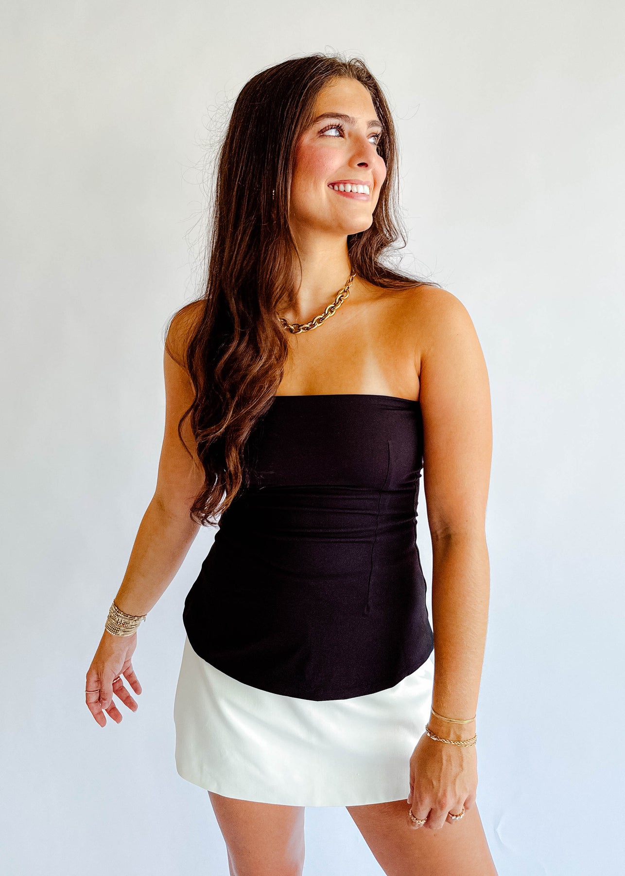 The Sienna Strapless Top is a bold and sophisticated choice for any occasion. Featuring a sleek, structured silhouette and a flattering, body-hugging fit, this top is designed to highlight your shoulders and neckline. The smooth fabric and clean lines create a modern, elegant look that pairs perfectly with jeans, skirts, or tailored pants.