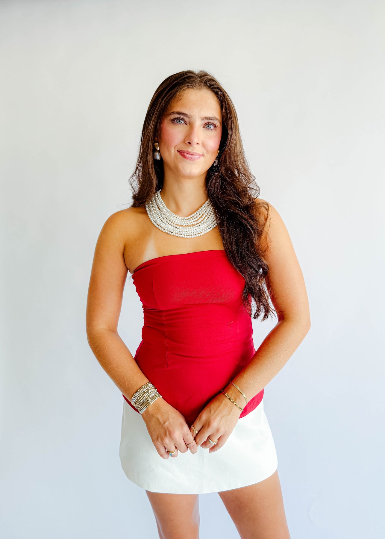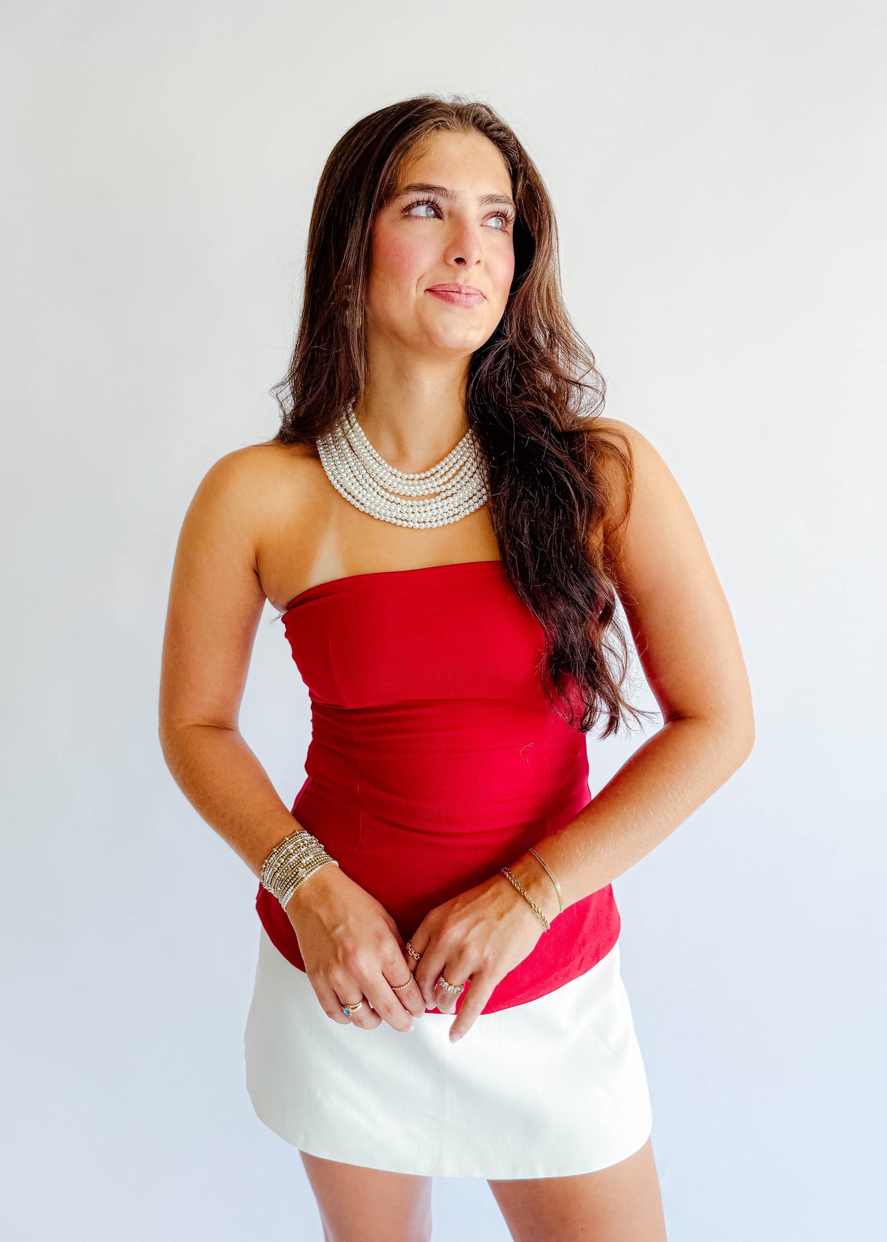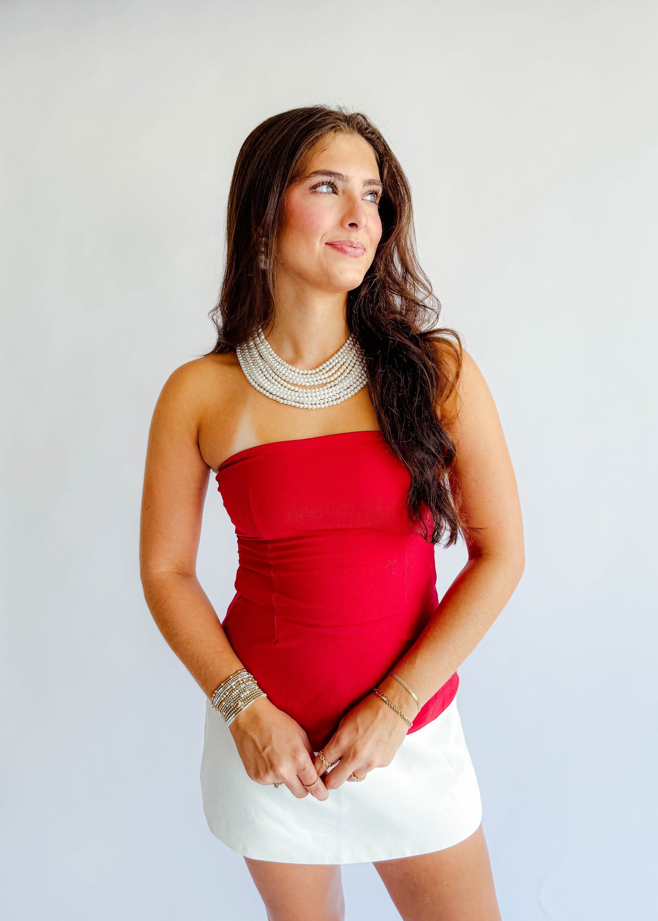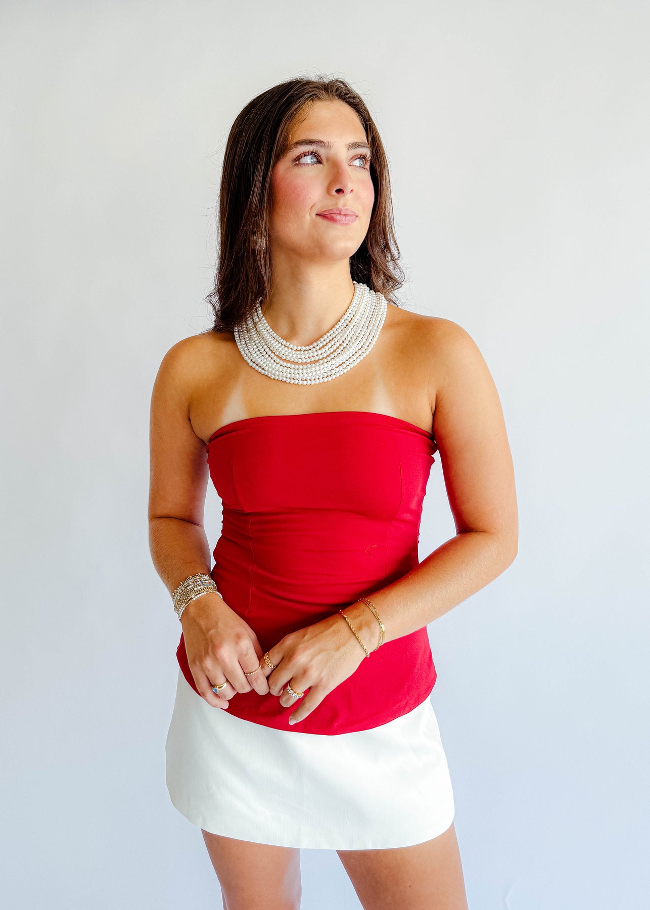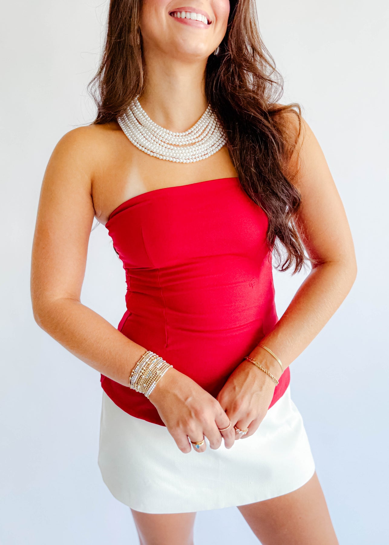 The Sienna Strapless Top is a bold and sophisticated choice for any occasion. Featuring a sleek, structured silhouette and a flattering, body-hugging fit, this top is designed to highlight your shoulders and neckline. The smooth fabric and clean lines create a modern, elegant look that pairs perfectly with jeans, skirts, or tailored pants.