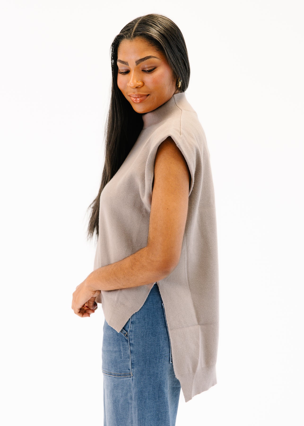 The Vida Noir Knit Top is a sleek staple with a modern twist. Designed with a soft, structured knit and a refined mock neckline, it gives just the right amount of polish while staying easy to wear. The sleeveless cut and relaxed fit make it a versatile piece—perfect layered under a blazer for work or paired with patterned trousers for an off-duty look. Camila is that go-anywhere top you’ll find yourself styling in endless ways.