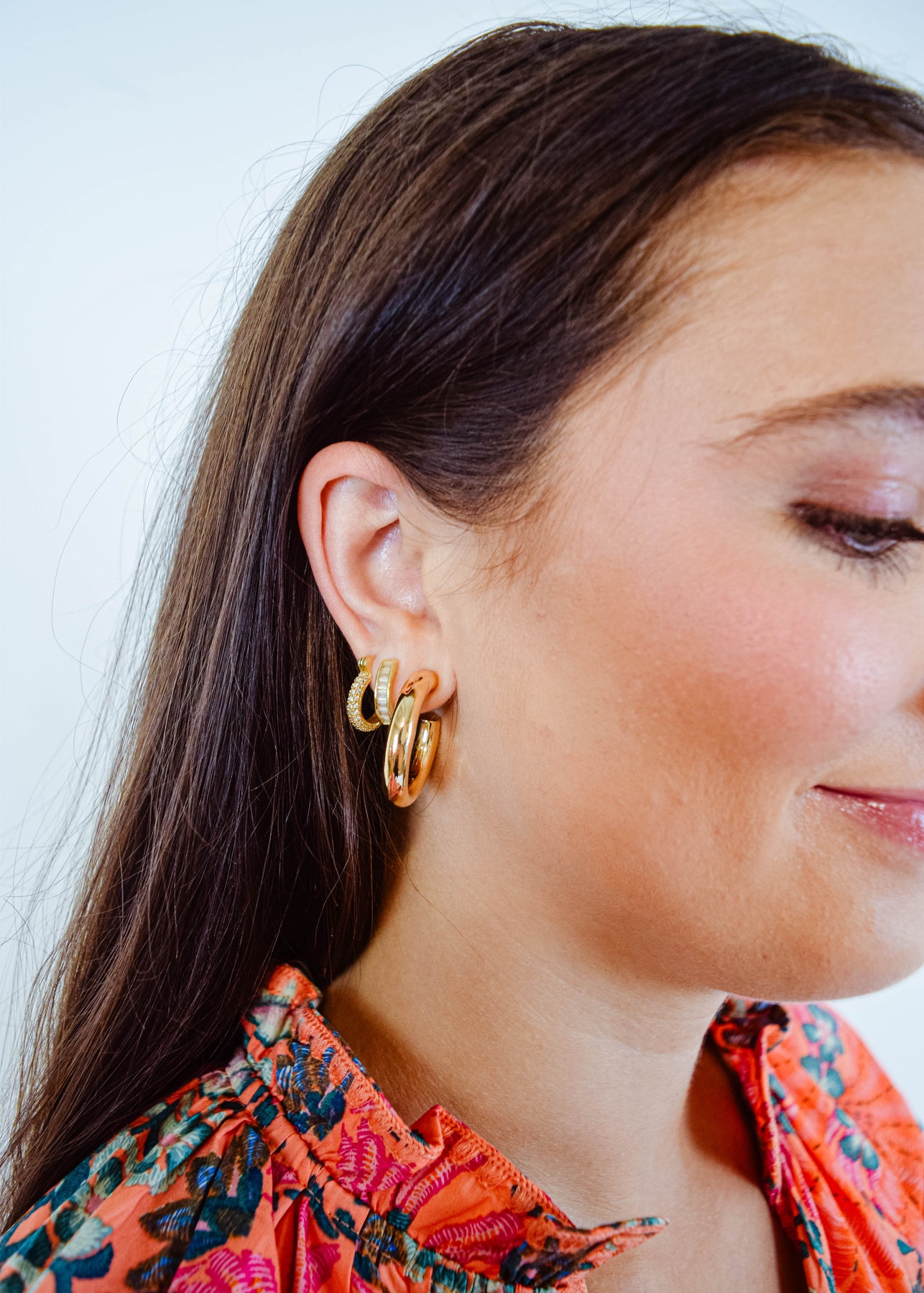 These medium sized earrings are a staple accessory! They are super lightweight, and they have a classic brushed metal look.