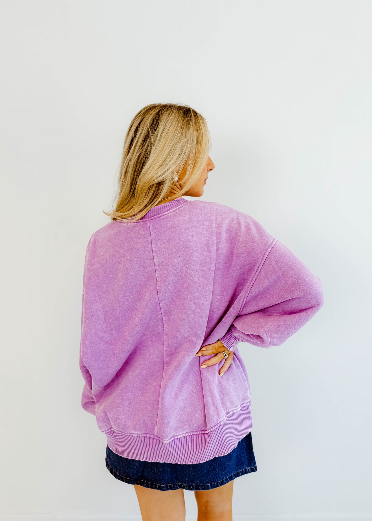 This oversized sweatshirt delivers laid-back comfort with a casual edge. Designed with a crew neckline, drop shoulders, and ribbed trim at the cuffs and hem, it offers a relaxed fit perfect for layering. The soft fabric and easy silhouette make it an ideal choice for lounging, weekend wear, or pairing with denim for an off-duty look.
