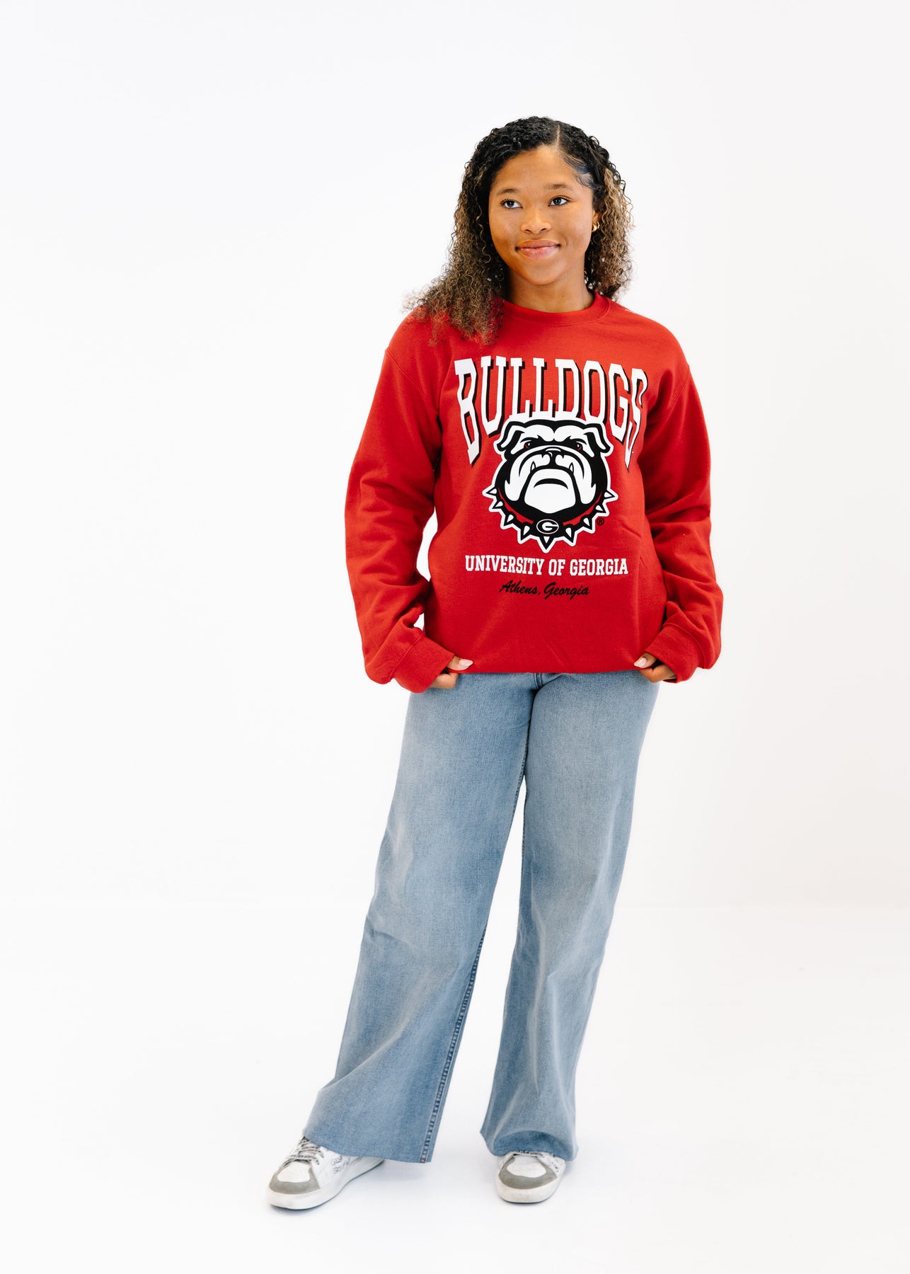 Show your Georgia pride in style with the Georgia Vault Sweatshirt. Featuring a bold, oversized Bulldog logo on a rich red background, this sweatshirt combines comfort and team spirit effortlessly. Perfect for game days or casual wear, it’s a must-have for any true Georgia fan looking to showcase their loyalty with confidence and comfort.