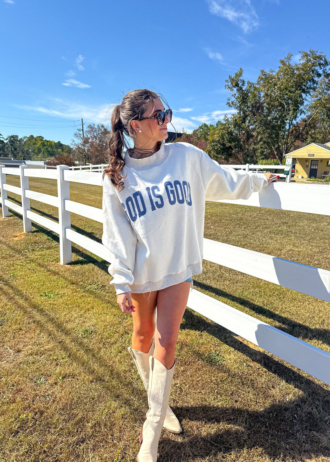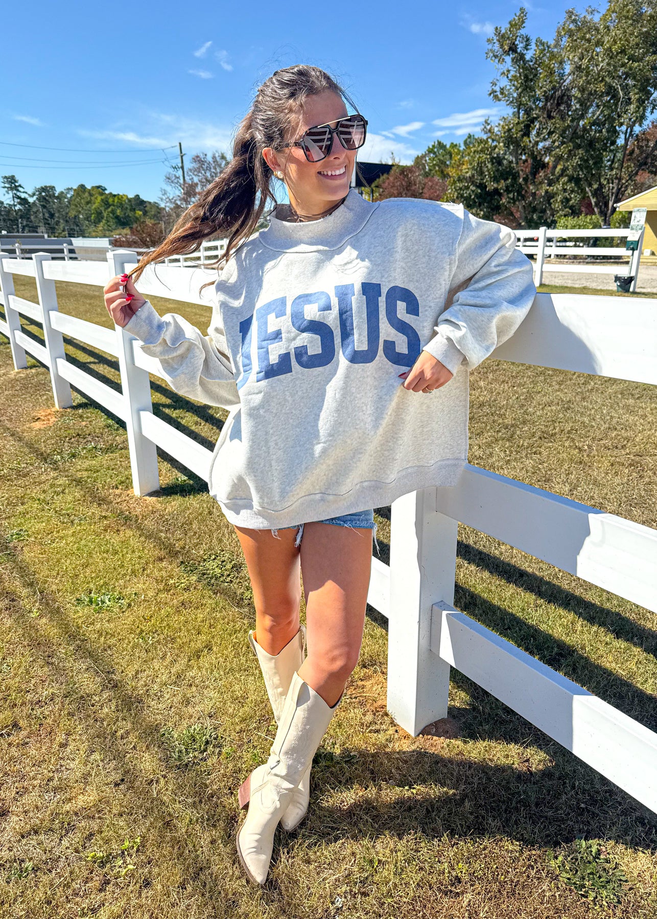 The Jesus Reversible Sweatshirt brings vintage collegiate energy with a meaningful message. Featuring bold block lettering across the chest, it captures that laid-back, lived-in feel with a modern twist.