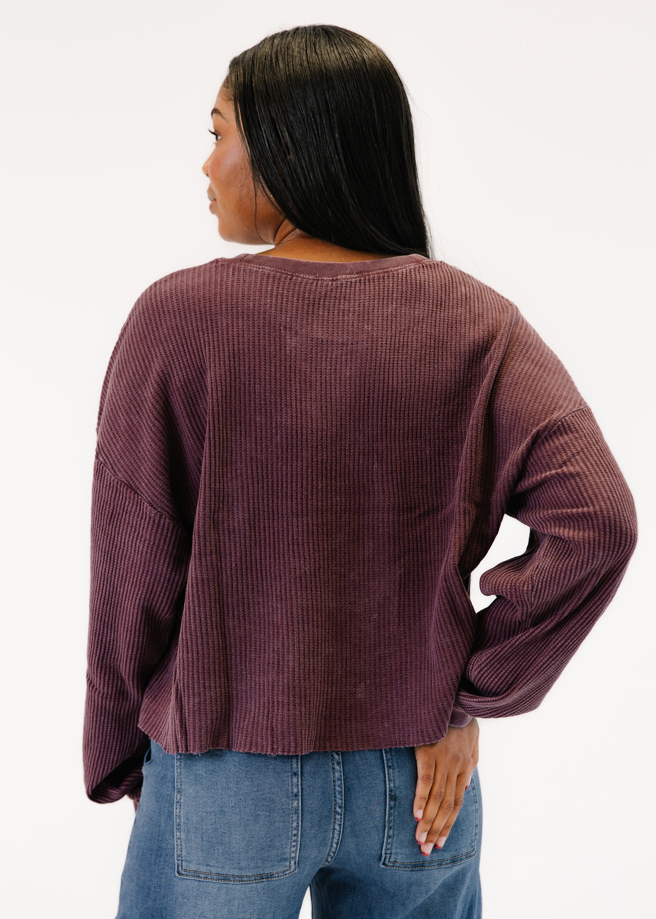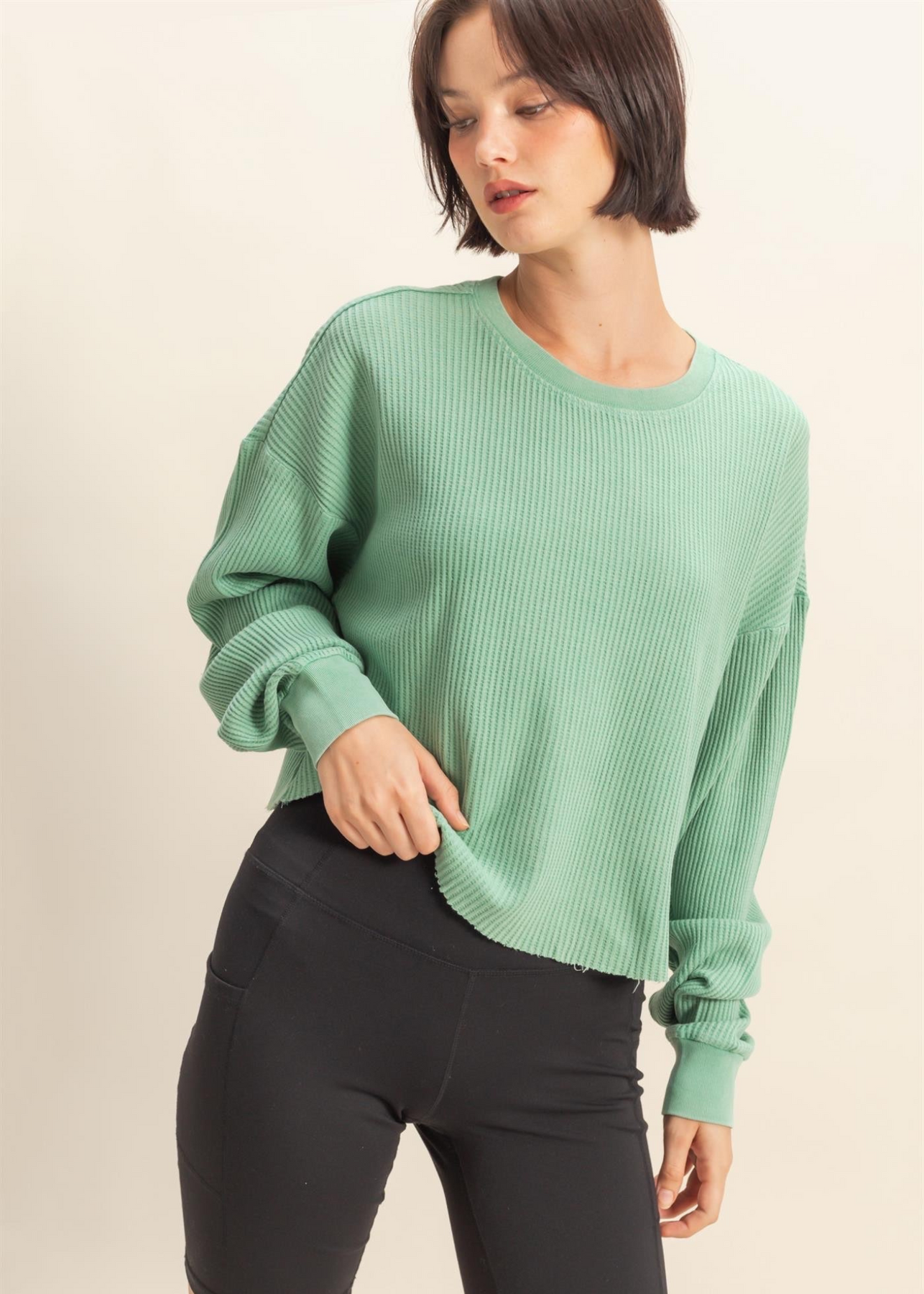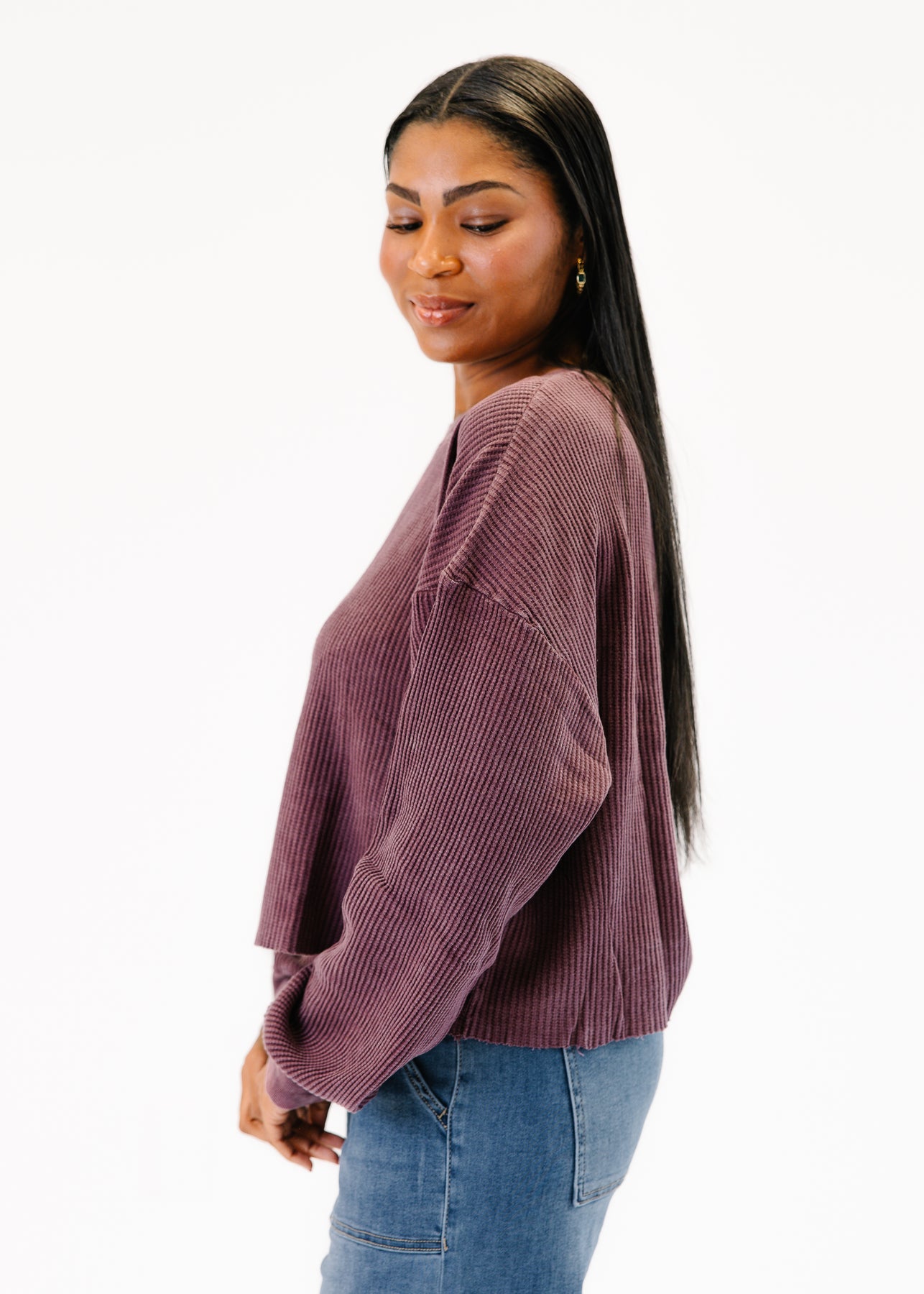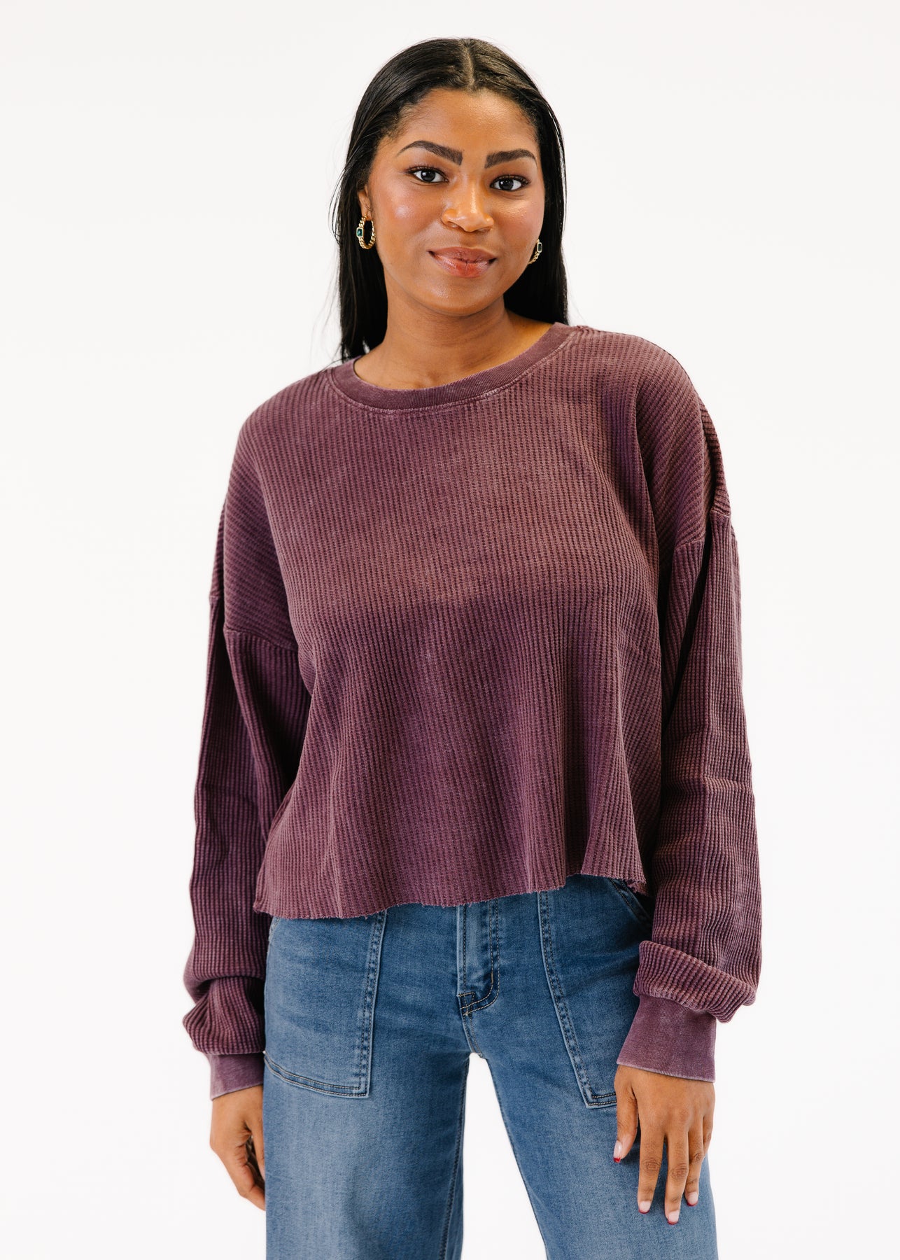 The Lila Waffle Knit Pullover is an easygoing essential with a cozy, textured feel. Designed in a relaxed silhouette, it features a classic crew neckline and raw hem detail for a laid-back finish. Perfect for lounging, layering, or pairing with activewear, it’s the kind of top that works year-round.