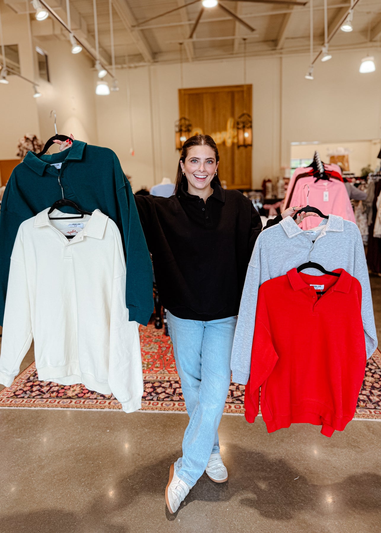 The Noelle Polo Sweatshirt is where laid-back comfort meets timeless style. With its relaxed fit and classic polo collar, it brings a refined touch to a casual staple. The soft fabric and ribbed cuffs make it perfect for layering or wearing on its own, giving you endless outfit options.