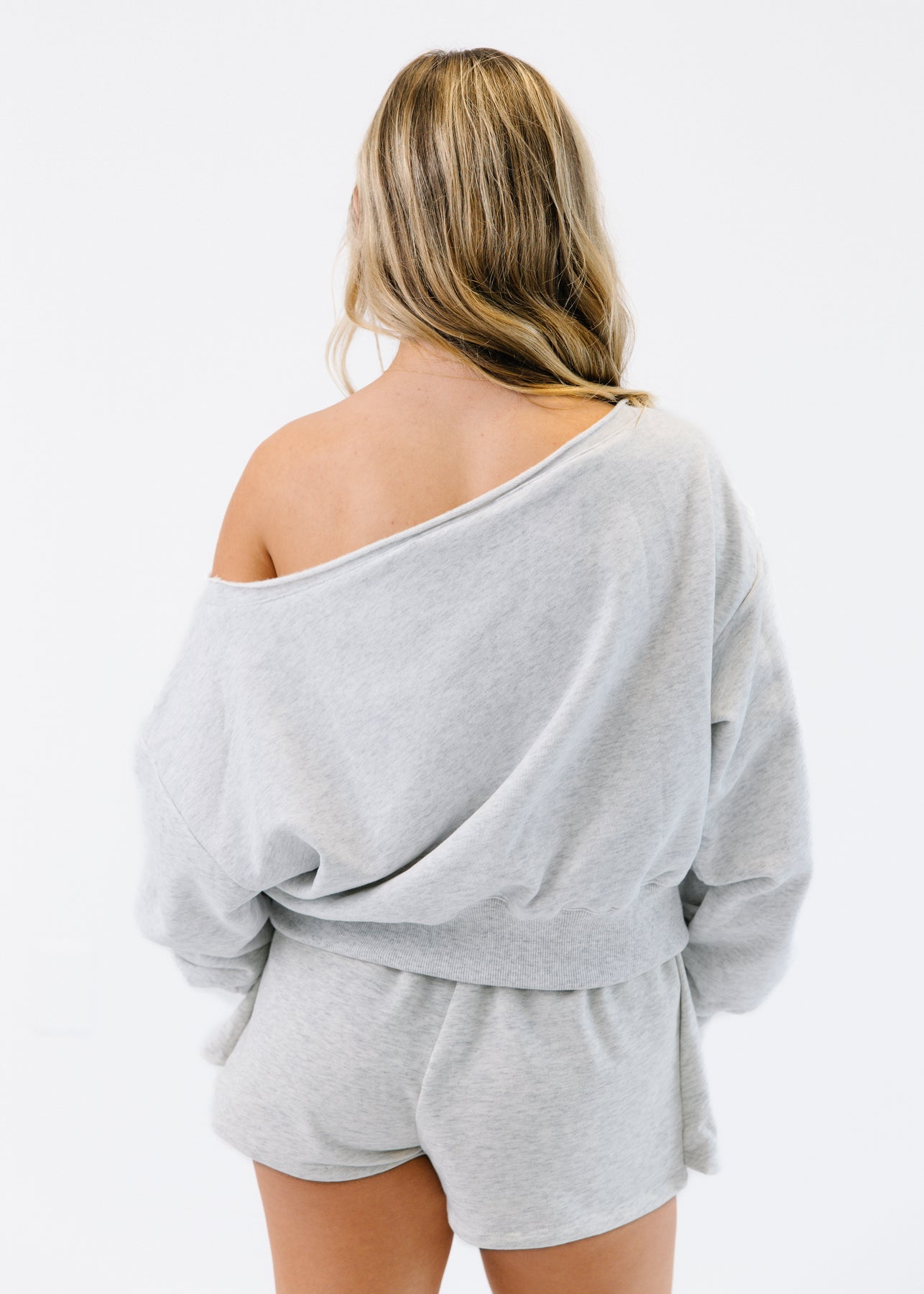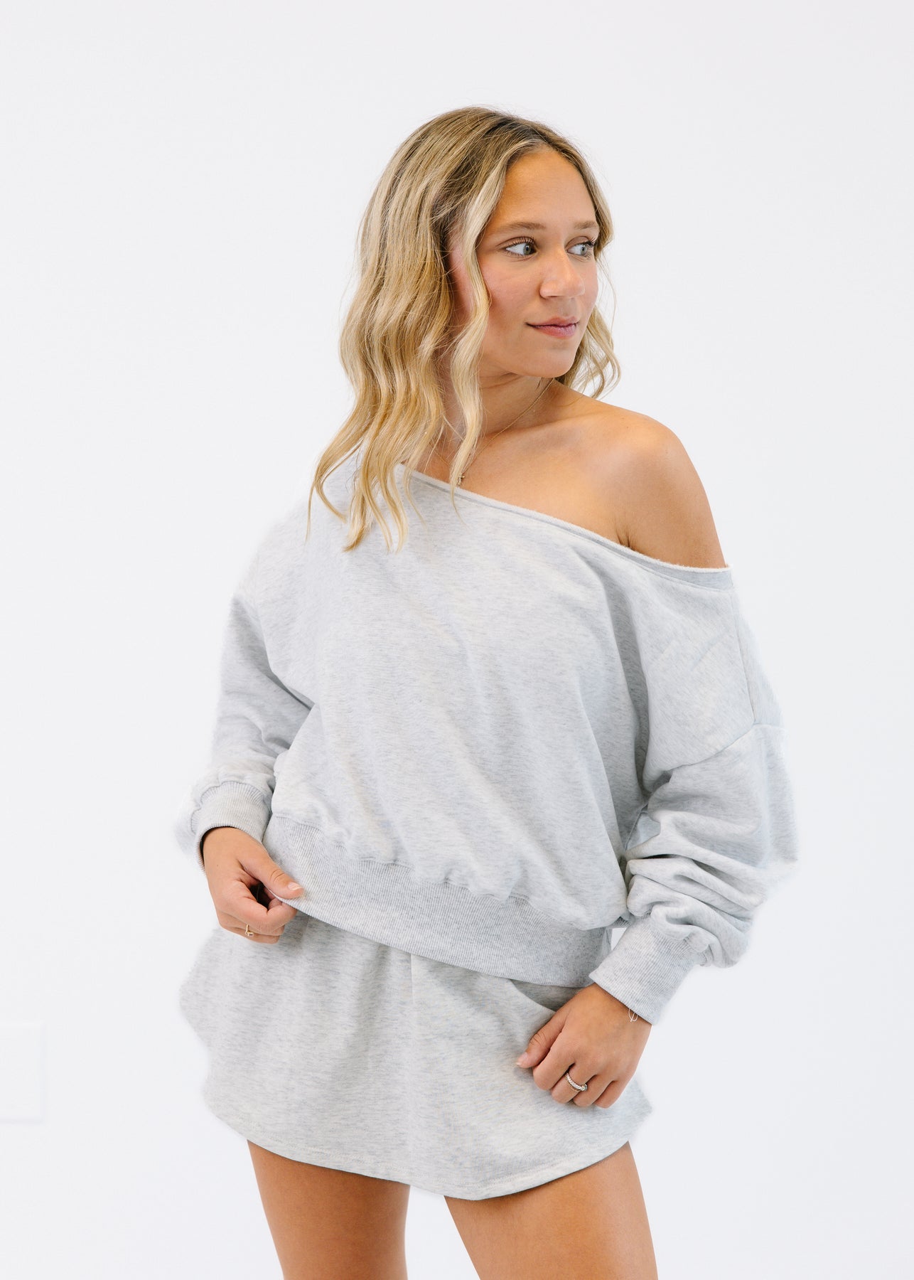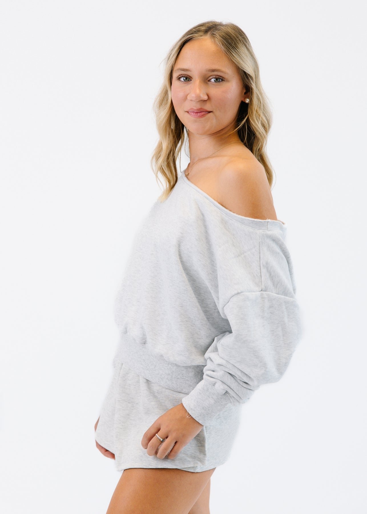 Relaxed and effortlessly cool, this slouchy sweatshirt is designed for laid-back days and casual outings. The wide neckline allows it to be styled off one shoulder for a touch of playful charm, while the dropped shoulders and loose fit create an easygoing vibe. Made with soft, cozy fabric, it’s perfect for lounging at home, running errands, or pairing with your favorite shorts or jeans for a relaxed weekend look.