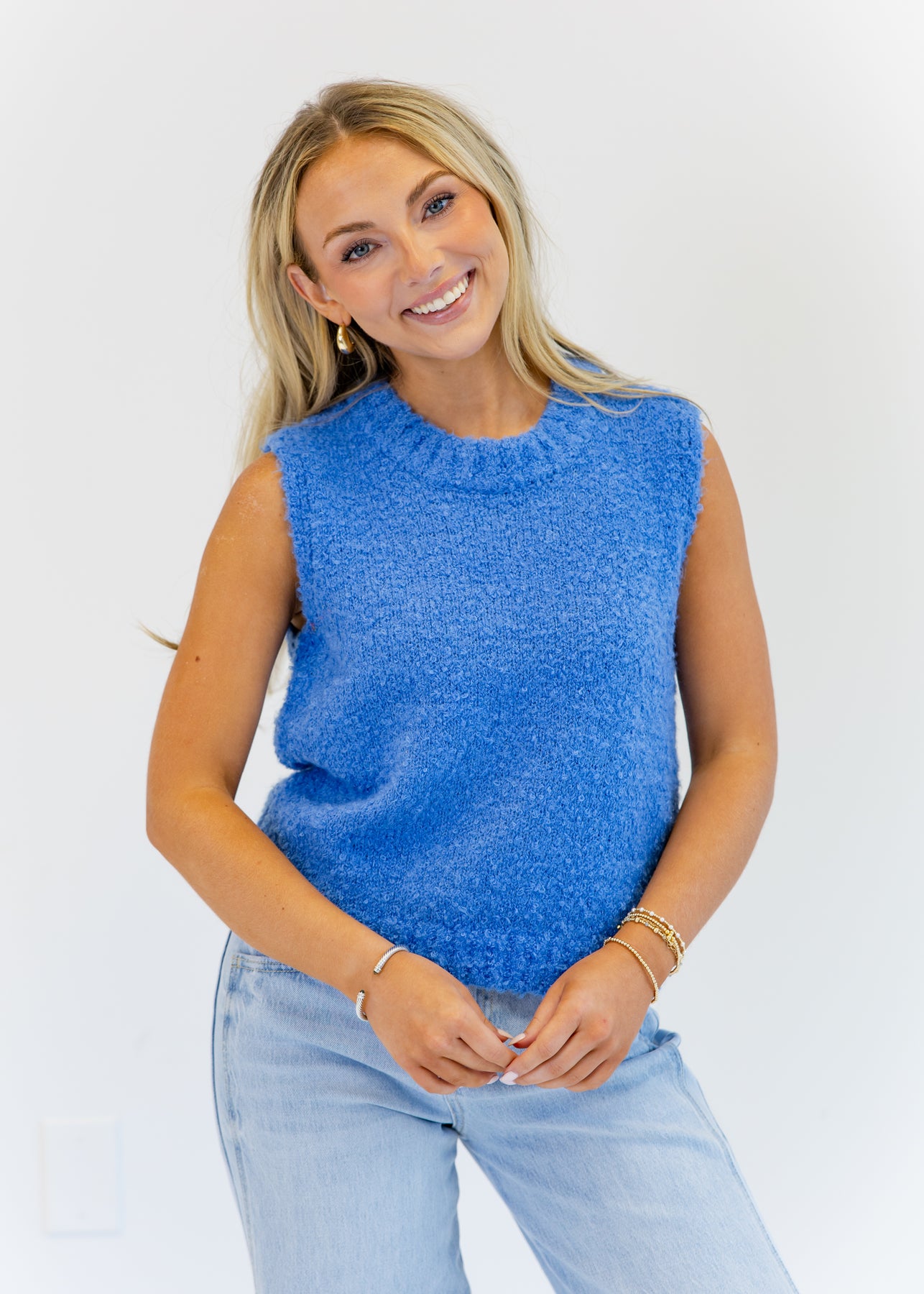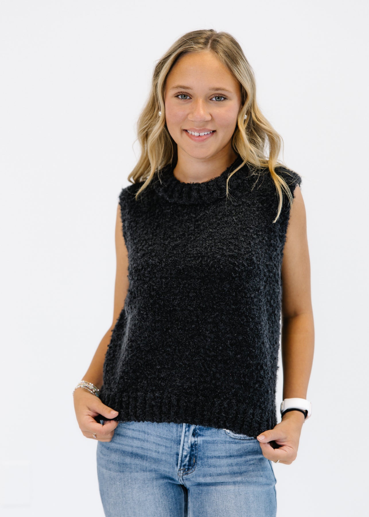 The Cozy Knit Vest offers the perfect mix of warmth and versatility. Crafted from a plush, textured knit, this sleeveless piece features a classic crew neckline and a relaxed fit, making it ideal for layering or wearing solo. Its soft and cozy fabric ensures comfort while adding a stylish touch to casual or dressy looks.