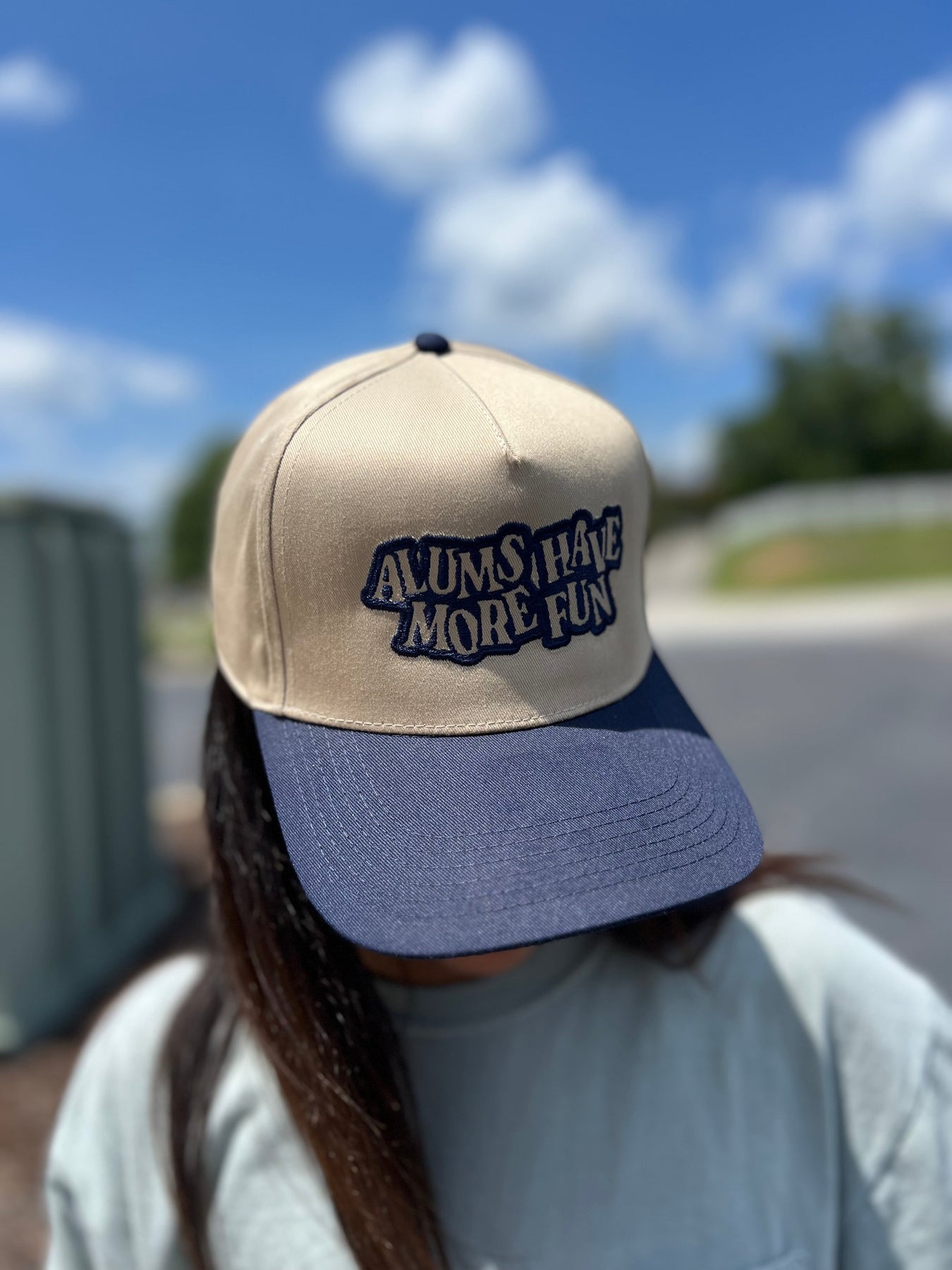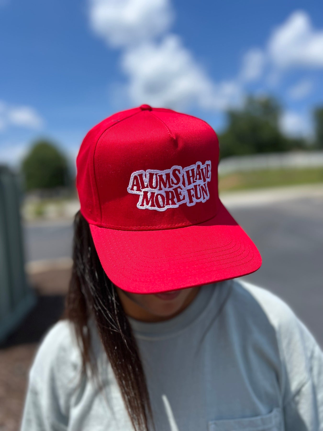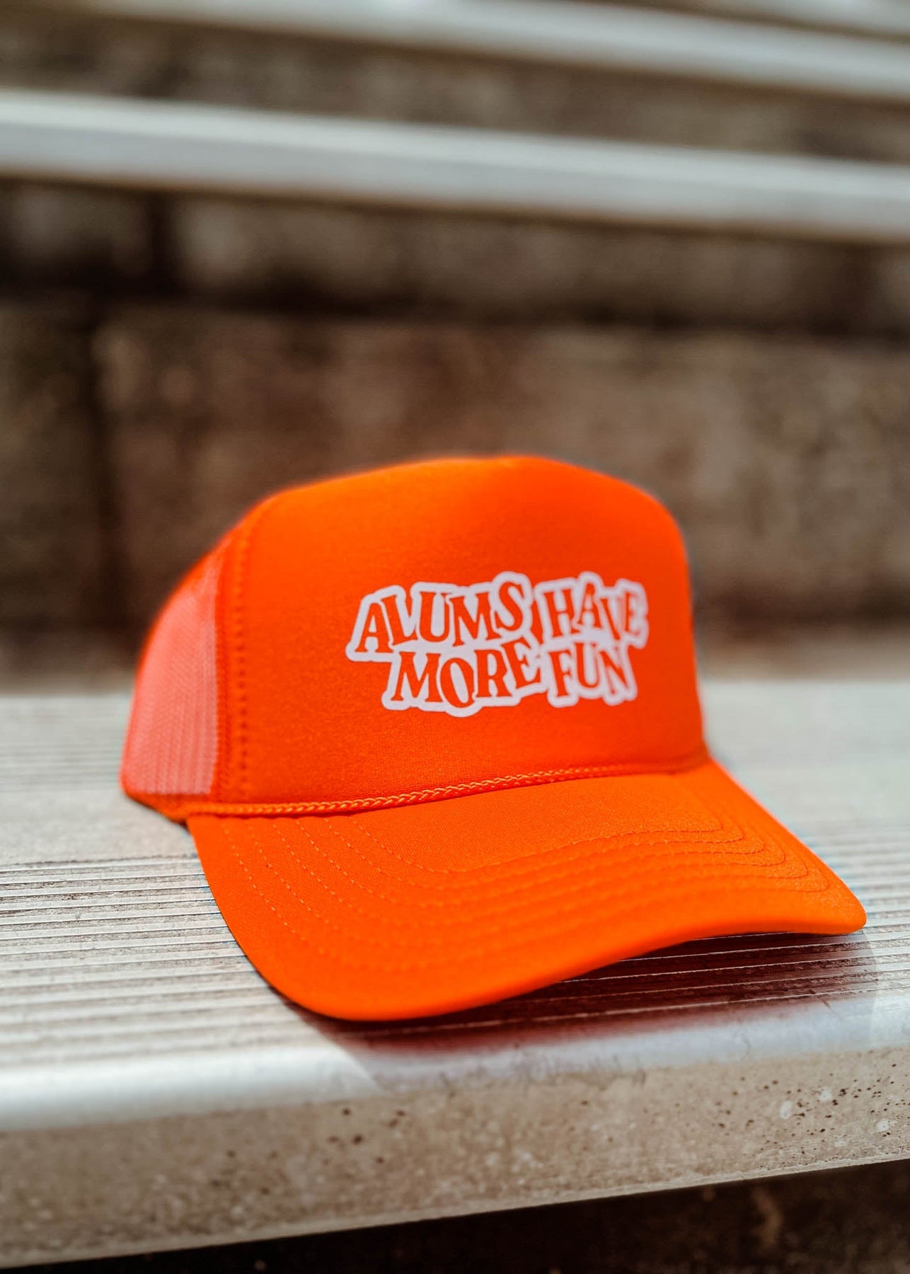 Calling all alums! This Raw & Rebellious trucker hat is the perfect accessory to complete your look this gameday season. This trucker hat features an adjustable fit, a mesh back, and "alums have more fun" printed on the front.