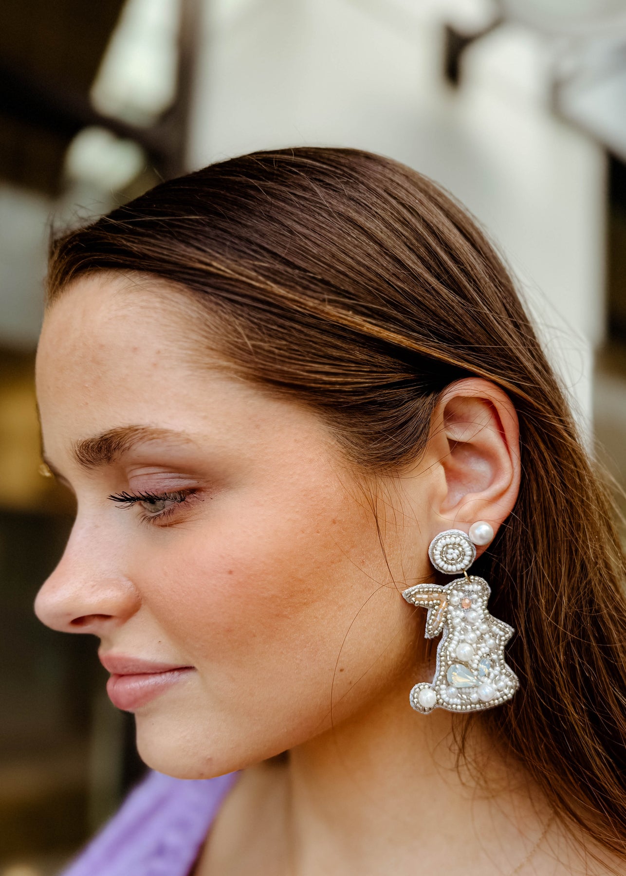 Add a touch of spring to your outfit with our Beaded Easter Bunny Earrings. These earrings feature a cute Easter bunny design with delicate pearl details, making them a perfect addition to your Easter look. With their pretty design, these earrings are sure to add a charming touch to your ensemble.