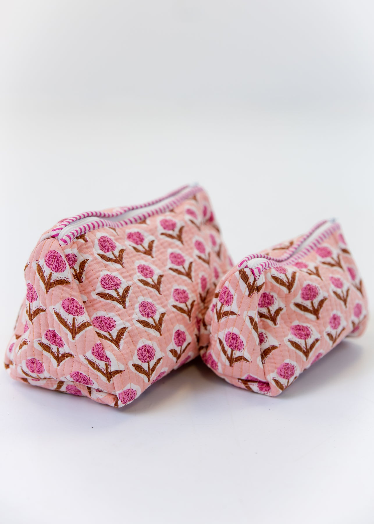 Elevate your daily routine with this Block Printed Cosmetic Pouch, a stylish and practical choice for organizing your essentials. Crafted with intricate block printing and a quilted design, it offers durability and a unique handmade charm. Its compact size fits easily in your bag, making it perfect for travel or everyday use. Stay organized while showcasing a sophisticated, artisanal touch with this versatile pouch.