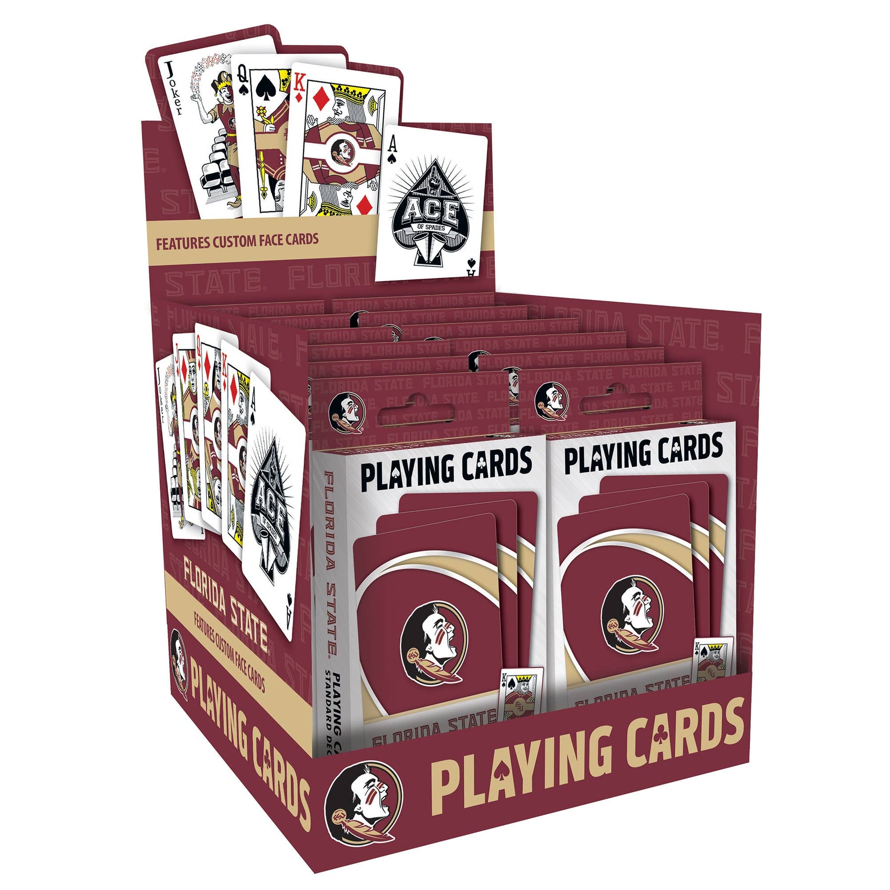 Show off your team spirit with the Florida State Seminoles Playing Cards! This fun deck features 52 high-quality cards plus 2 jokers, all proudly displaying bold Seminoles logos. Every face card and joker sports unique, custom designs that bring extra excitement to your game night. Whether you're a die-hard fan or just love a good game, these officially licensed cards are a playful way to support the Seminoles while dealing out the fun!