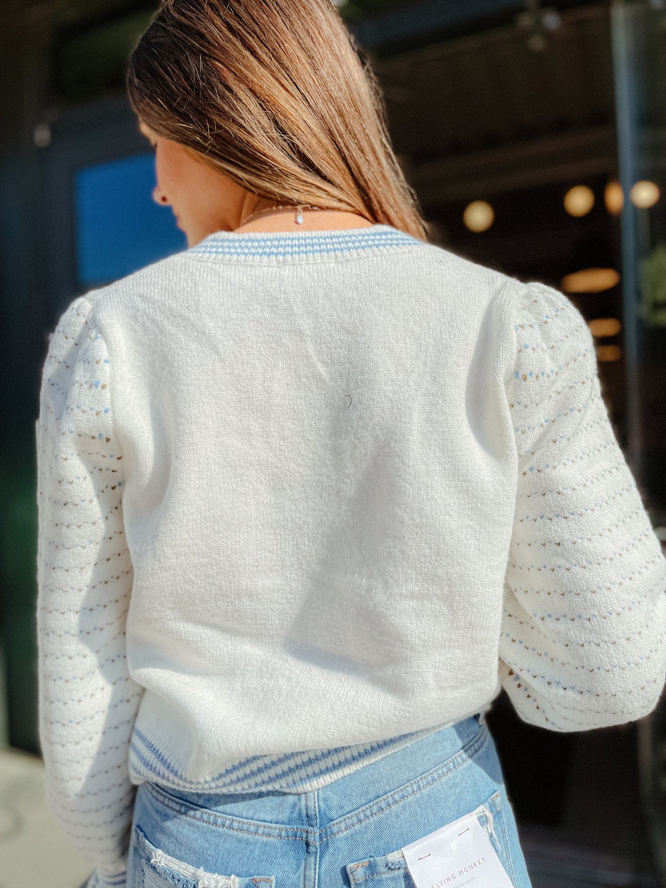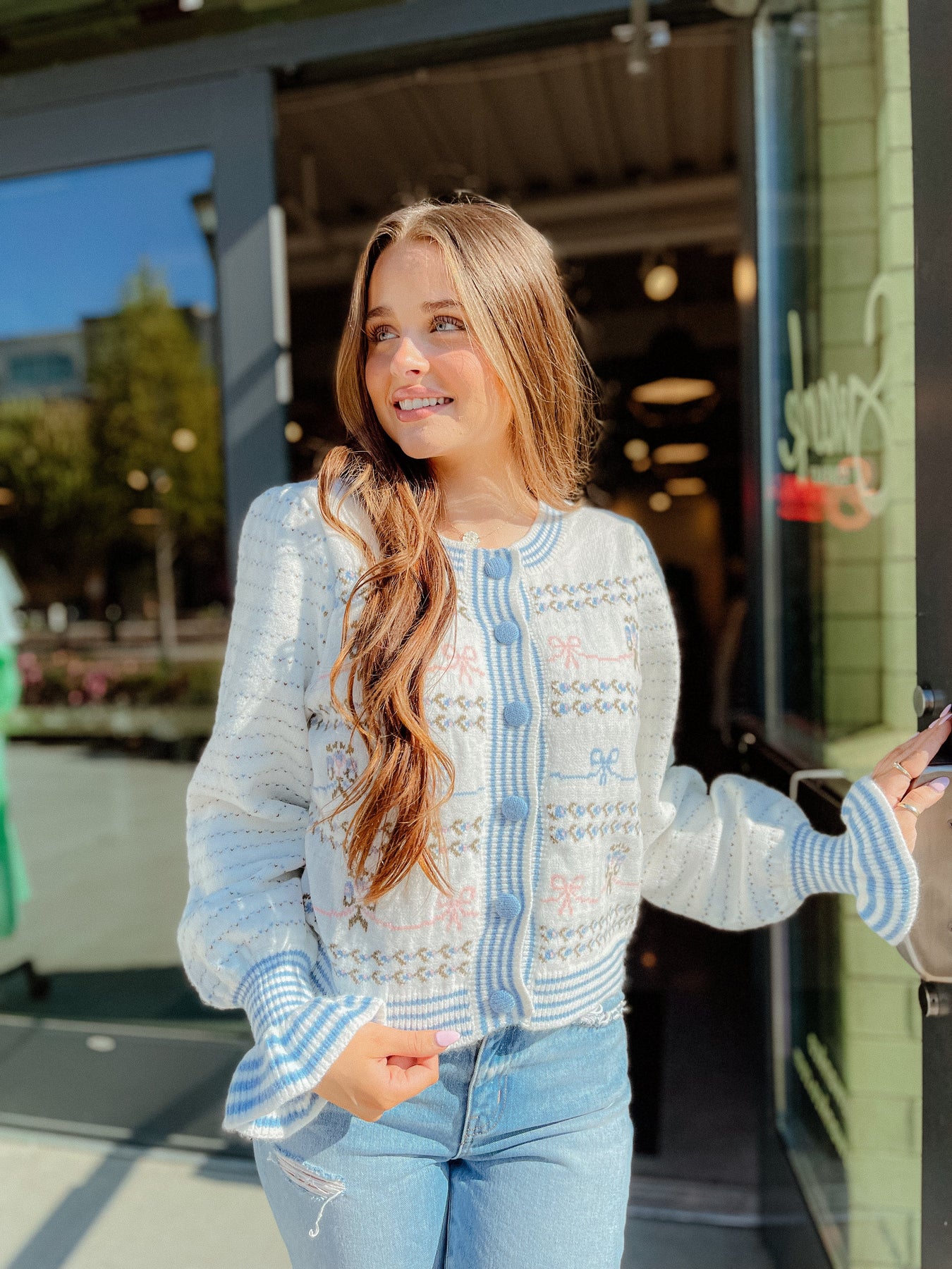 This cardigan is designed to make a fashion statement with its classic and versatile silhouette. The stripes add a touch of visual interest and playfulness, creating a charming and cozy look.
