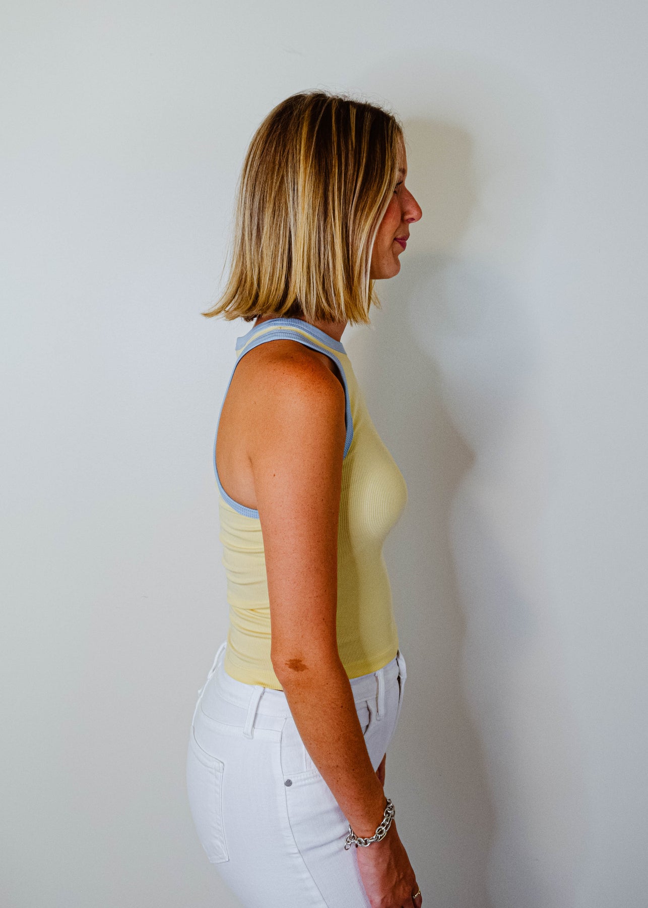 This sleeveless crop top blends minimalist structure with bold detail. Crafted with lightweight fabric for comfort, it features a clean, high-cut neckline and a cropped hem that hits right at the waist. The standout feature lies in its contrast paneling—subtly defined to create visual interest without overwhelming the look. Whether styled with tailored pants or a matching skirt, this top delivers a sharp, modern edge perfect for casual or dressed-up wear.
